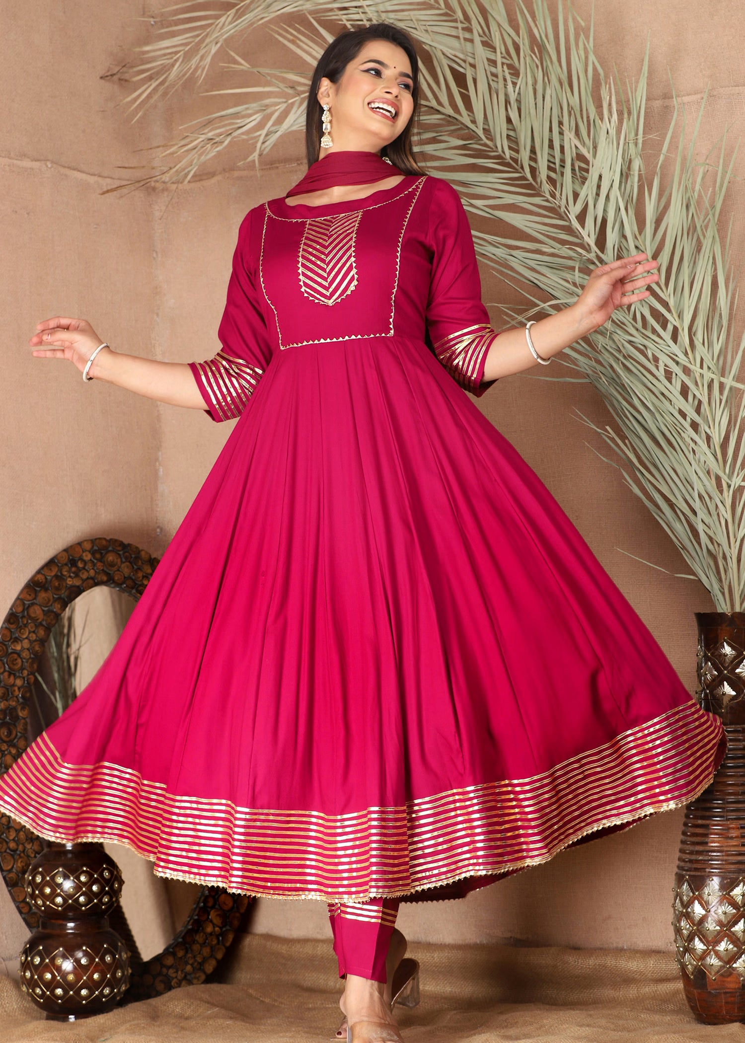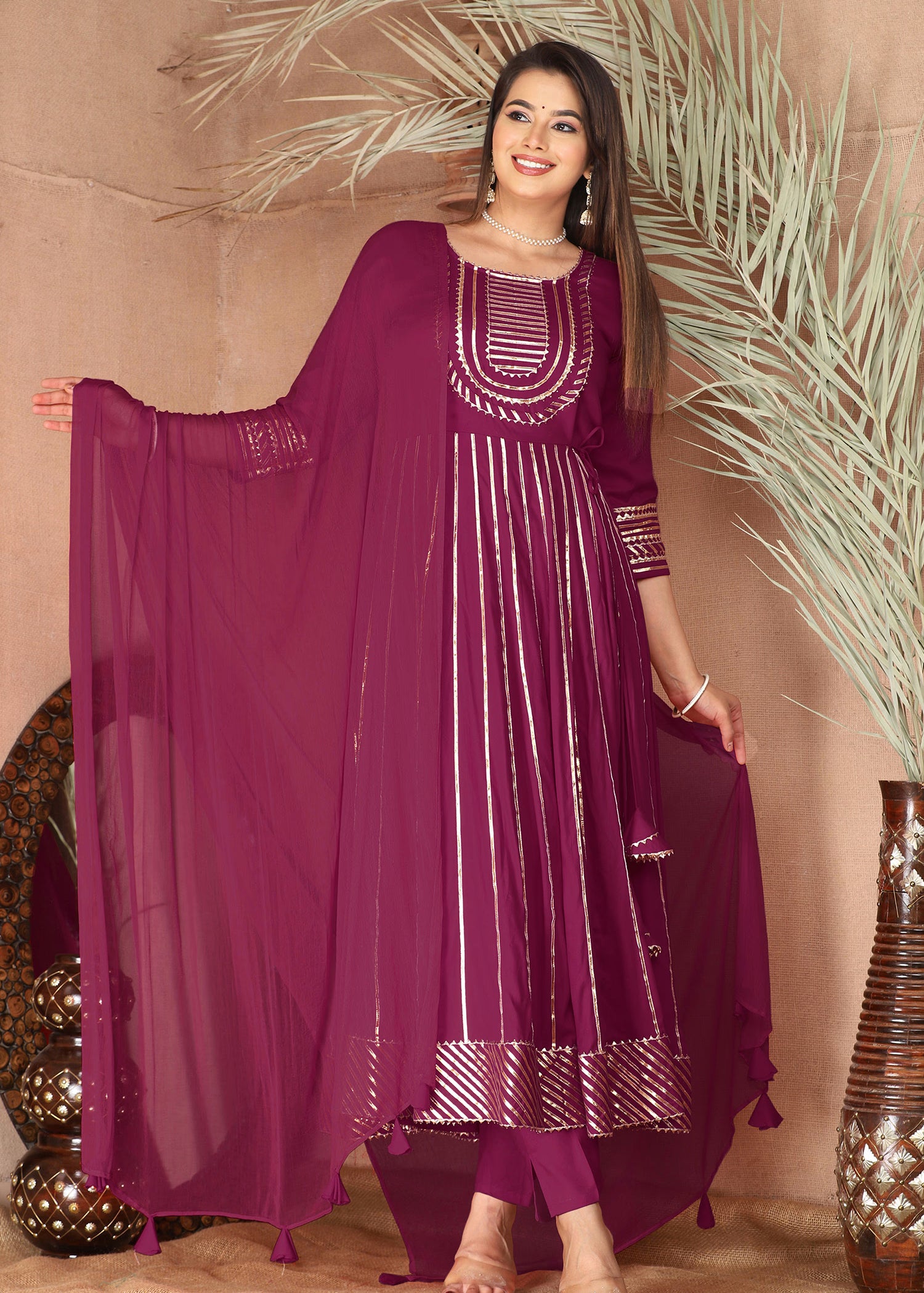 Dark Raspberry Rayon Gota Work Anarkali Set