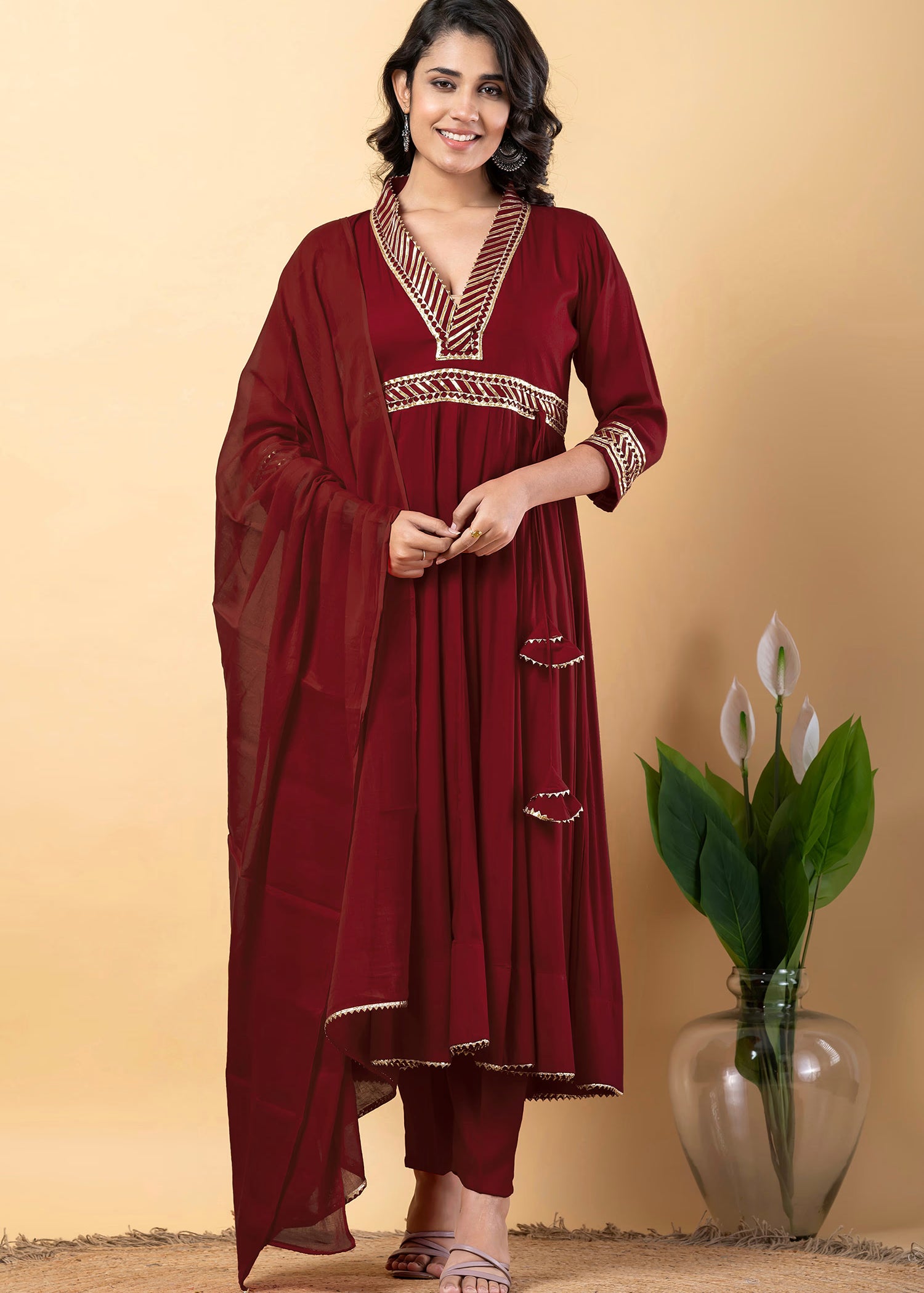 Maroon Rayon Gota Work Anarkali Set