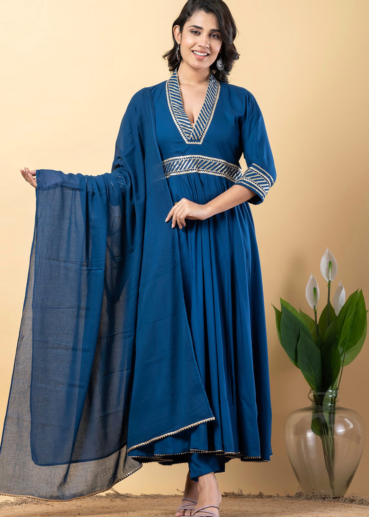 Dark Cerulean Blue Rayon Gota Work Anarkali Set