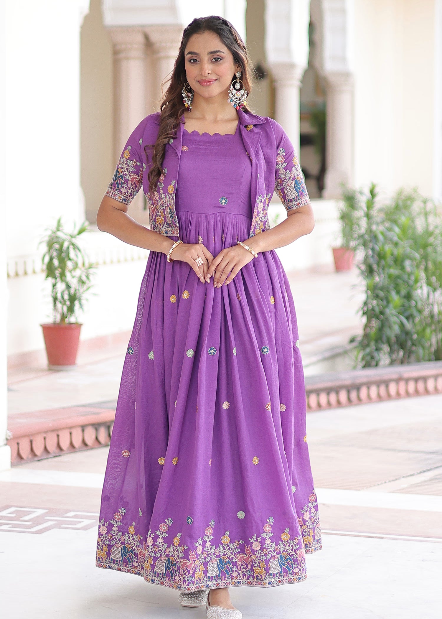 Purple Vichitra Silk Embroidered Anarkali Set