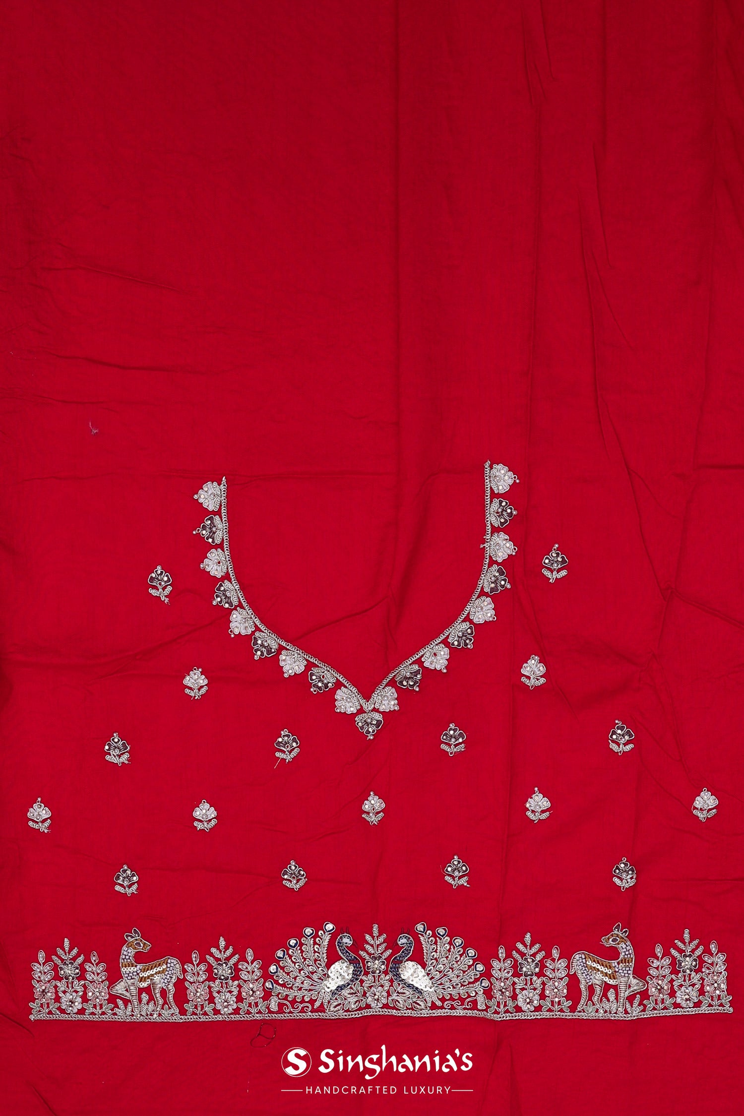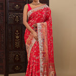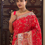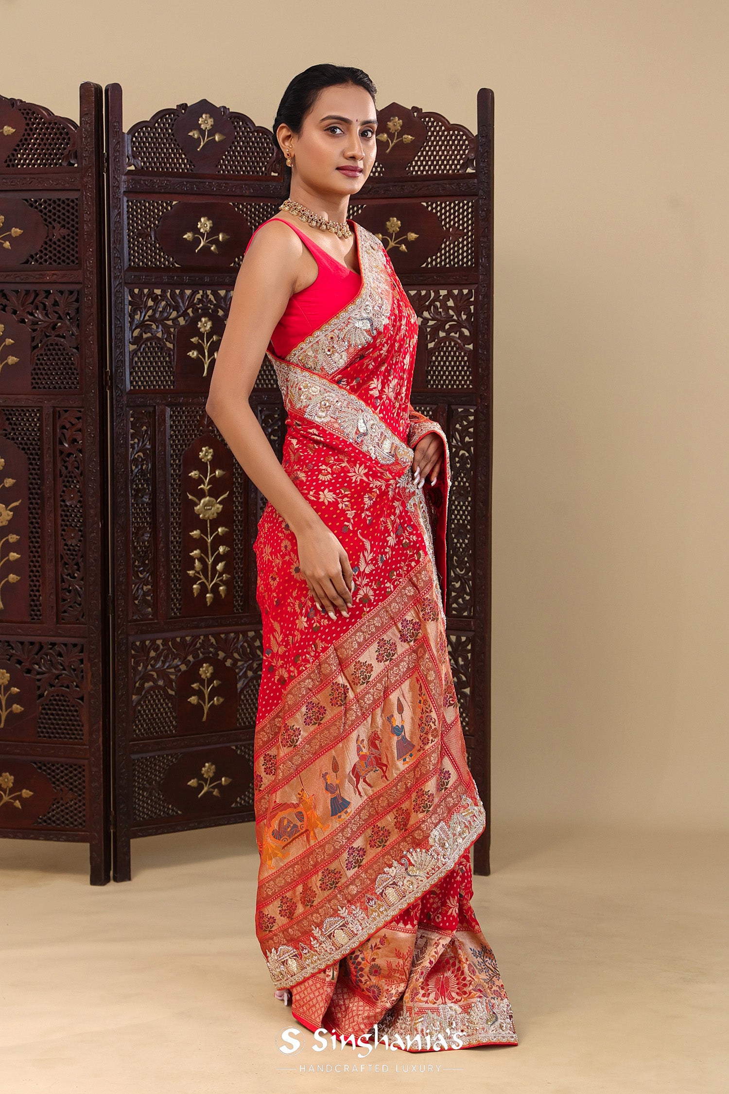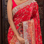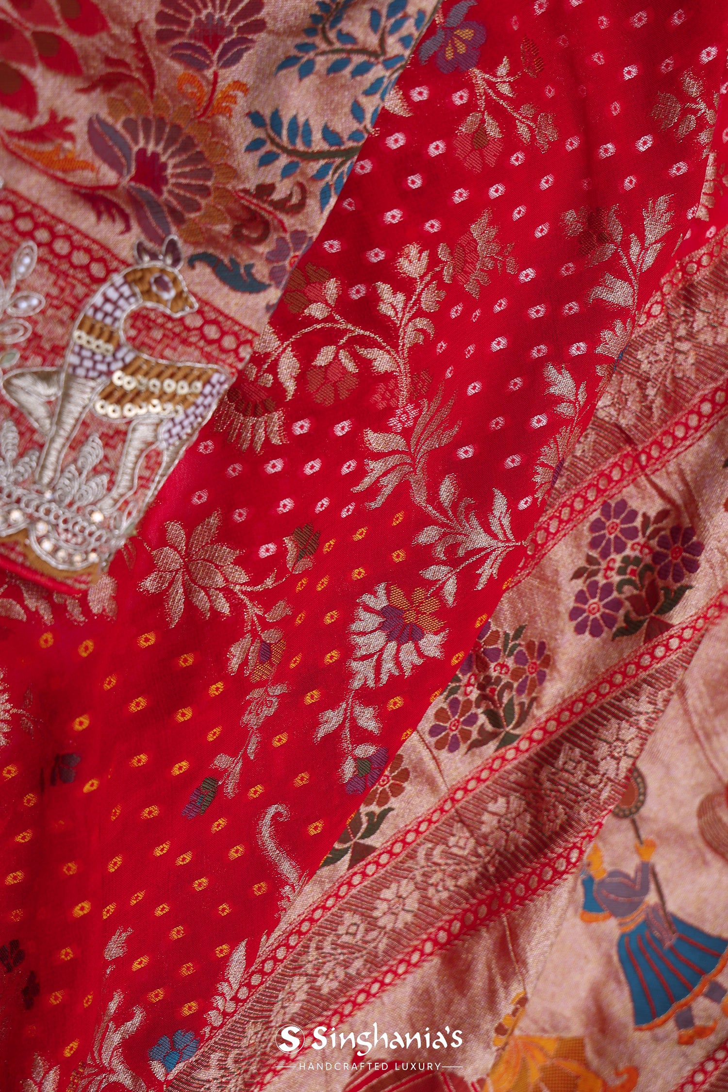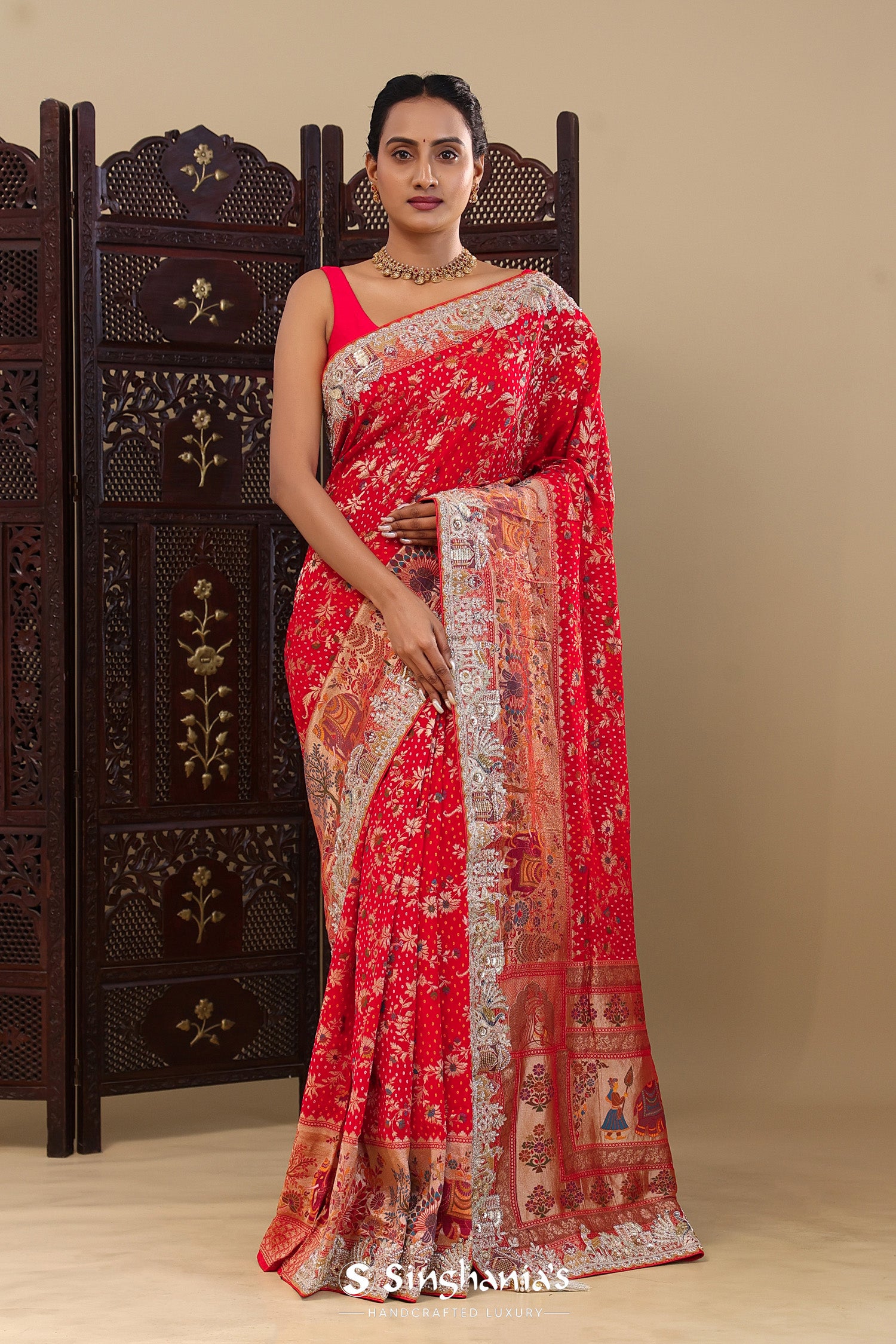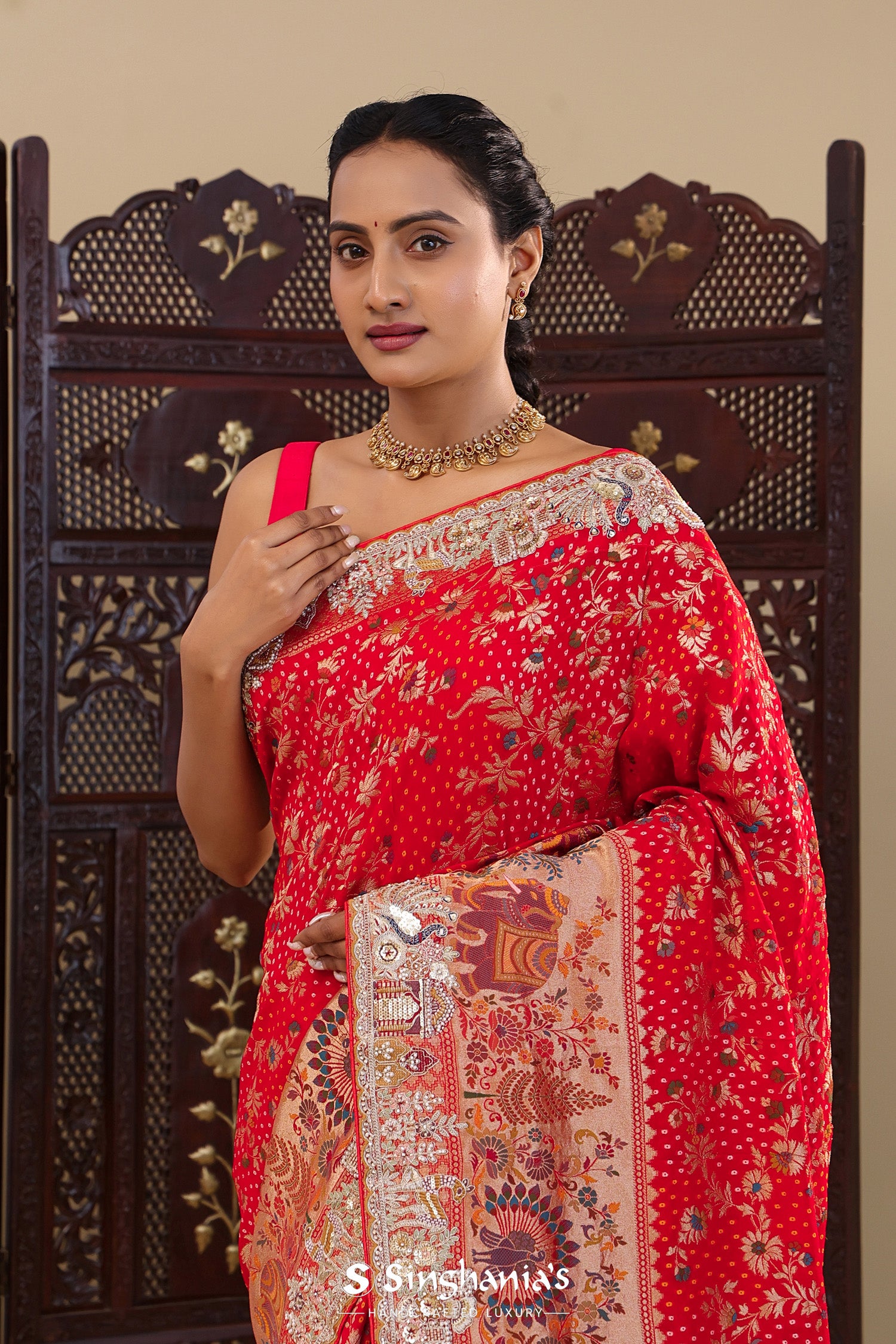 Scarlet Red Tissue Saree With Bandhani Pattern