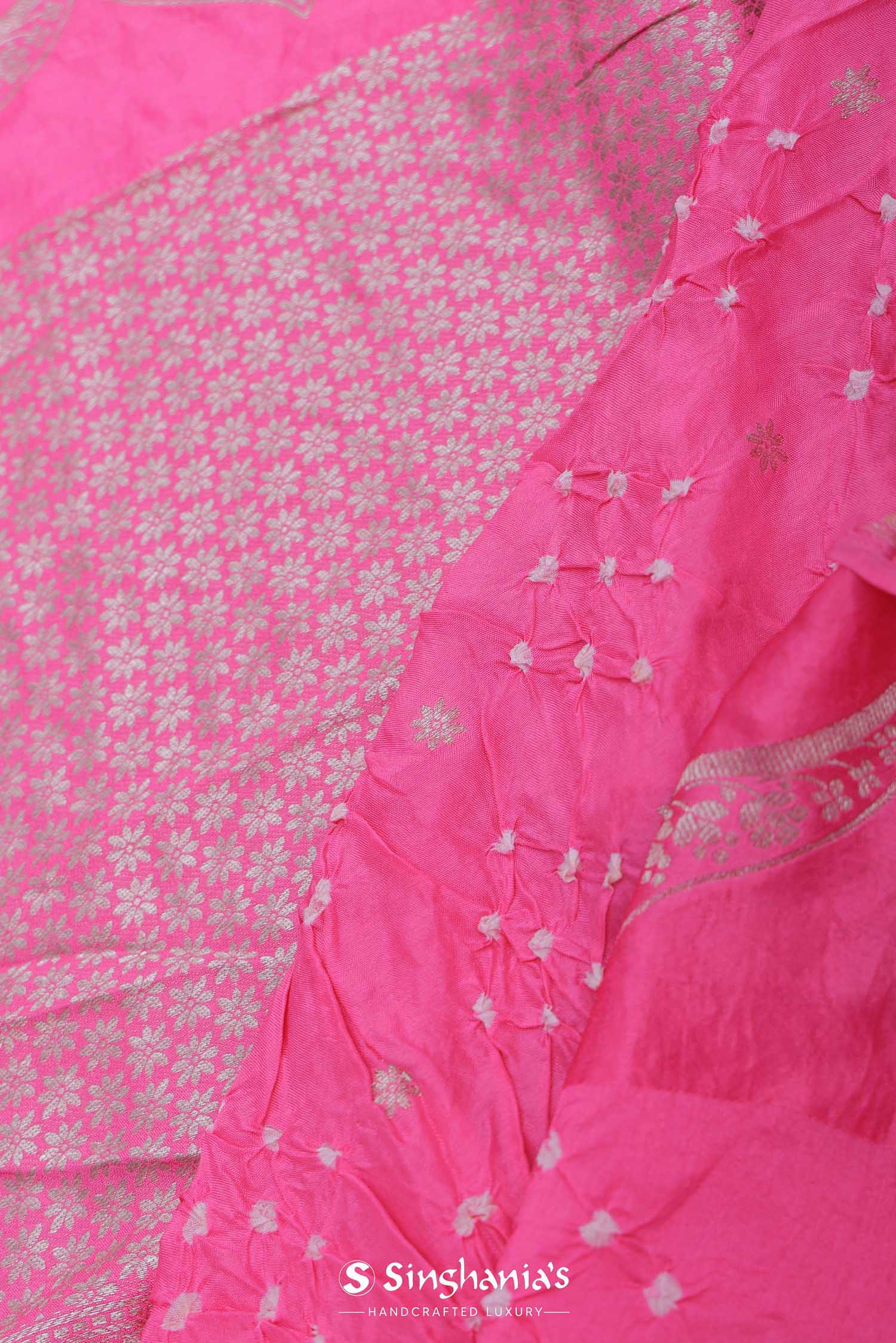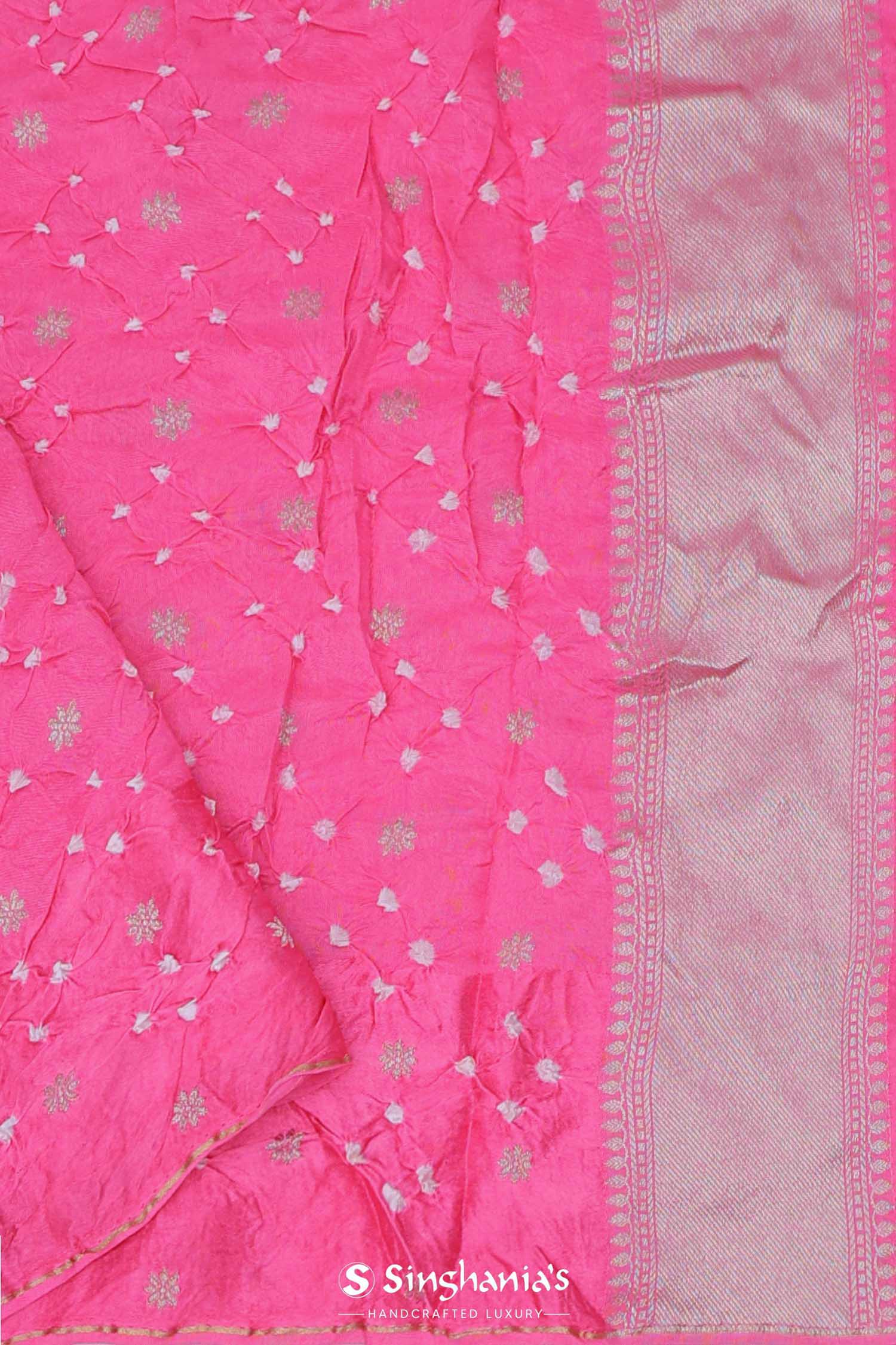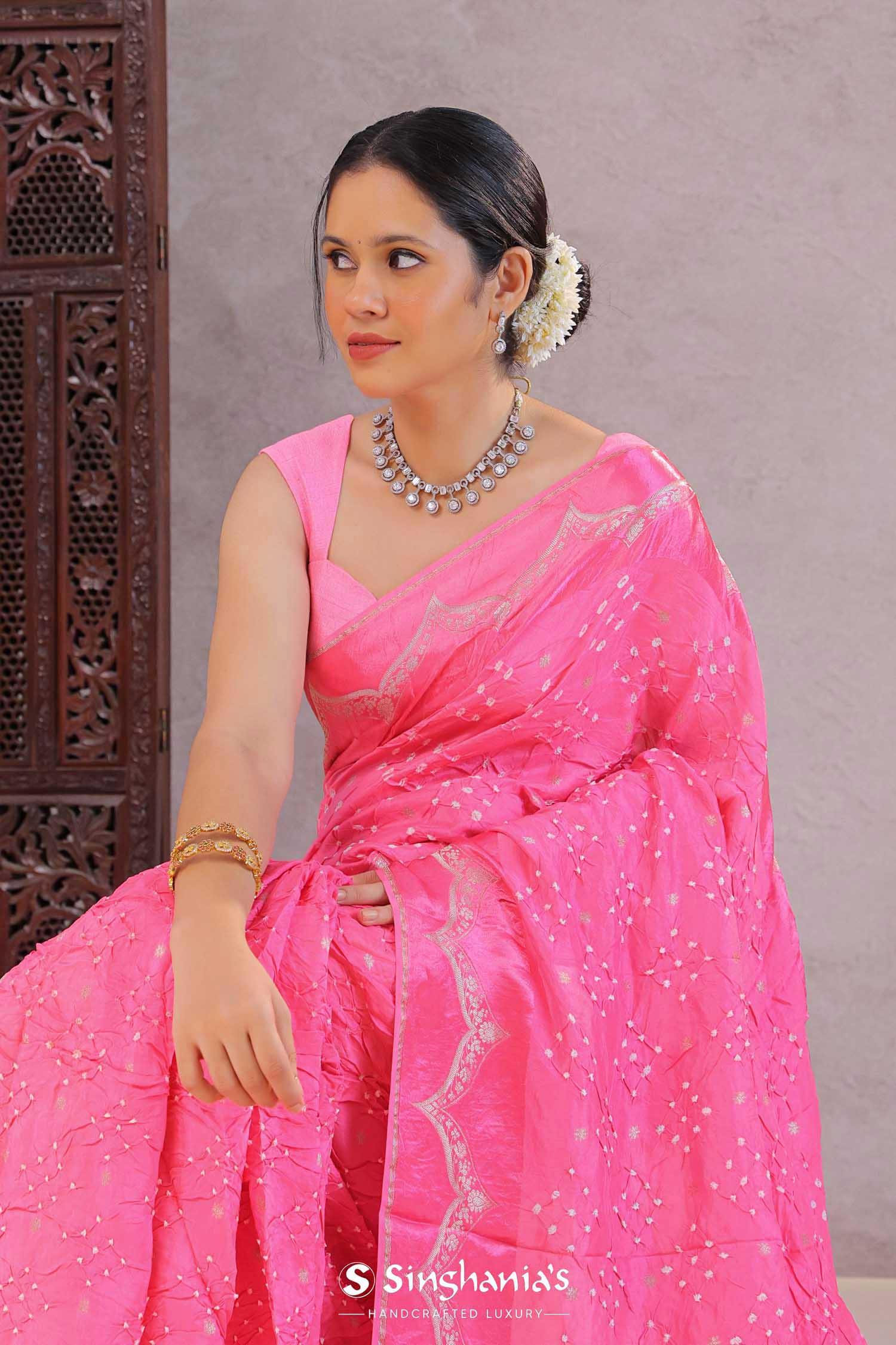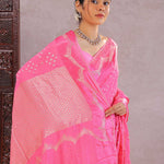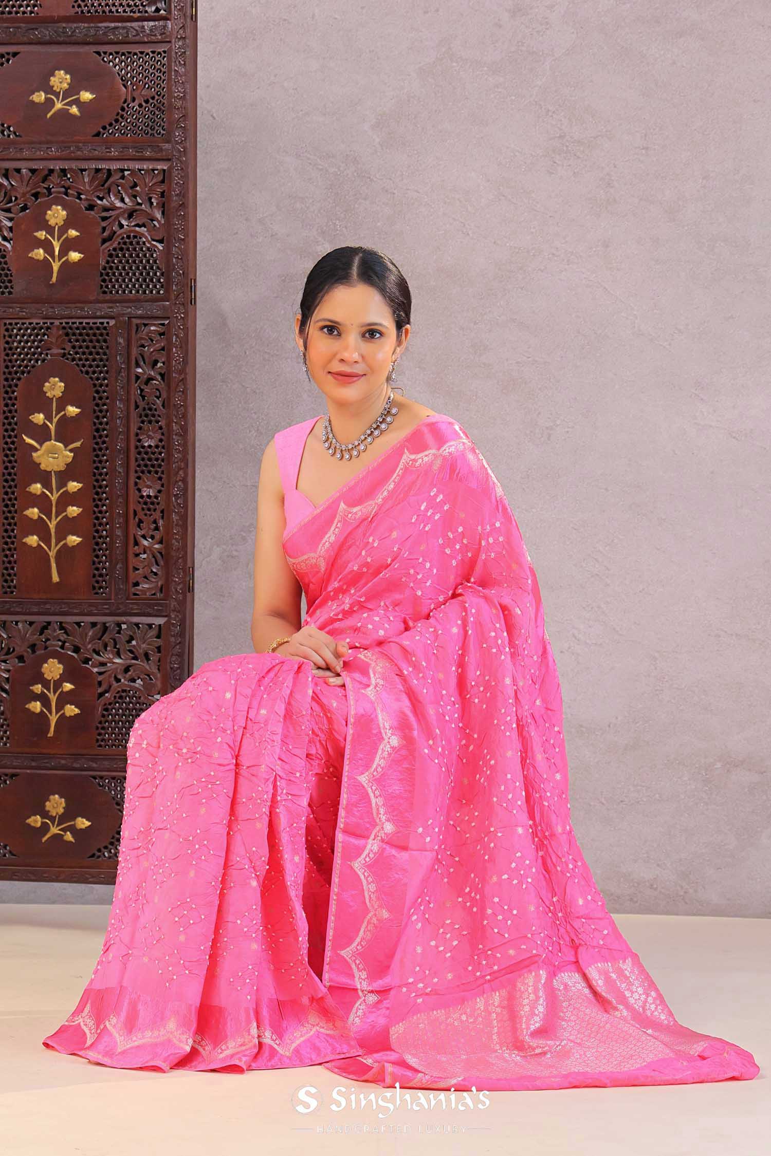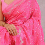 Creamy Pink Silk Bandhani Saree