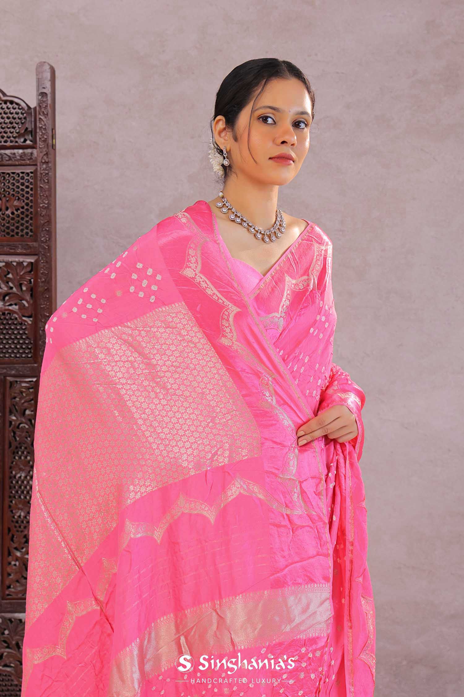 Pair with minimal jewellery and soft makeup to highlight the timeless elegance Singhaniaβs is known for.