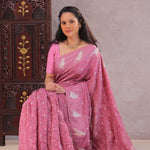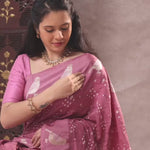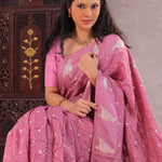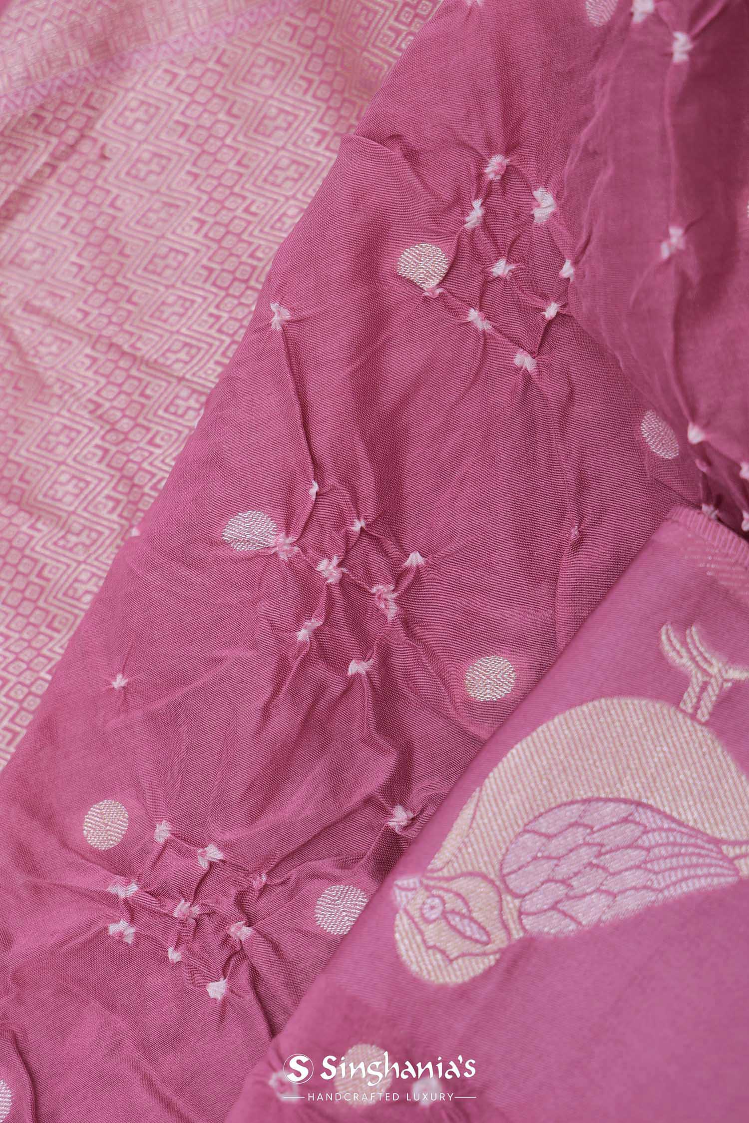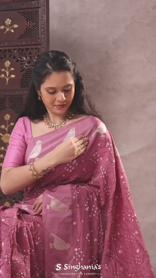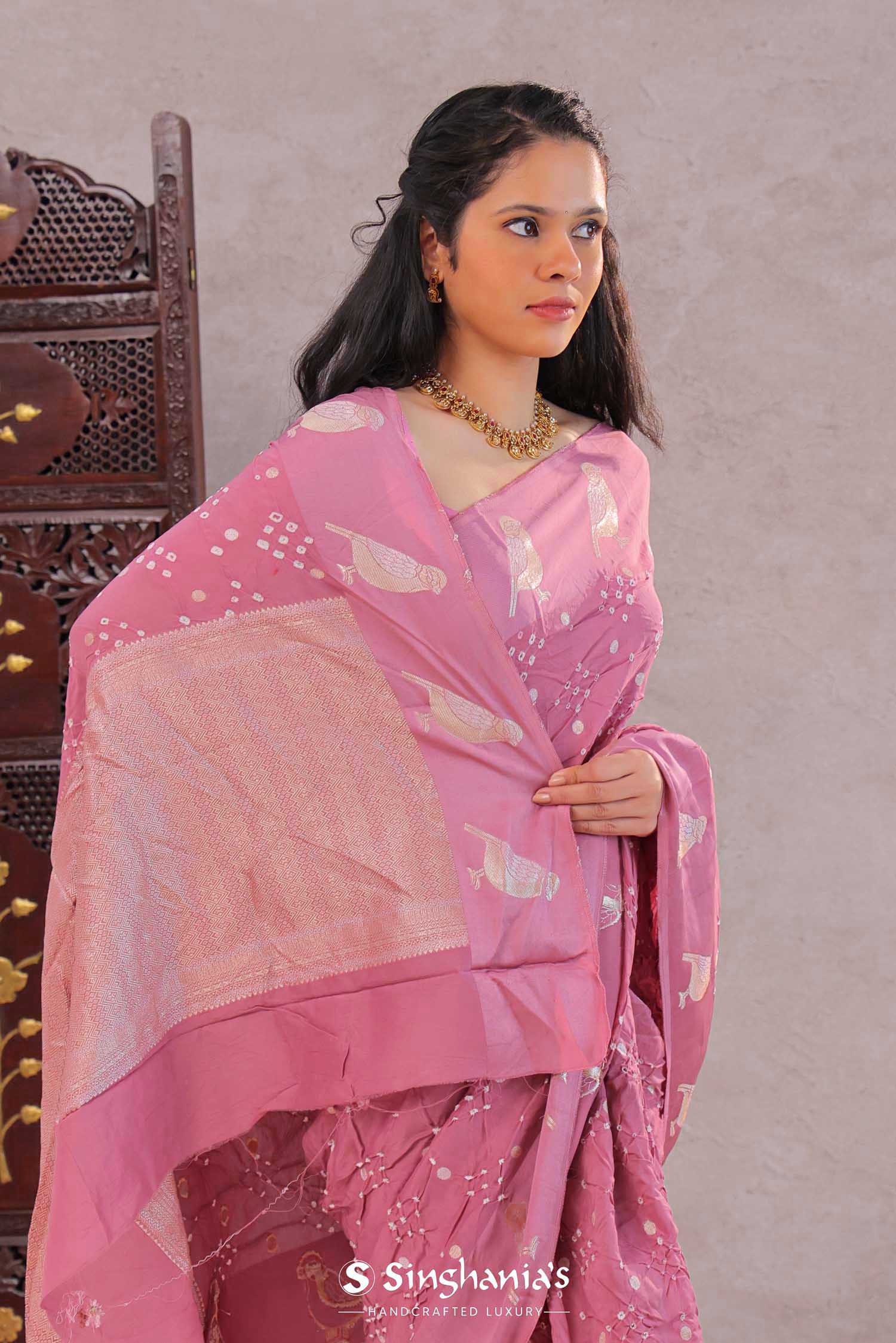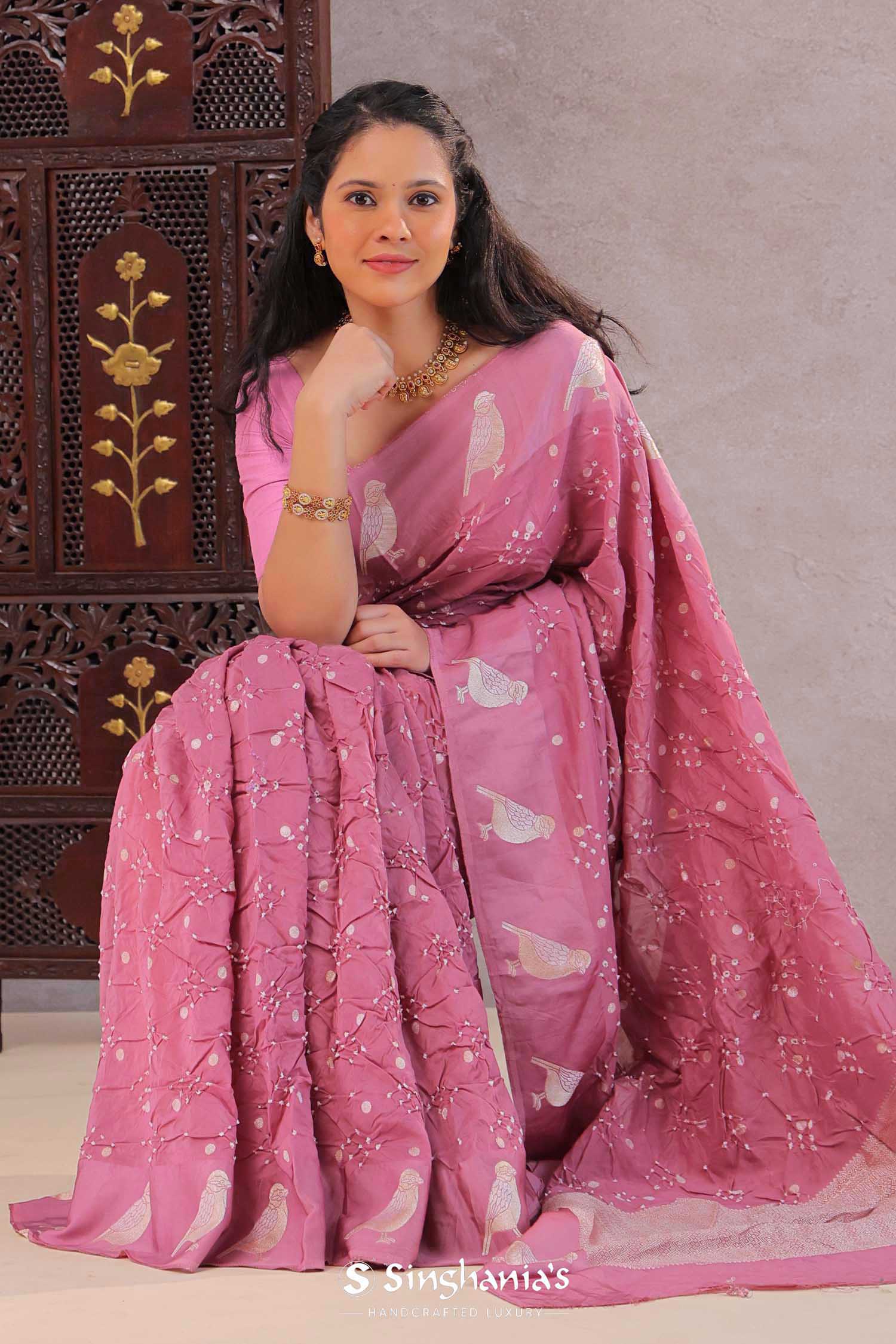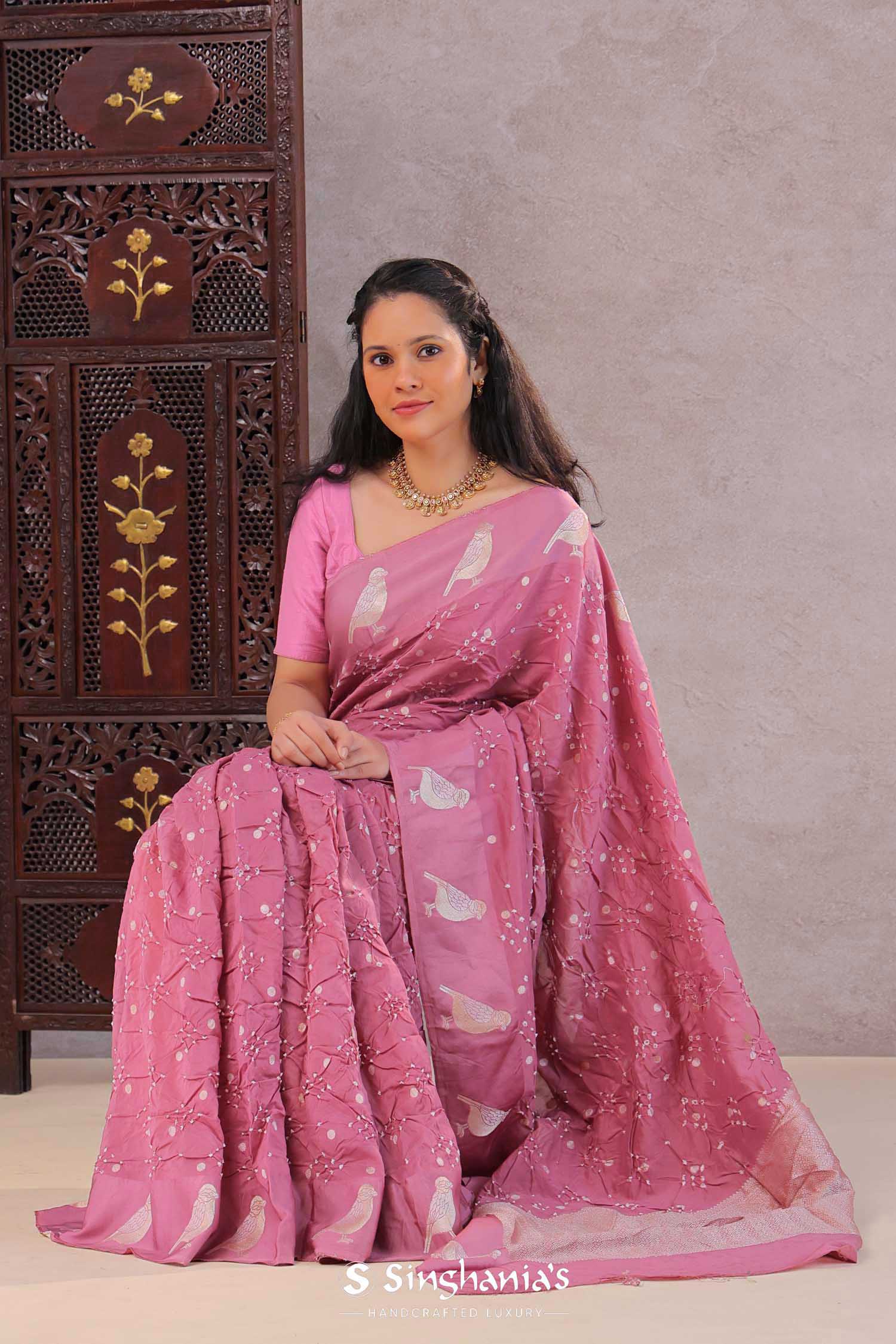This dye pattern on Dusty pink silk bandhani saree with border featuring avian motifs is a ideal choice for any occasion.Making you satisfy with each drape