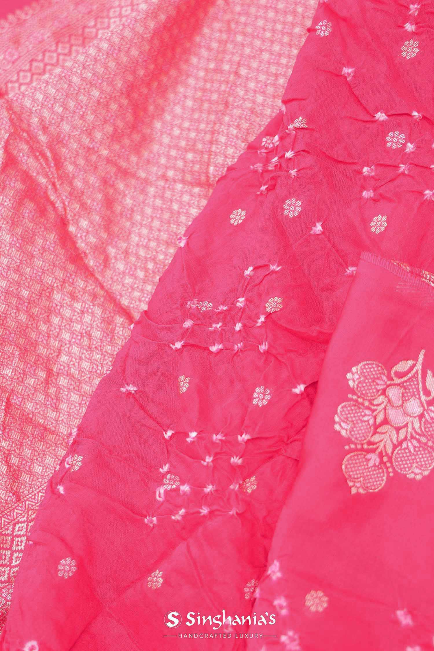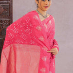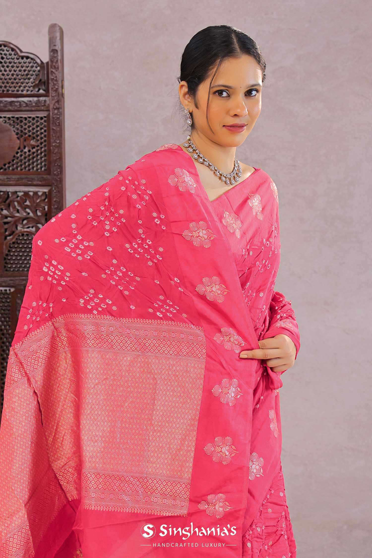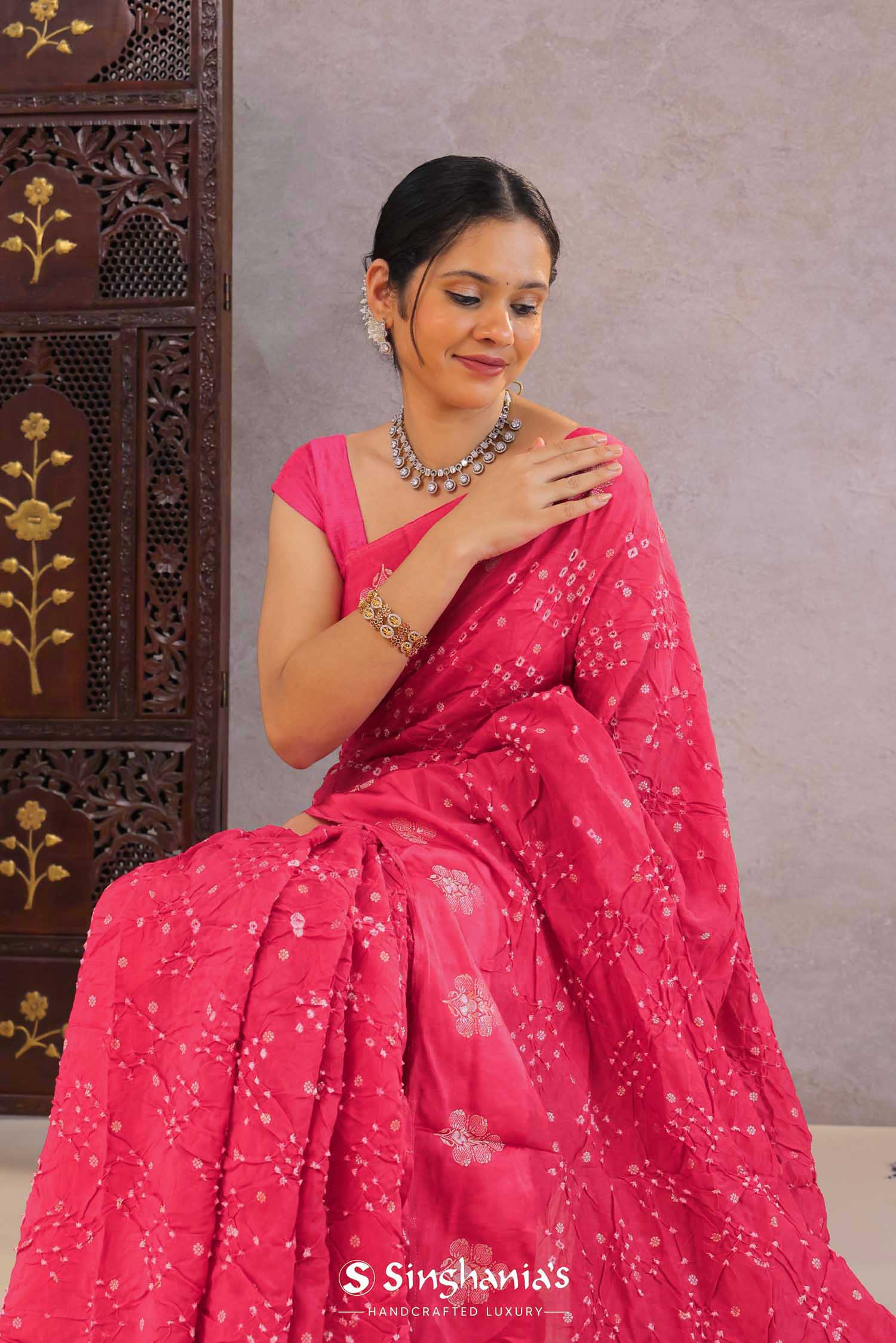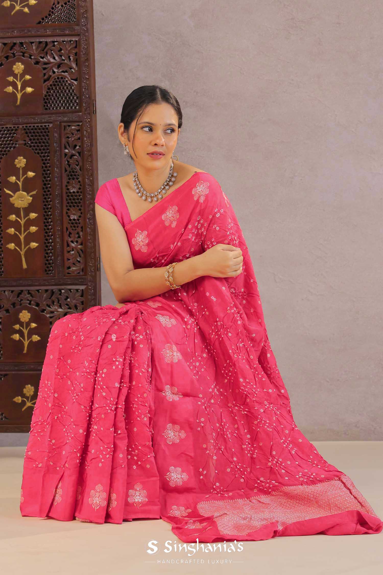 This dye pattern on Hot pink bandhani silk saree with border featuring floral motifs is a ideal choice for any occasion.Making you satisfy with each drape