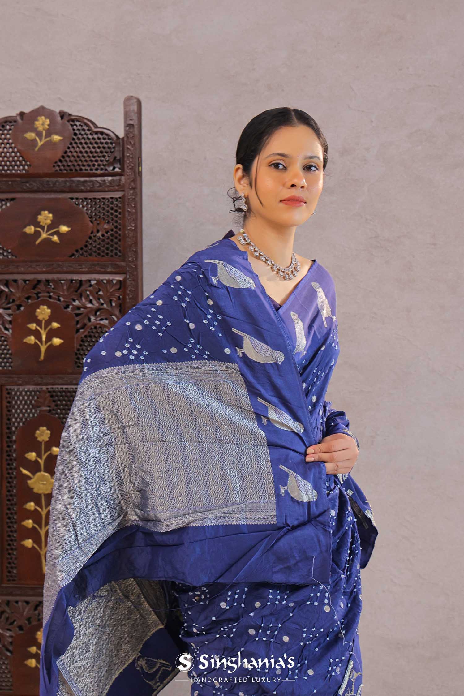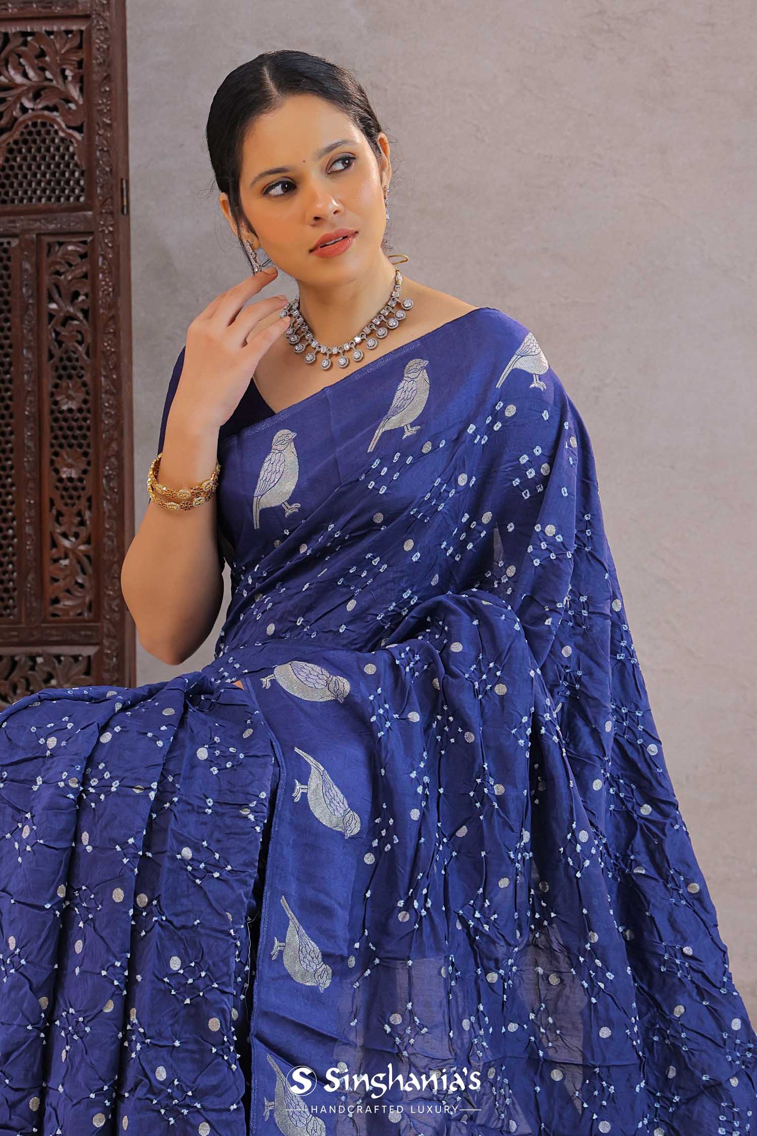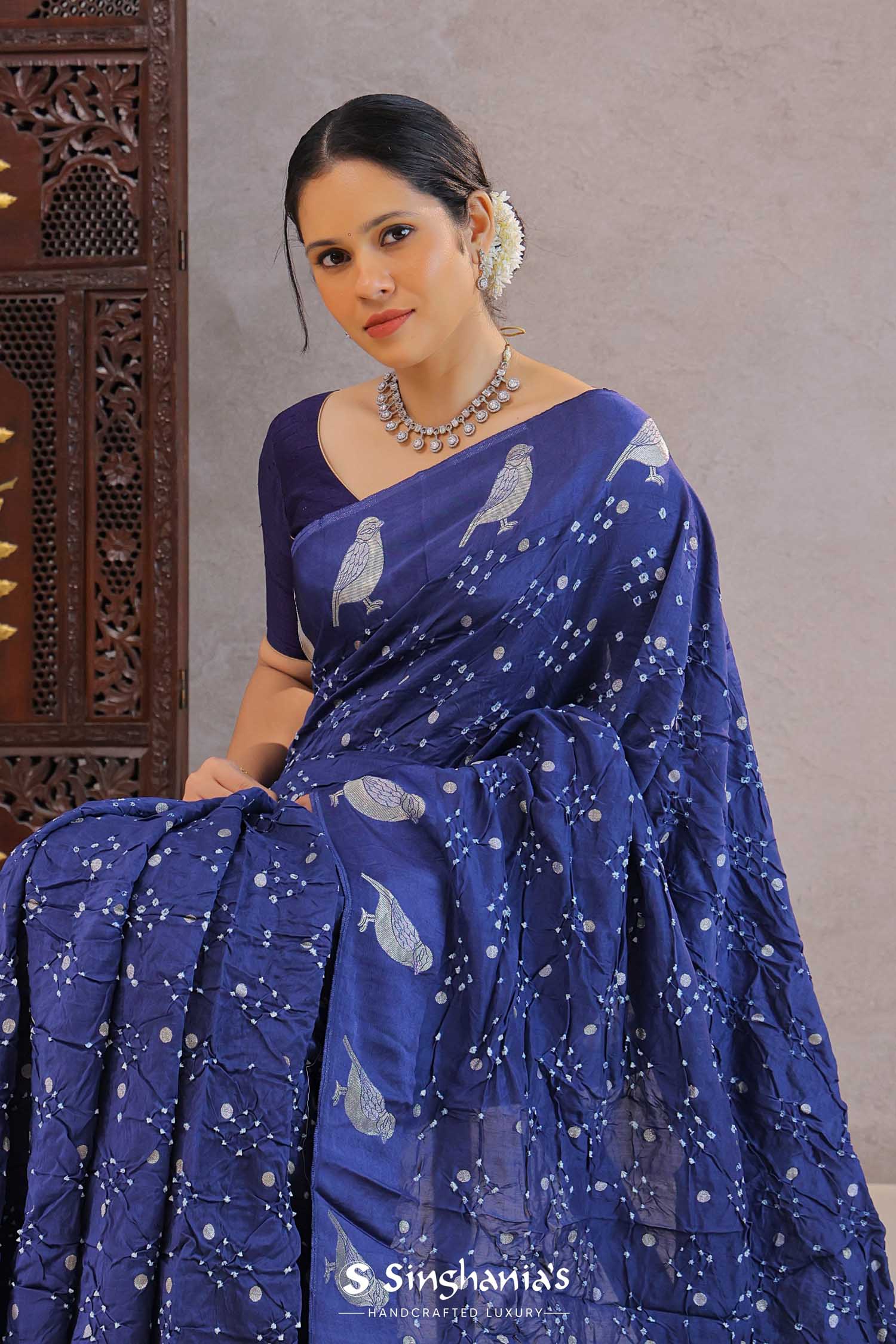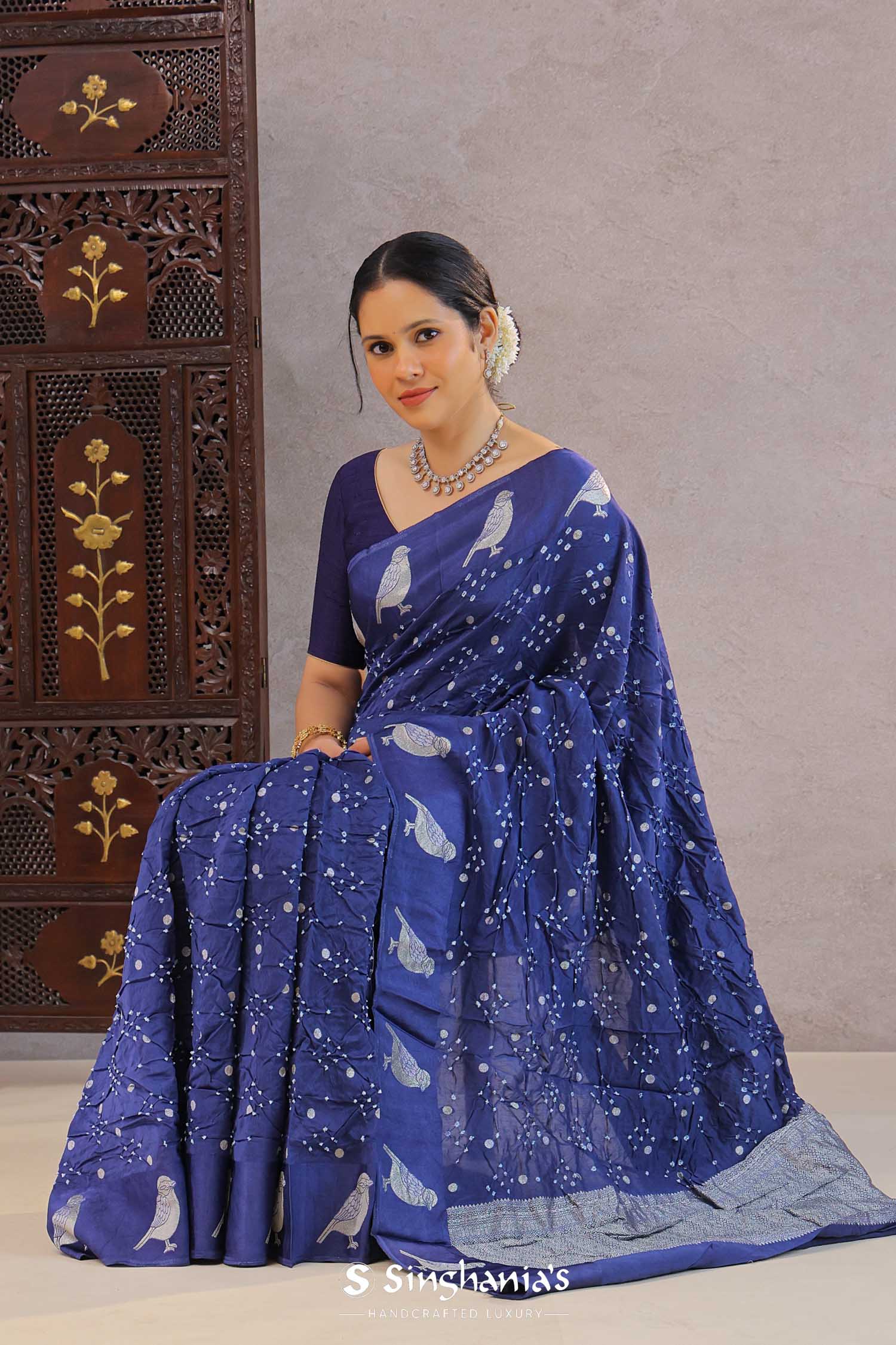This dye pattern on Midnight bandhani silk saree with border featuring avian motifs is a ideal choice for any occasion.Making you satisfy with each drape