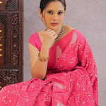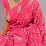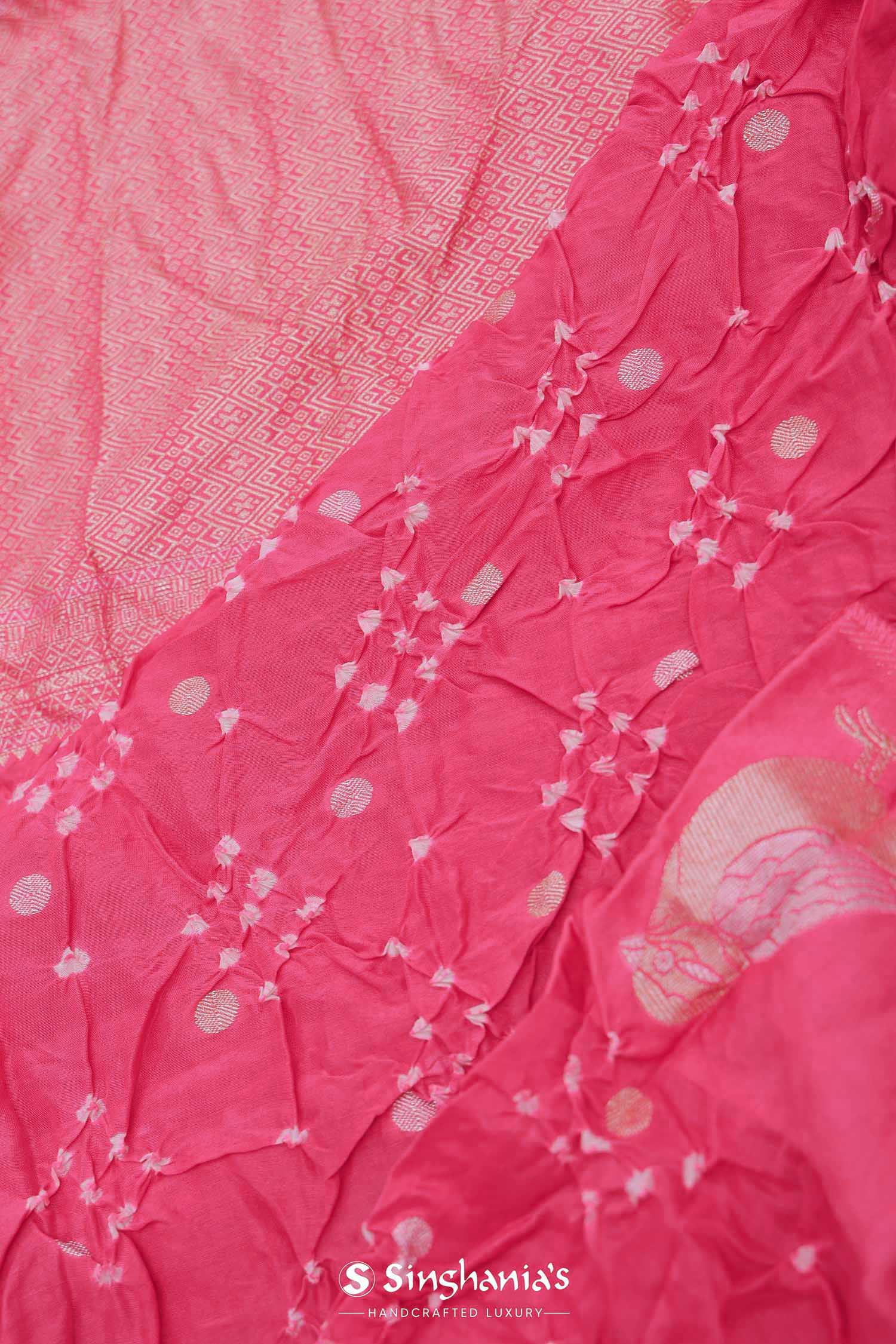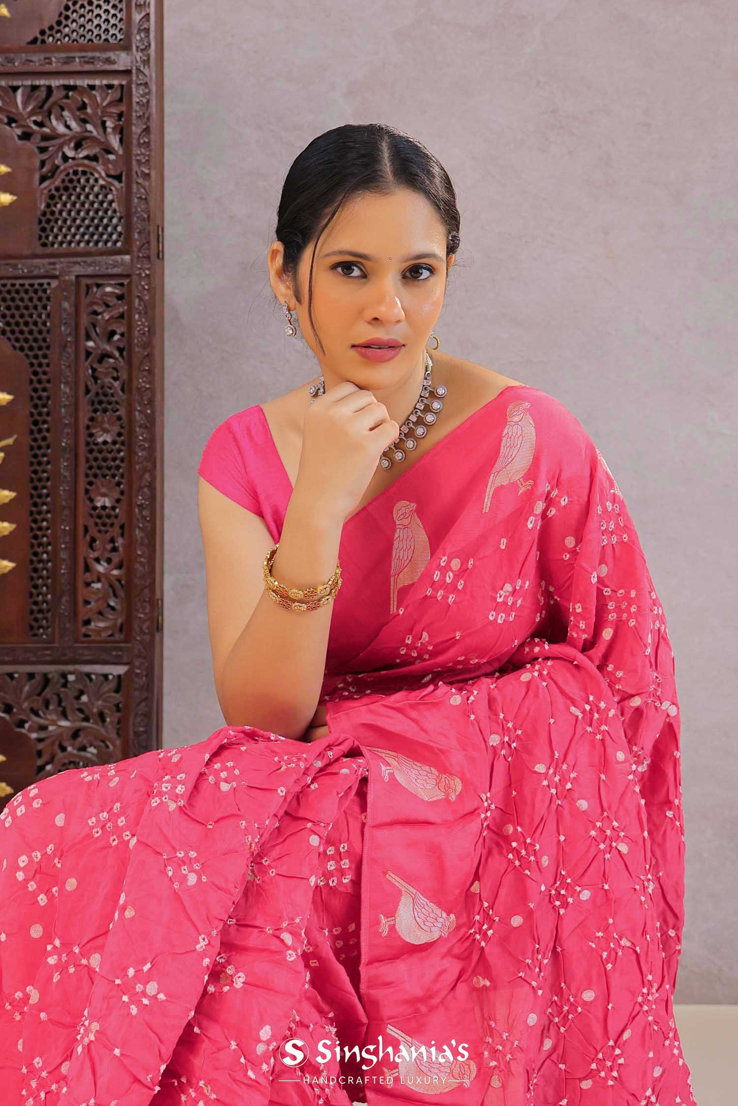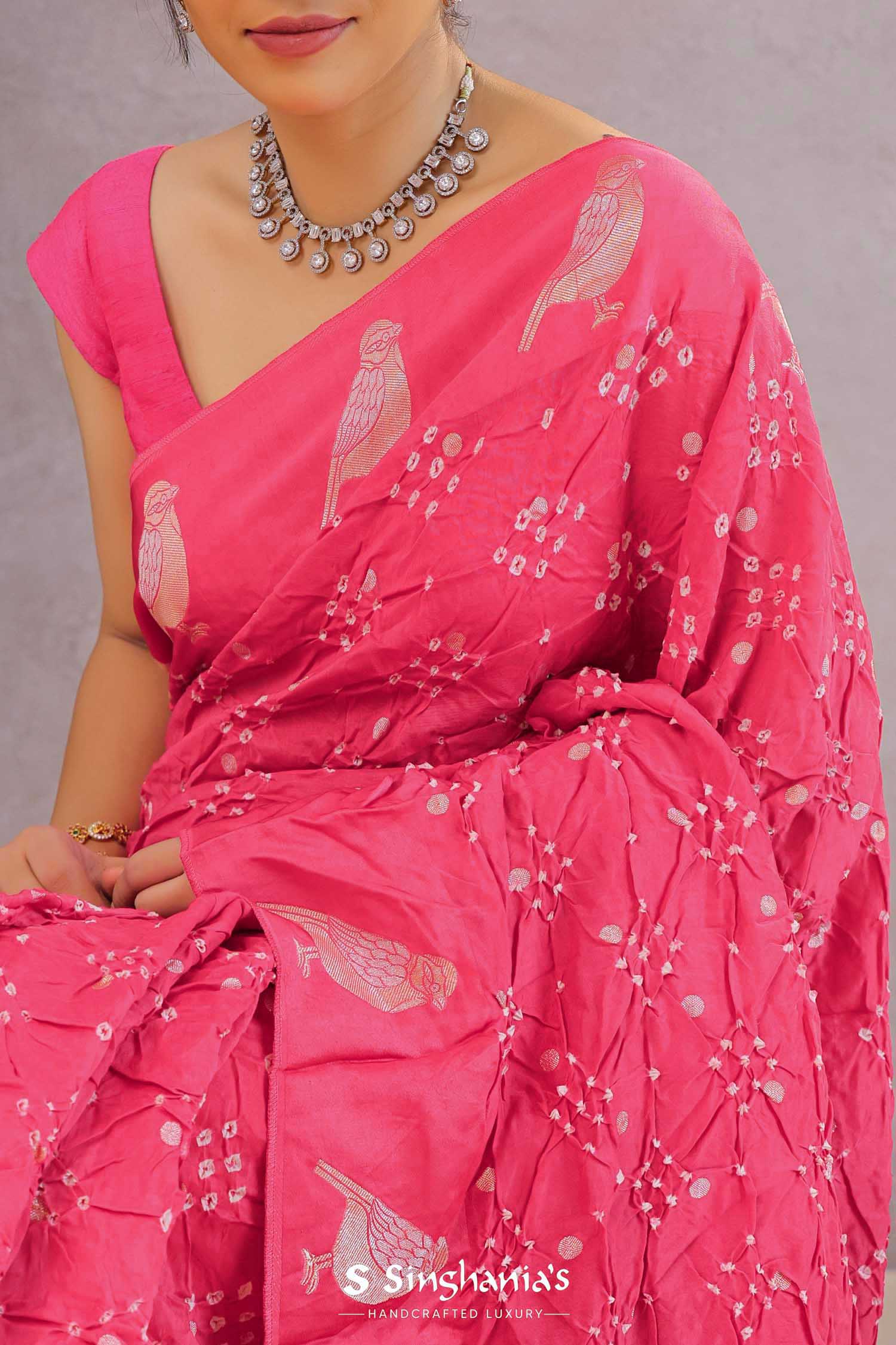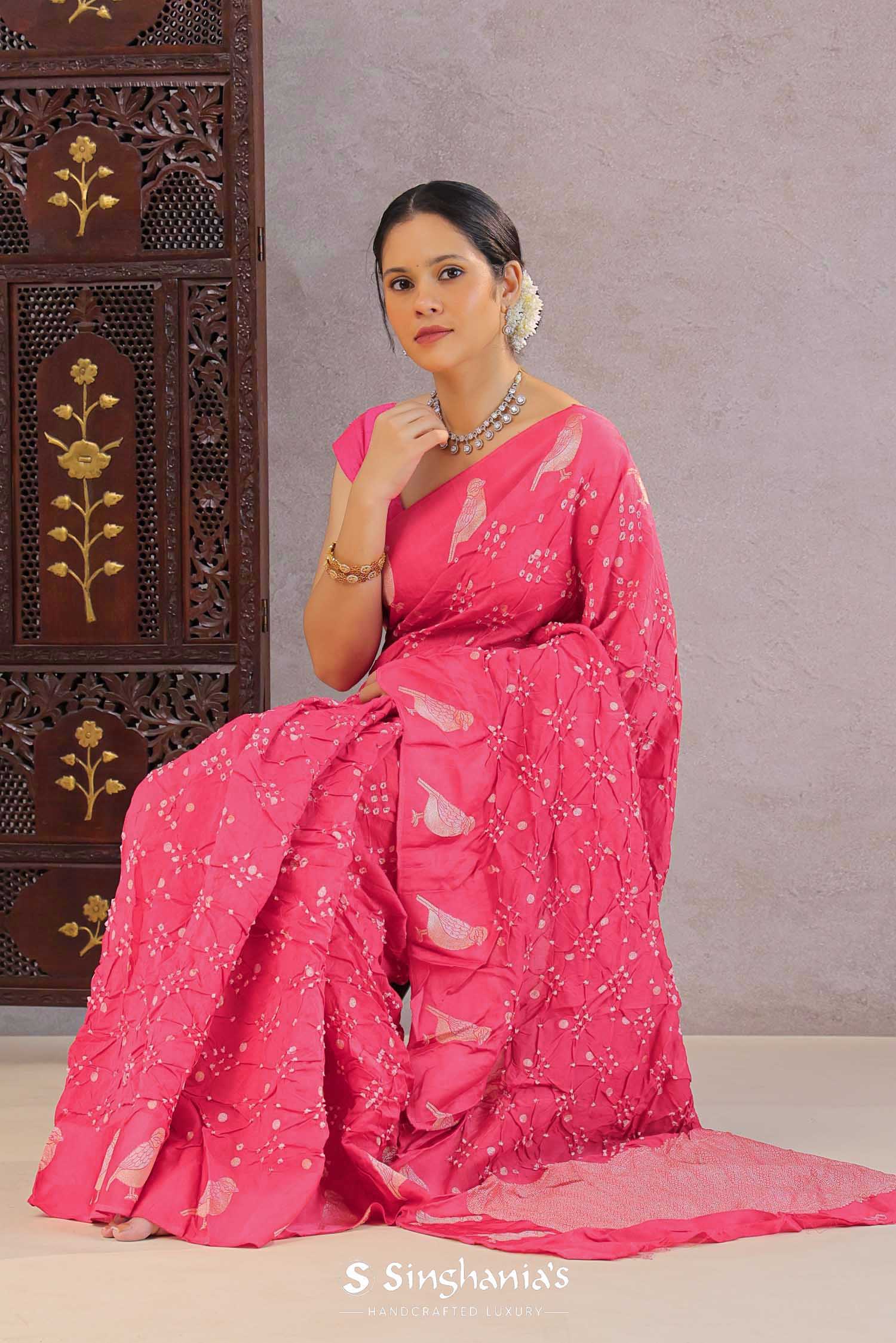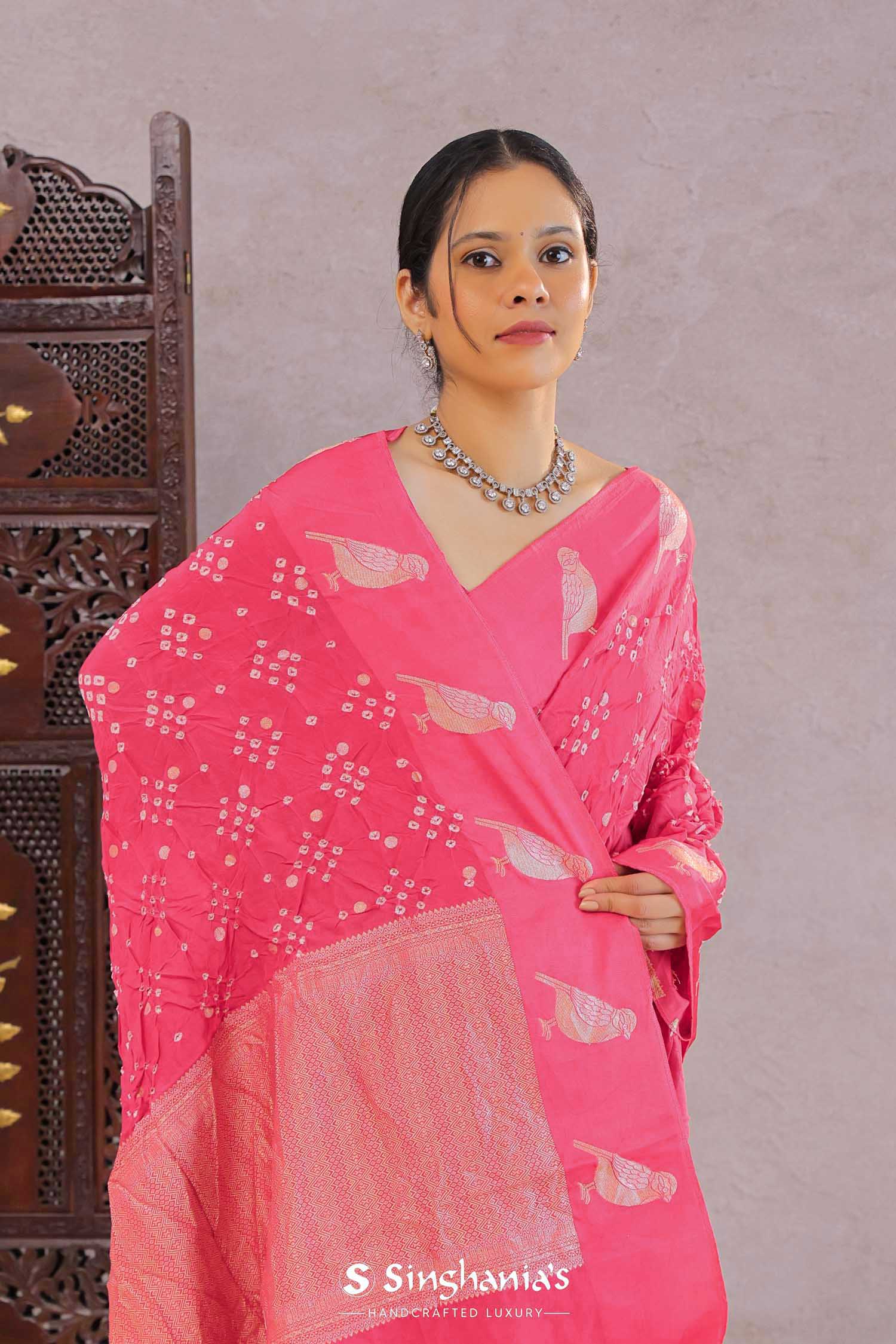 This dye pattern on pink silk bandhani saree with mashru silk border featuring Avian motifs is a ideal choice for any occasion.Making you satisfy with each drape