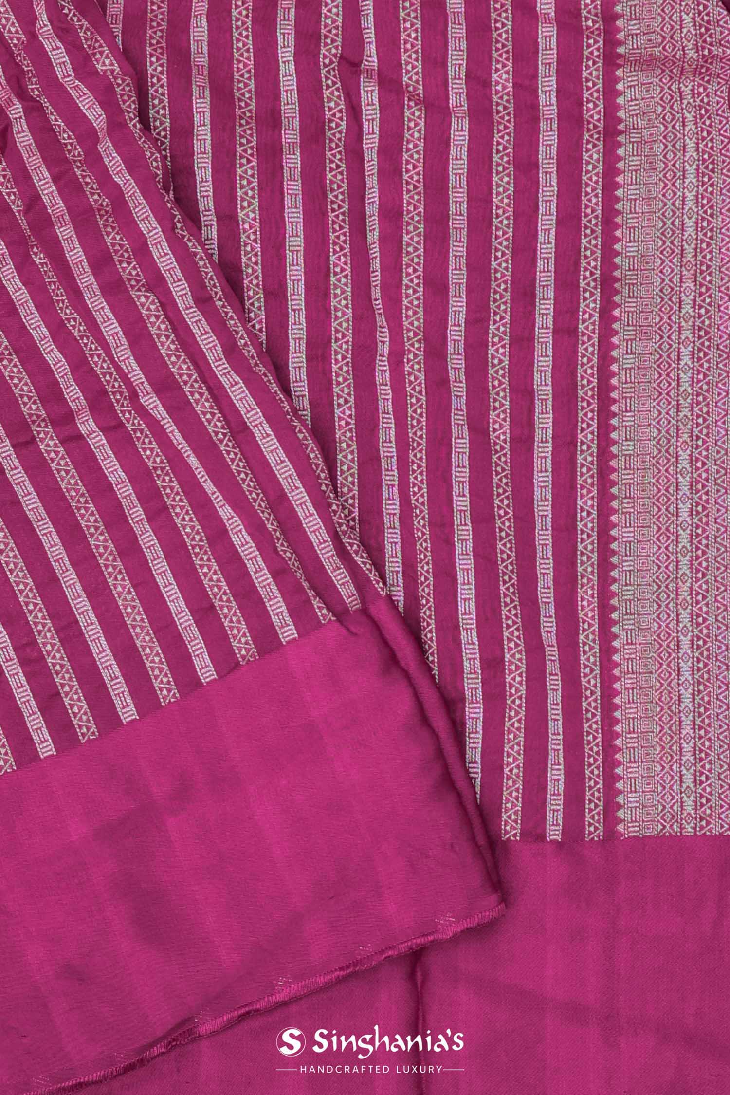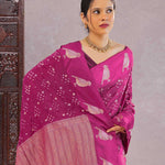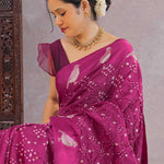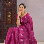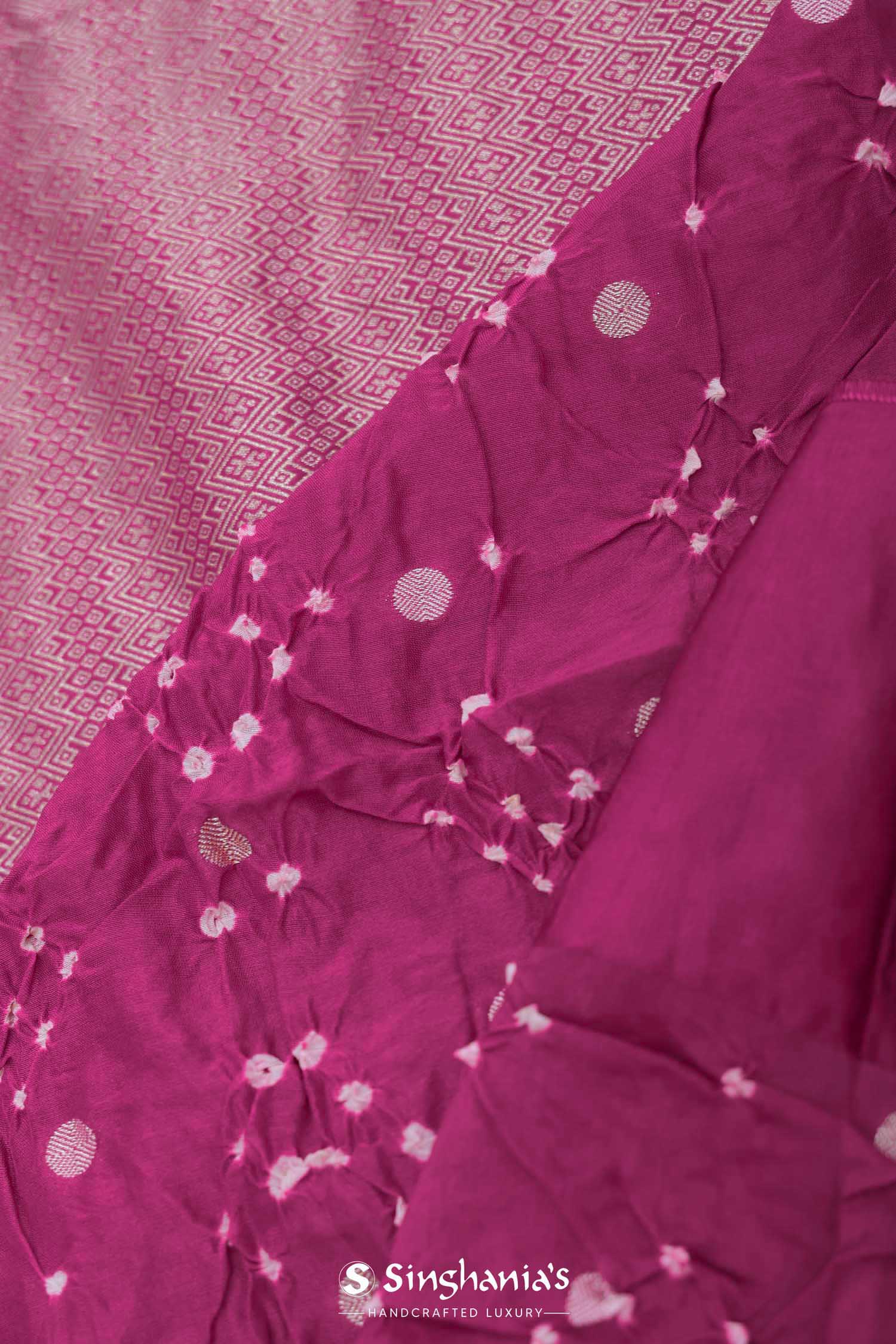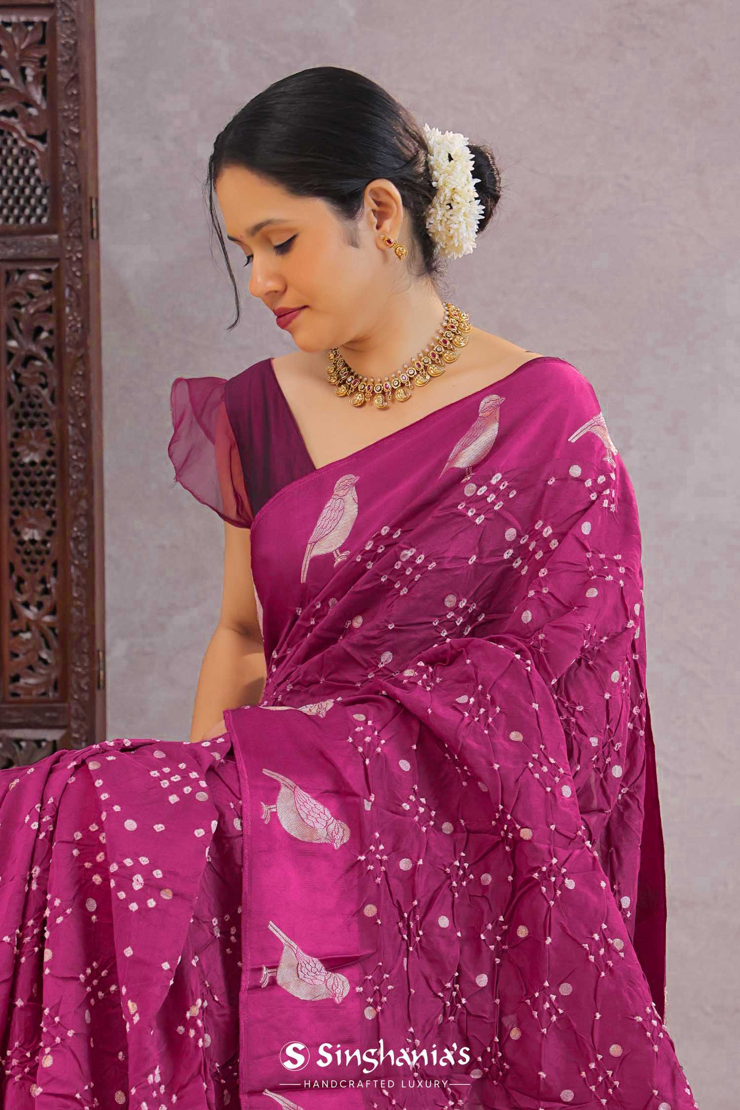 This dye pattern on Red violet bandhani silk saree with border featuring avian motifs is a ideal choice for any occasion.Making you satisfy with each drape