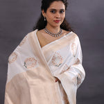 Off-White Banarasi Silk Saree With Floral Zari