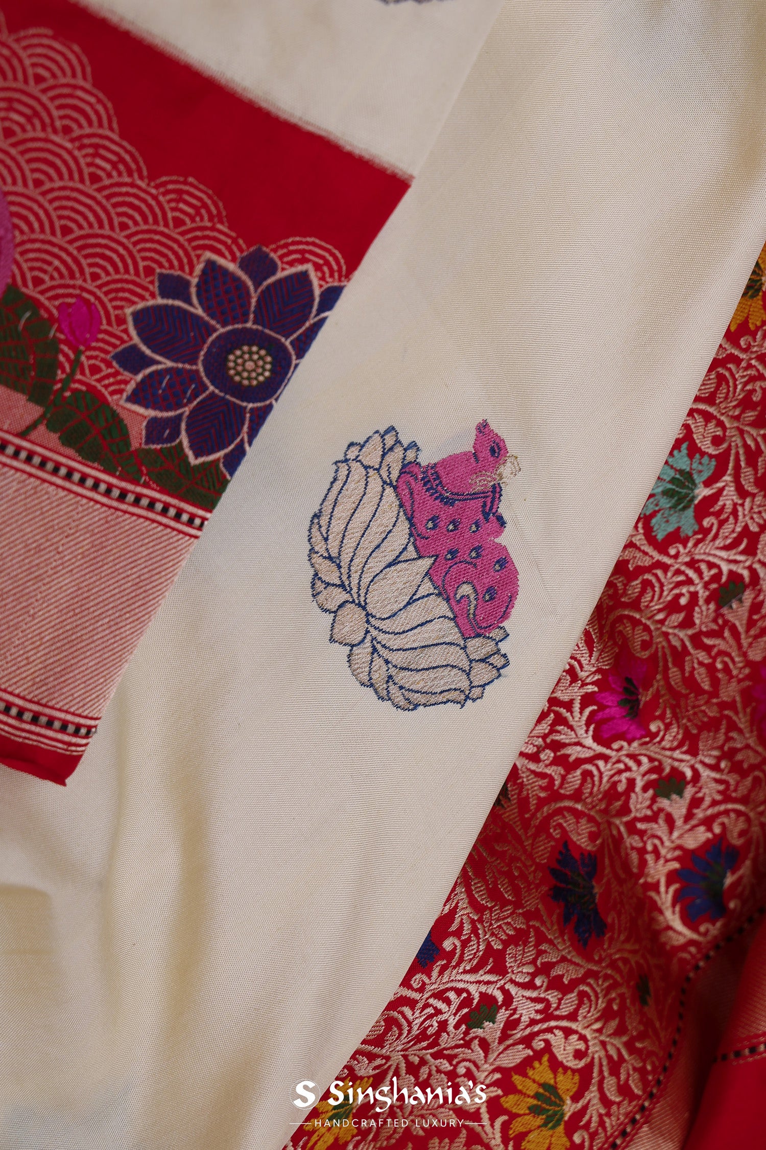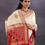 Off-White Banarasi Silk Saree With Meenakari Work