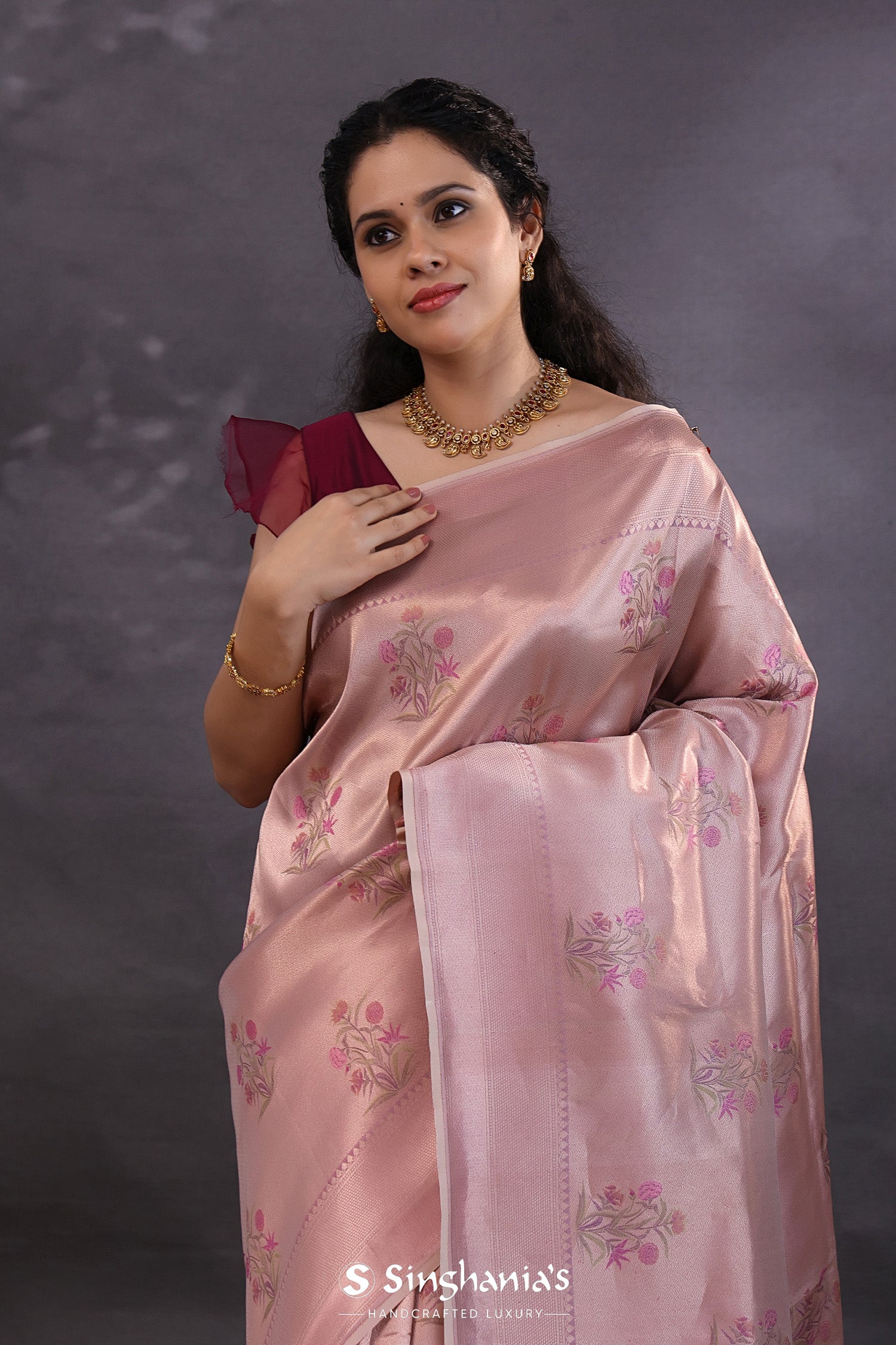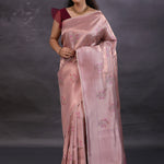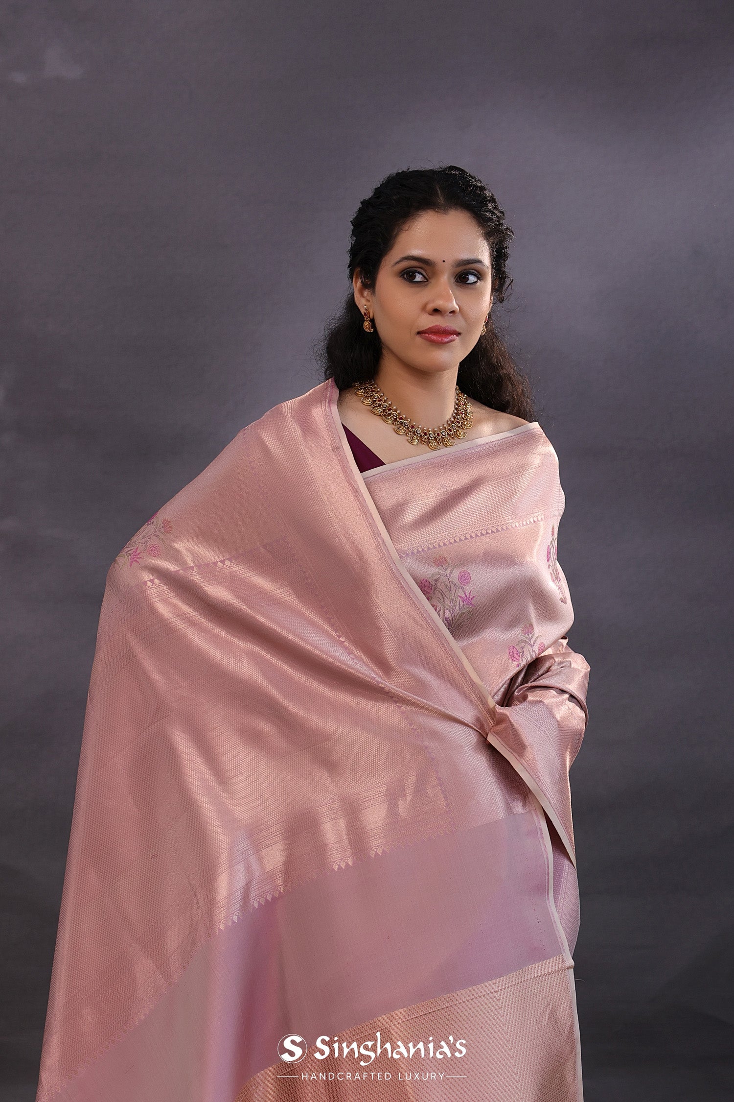 Pastel Pink Banarasi Silk Saree With Meenakari Jaal