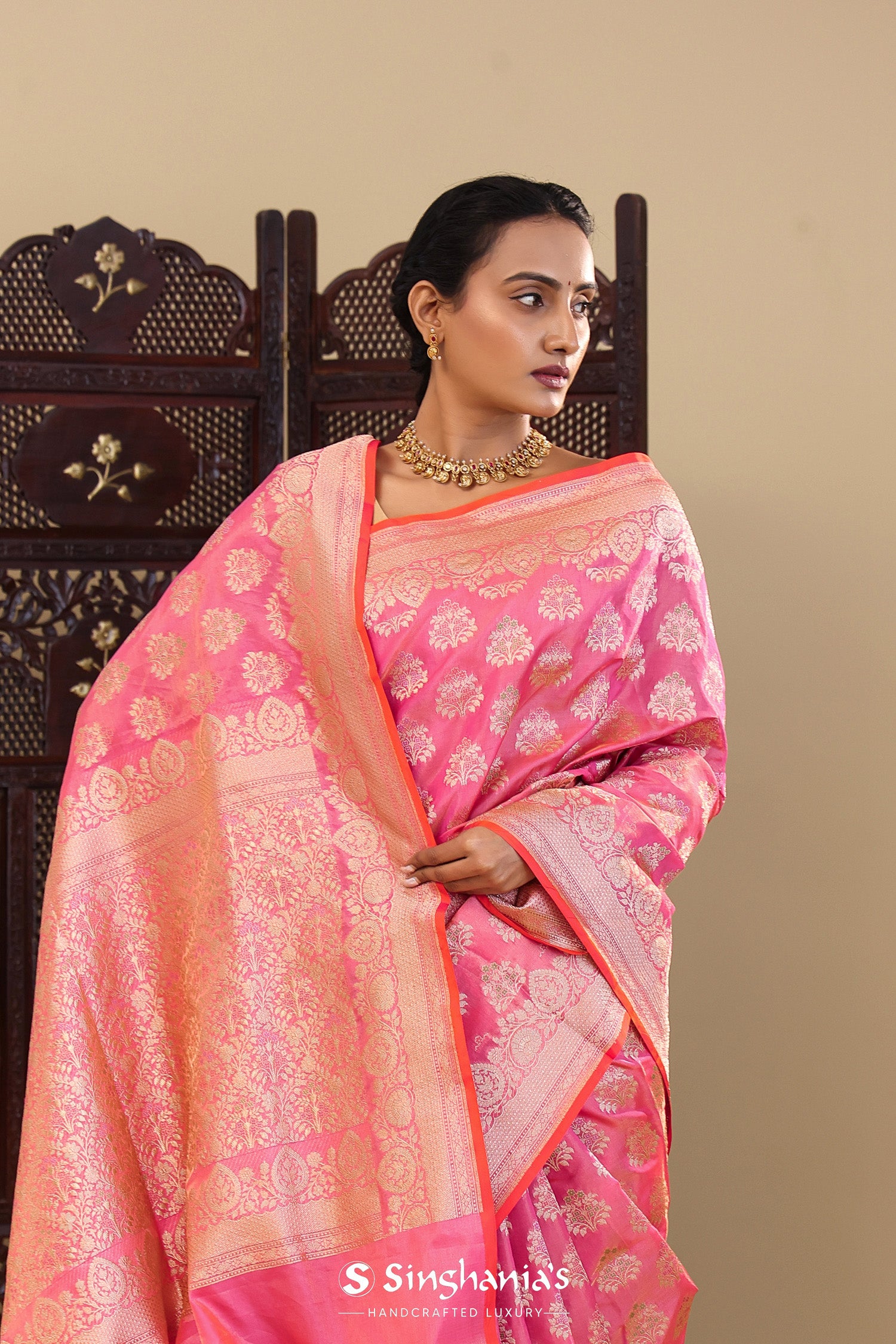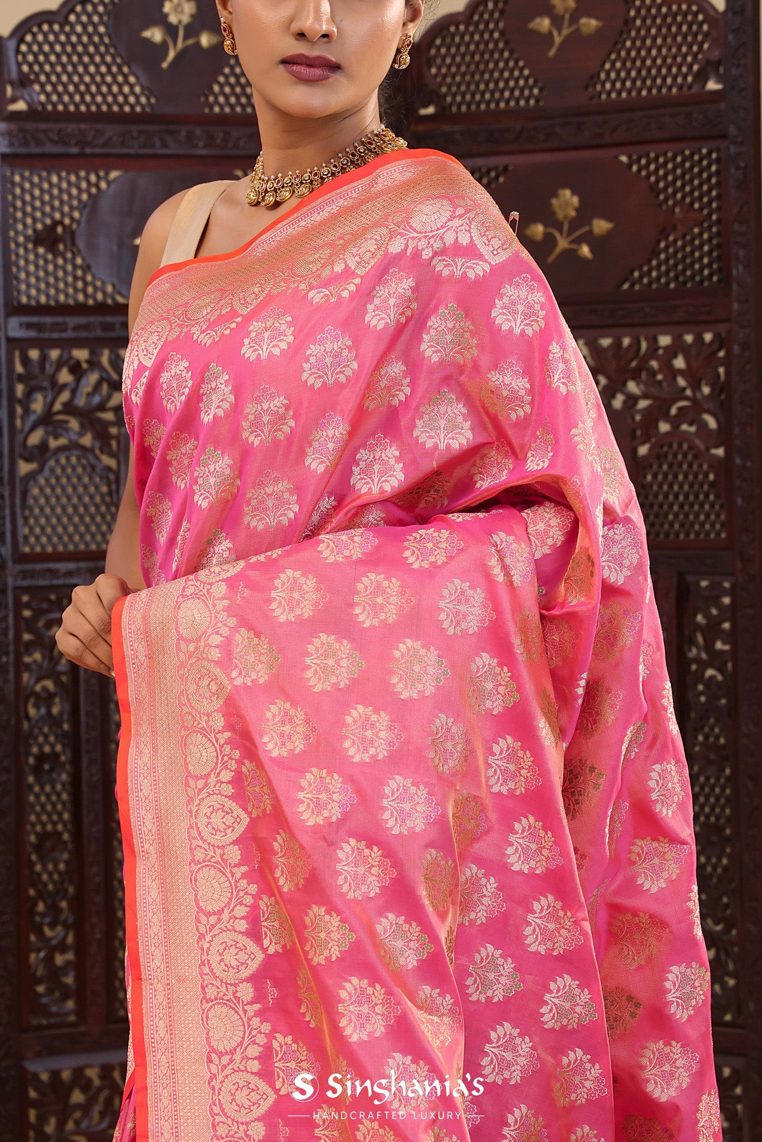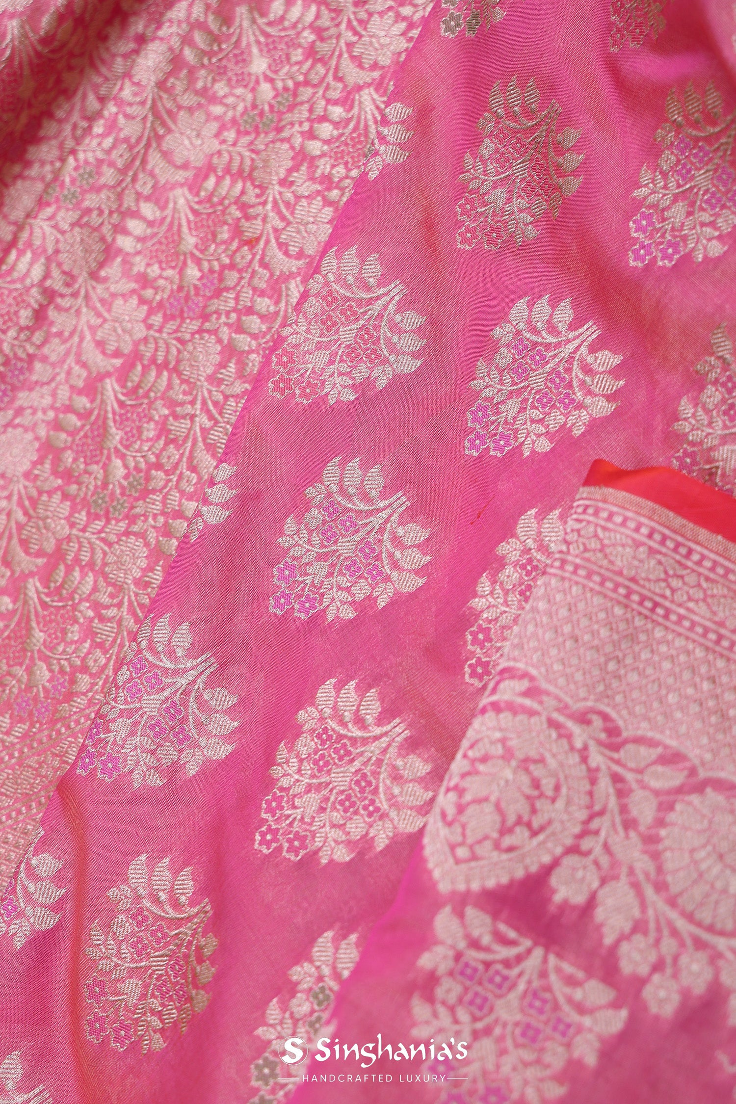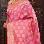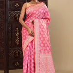Pink Banarasi Tissue Saree With Meenakari Motifs