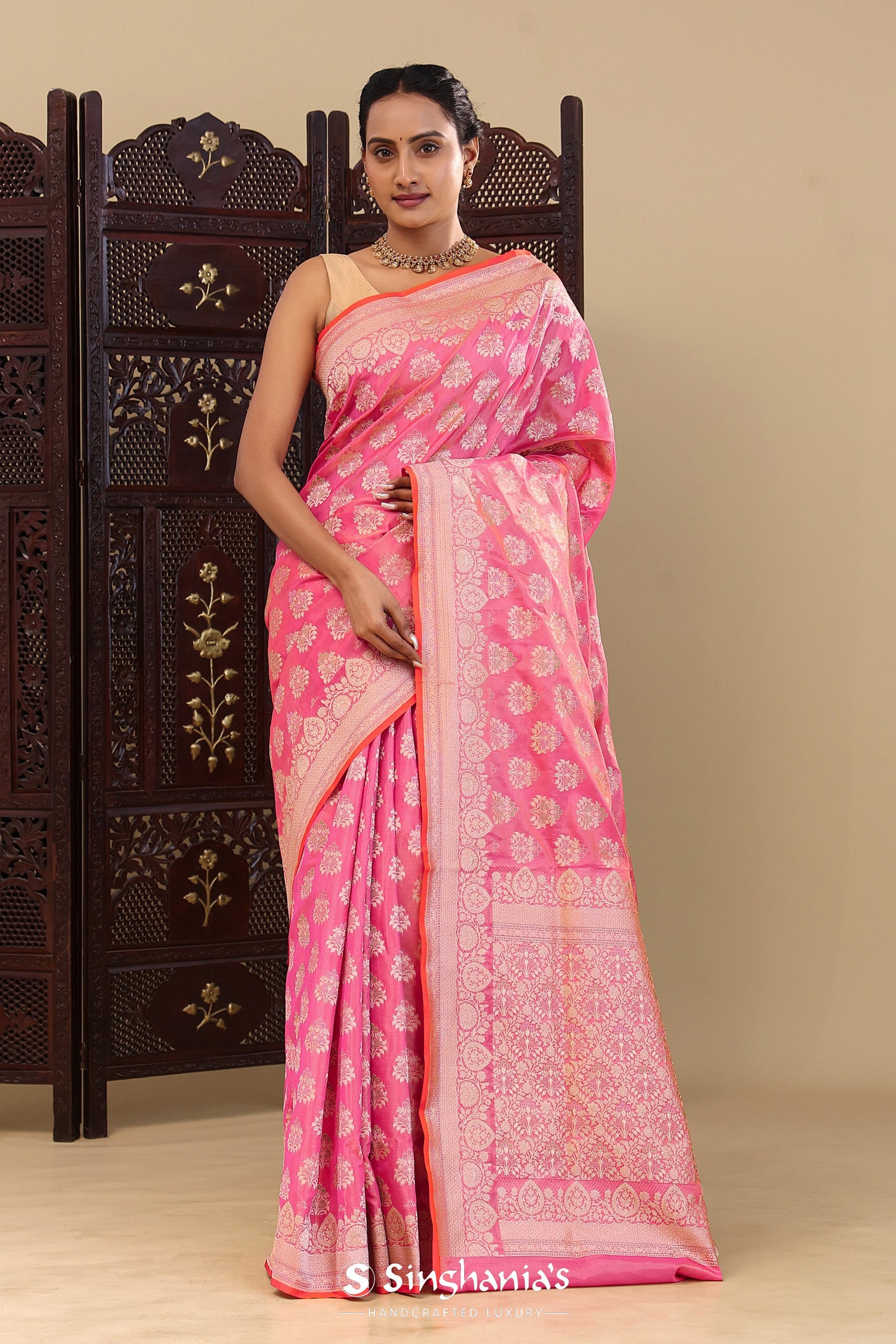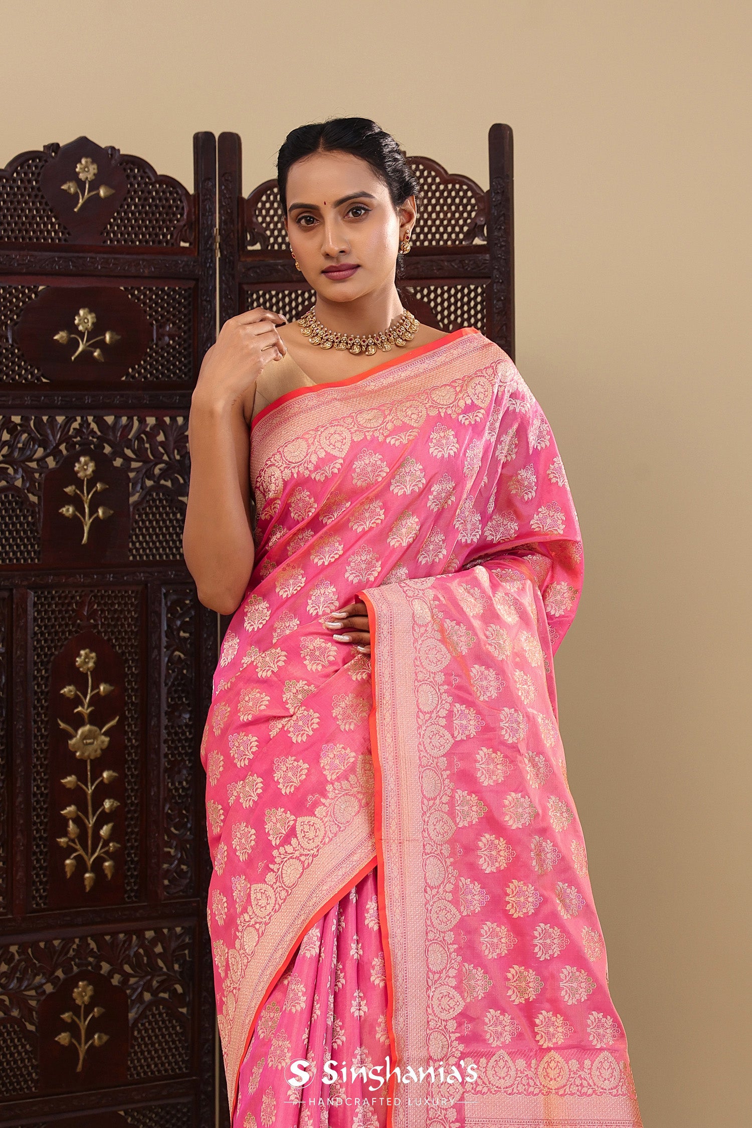 Pair with minimal jewellery and soft makeup to highlight the timeless elegance Singhaniaβs is known for.