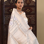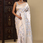 Santa Gray Banarasi Tissue Saree With Brocade Design