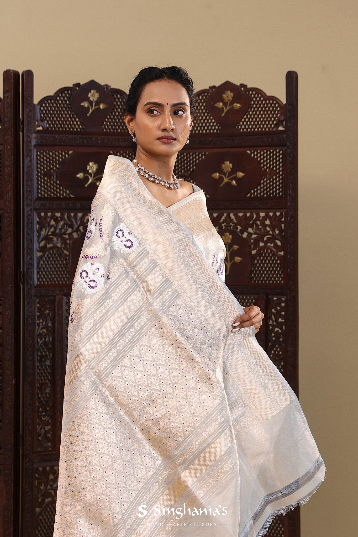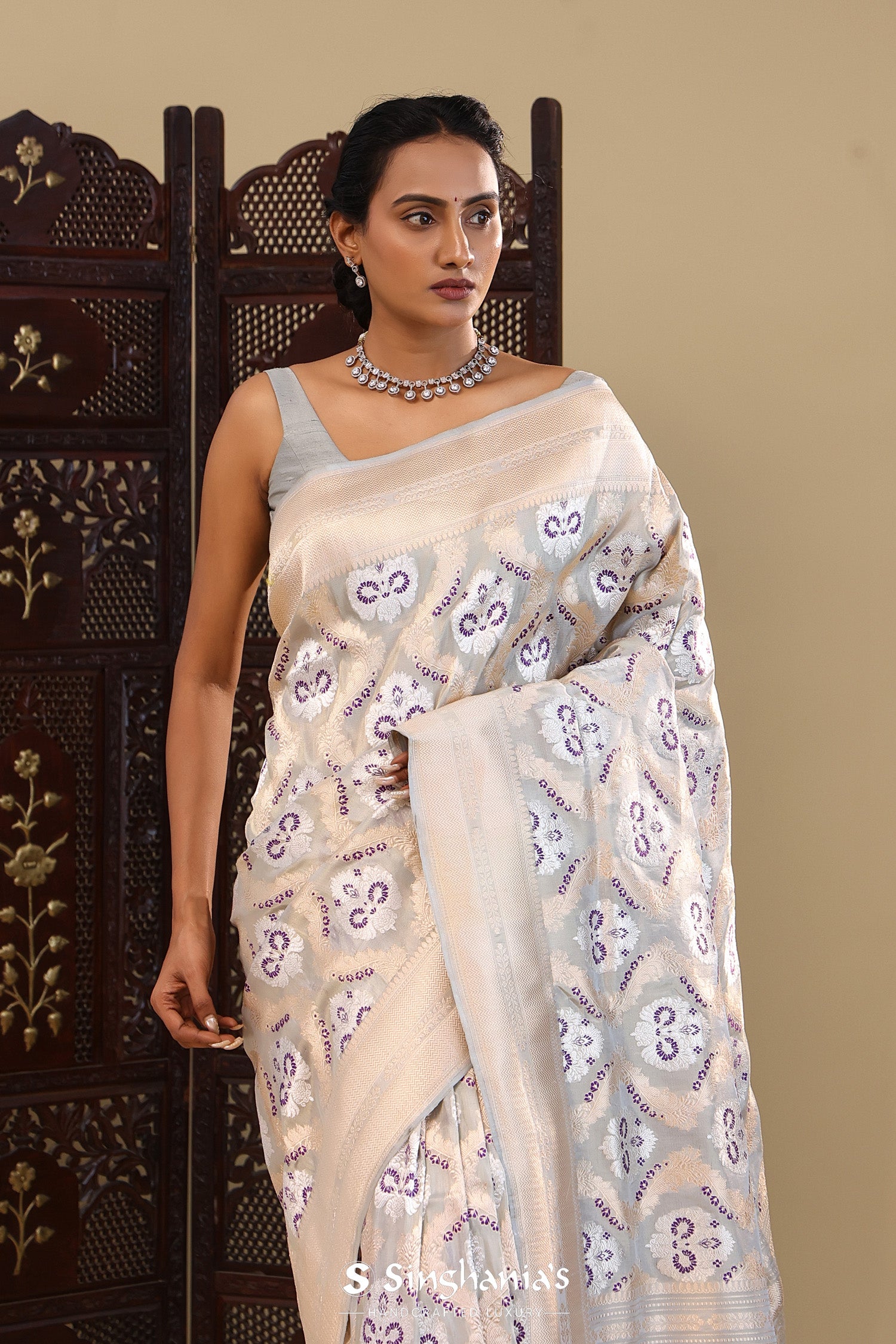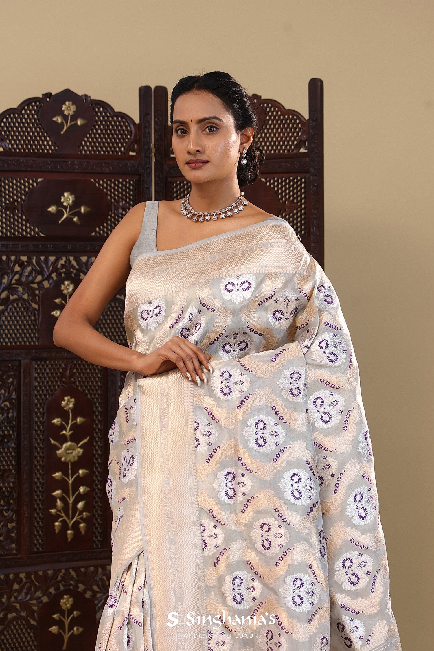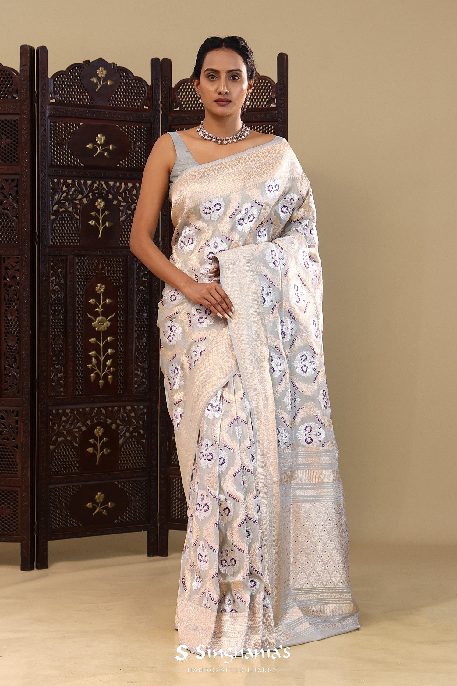 Pair with minimal jewellery and soft makeup to highlight the timeless elegance Singhaniaβs is known for.