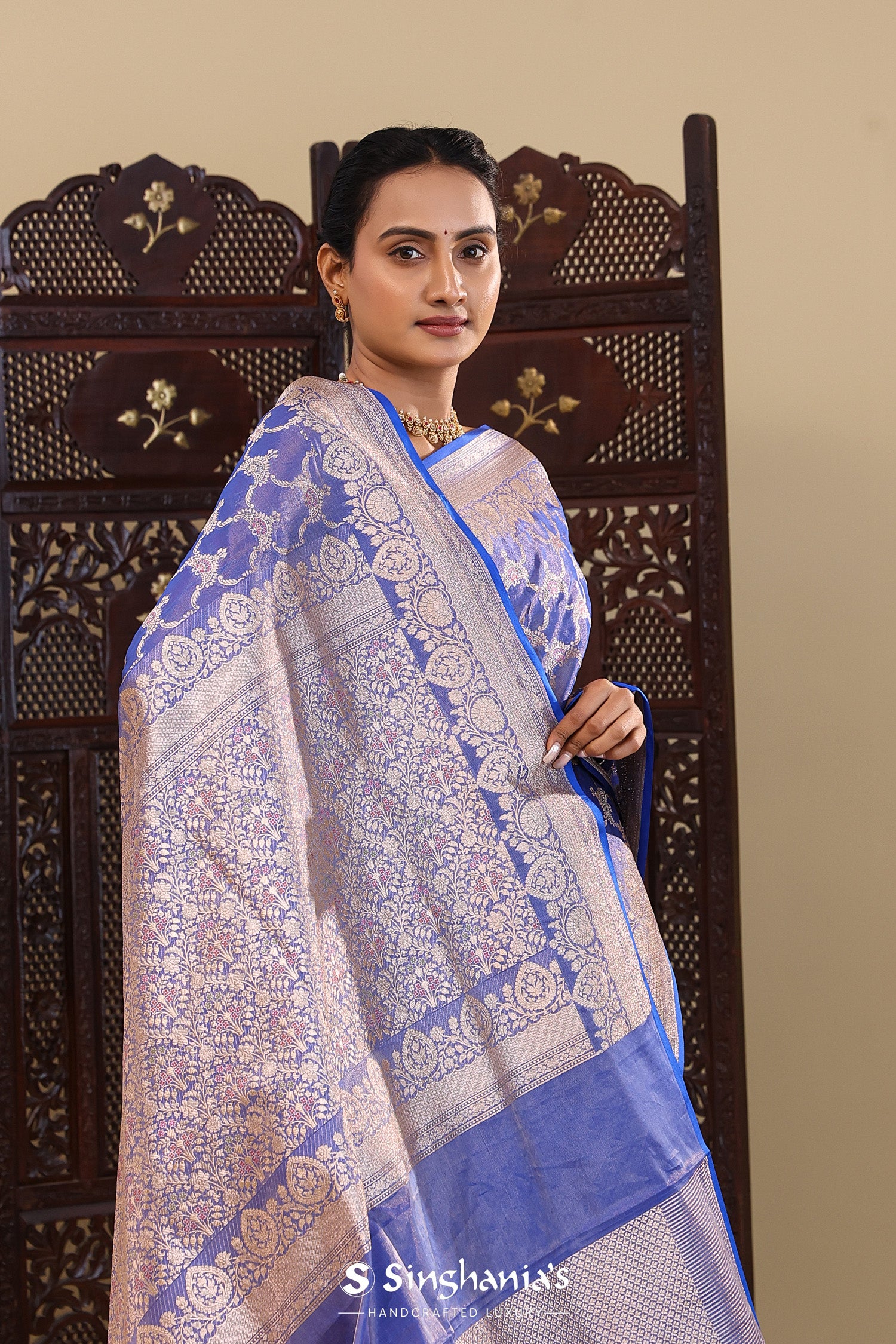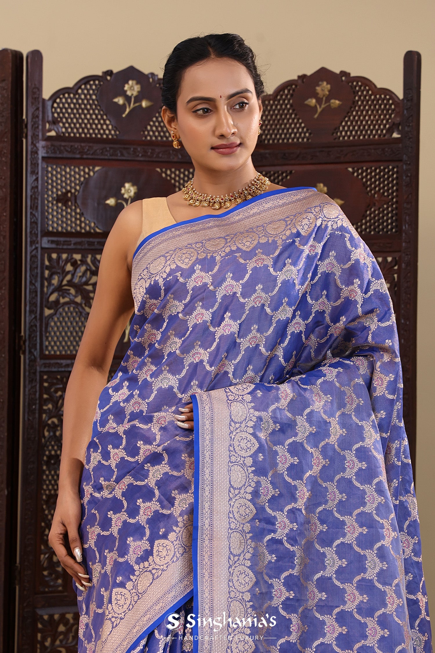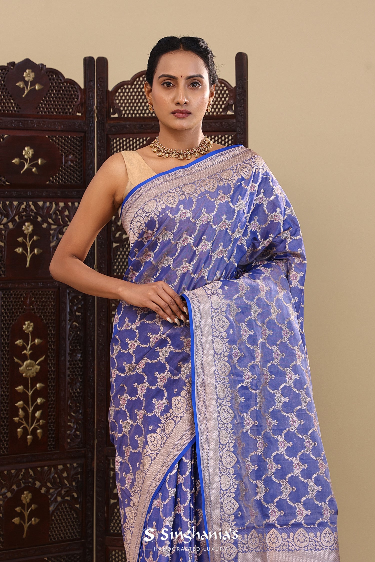 Pair with minimal jewellery and soft makeup to highlight the timeless elegance Singhaniaβs is known for.