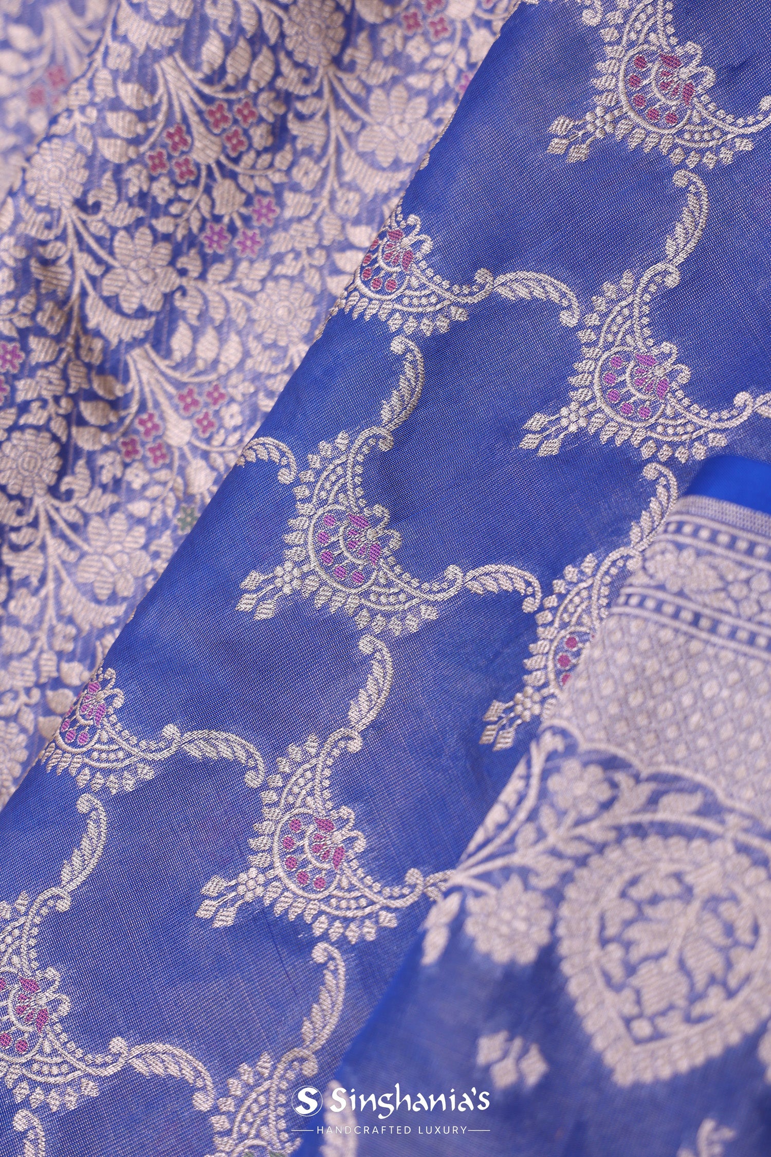 Scanoi Blue Banarasi Tissue Saree With Meenakari Design