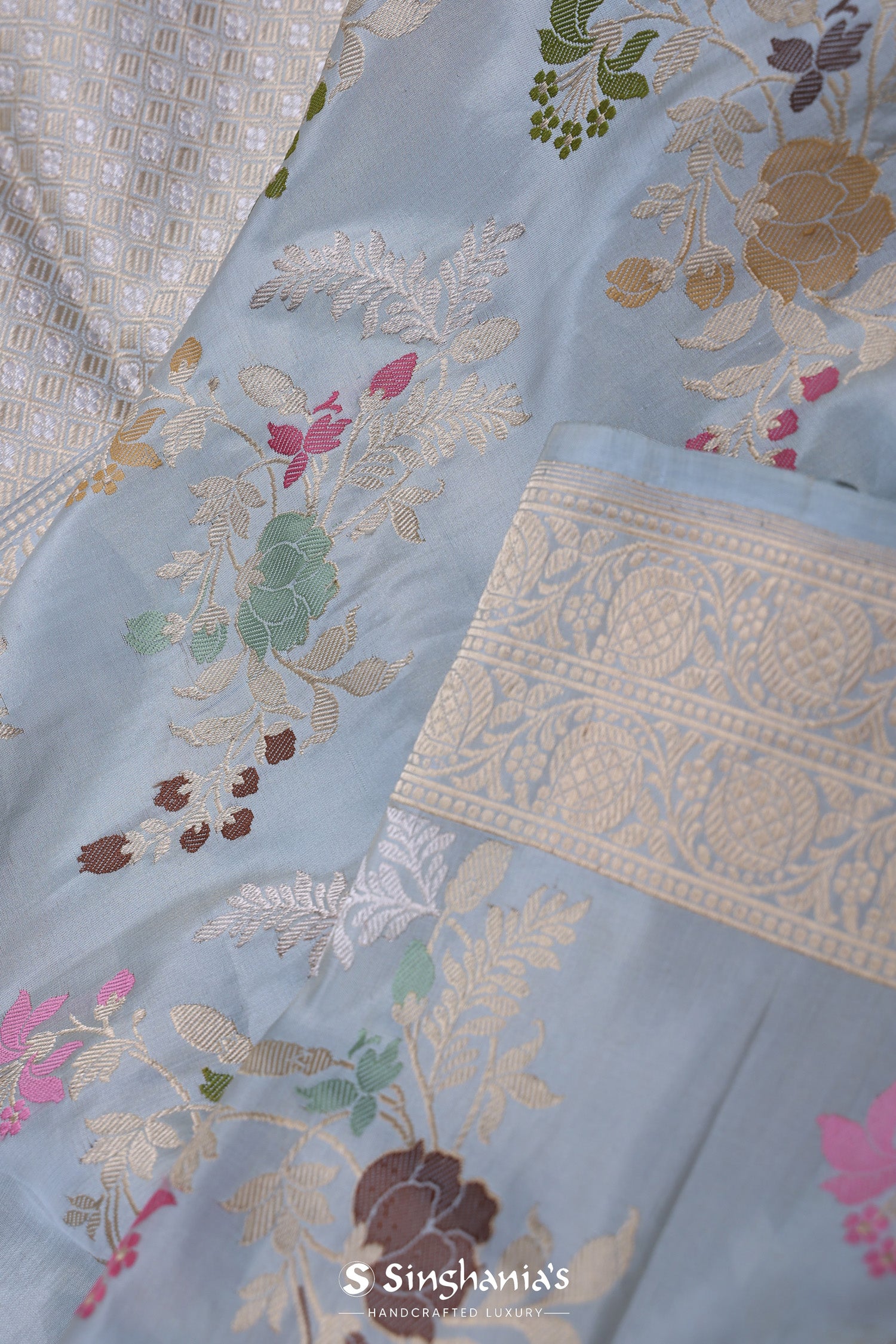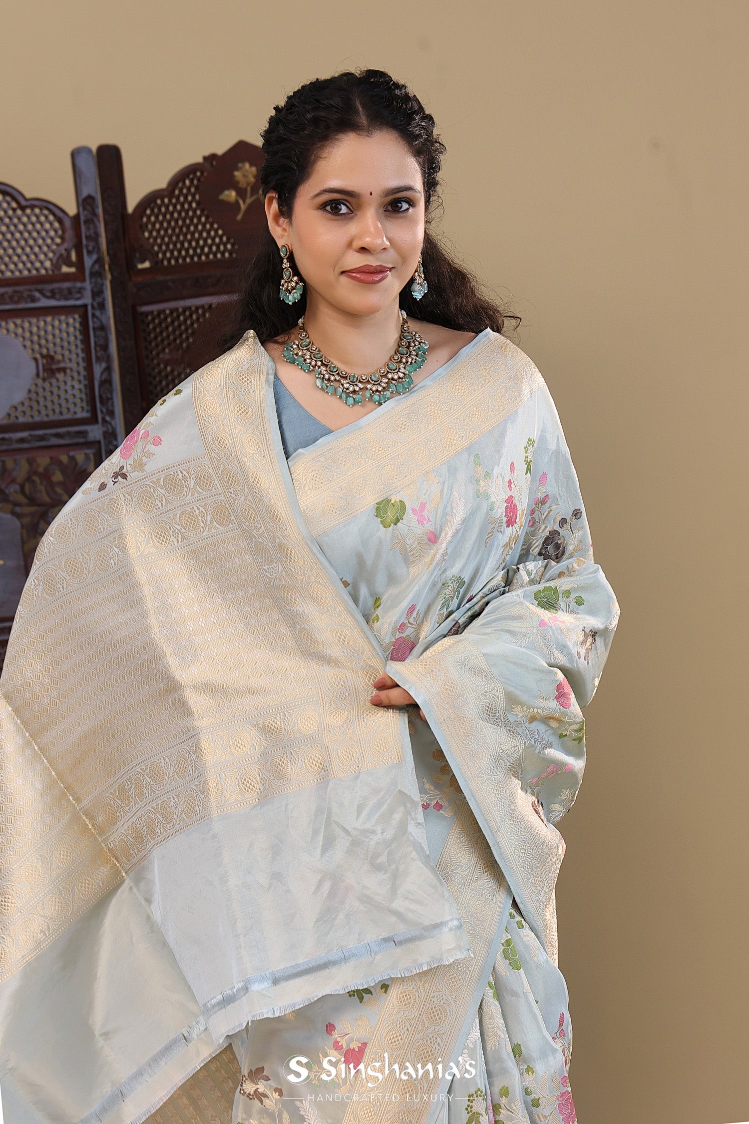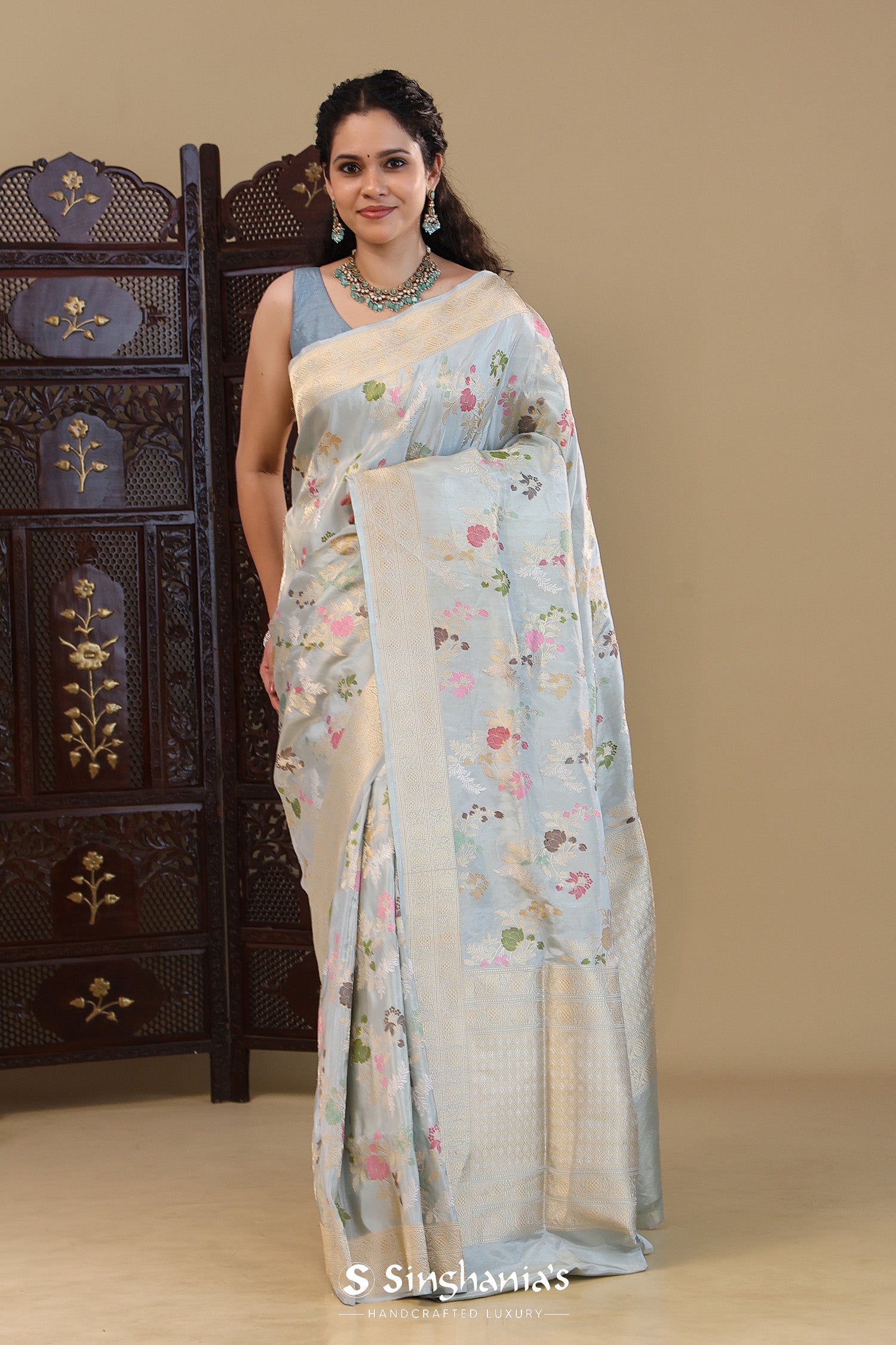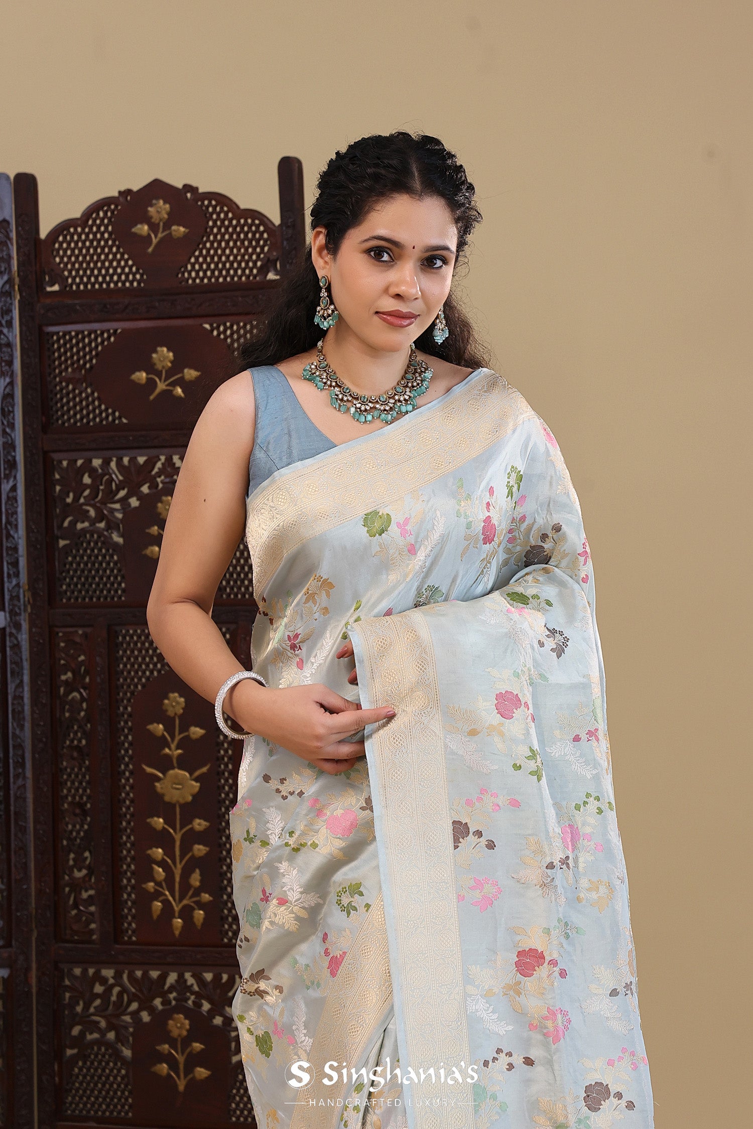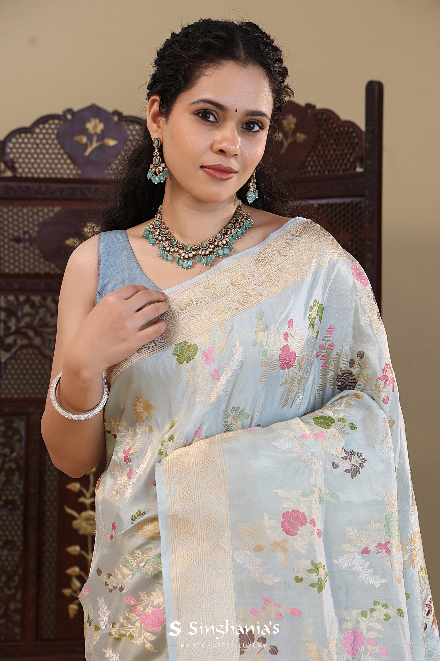 Sky Blue Banarasi Tissue Saree With Meenakari Work
