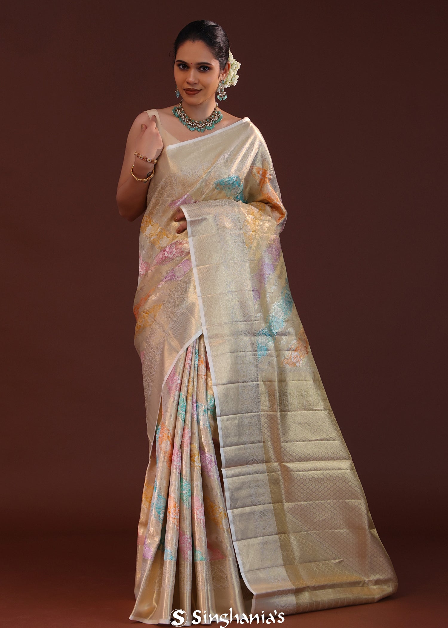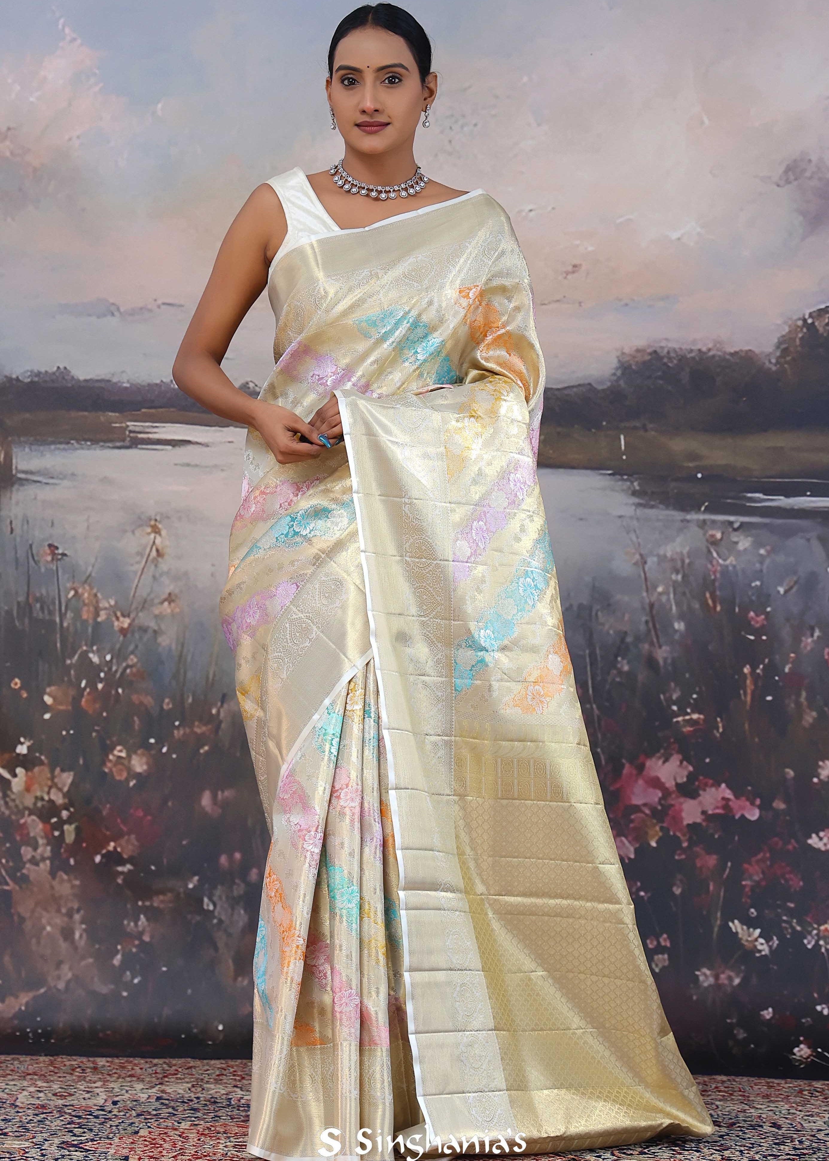Light Gold Floral Jaal Kanjivaram Silk Saree