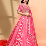 Hot Pink Silk Floral Printed Lehenga Set