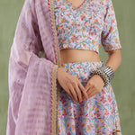 Floral Printed Soft Lilac Chanderi Lehenga Set