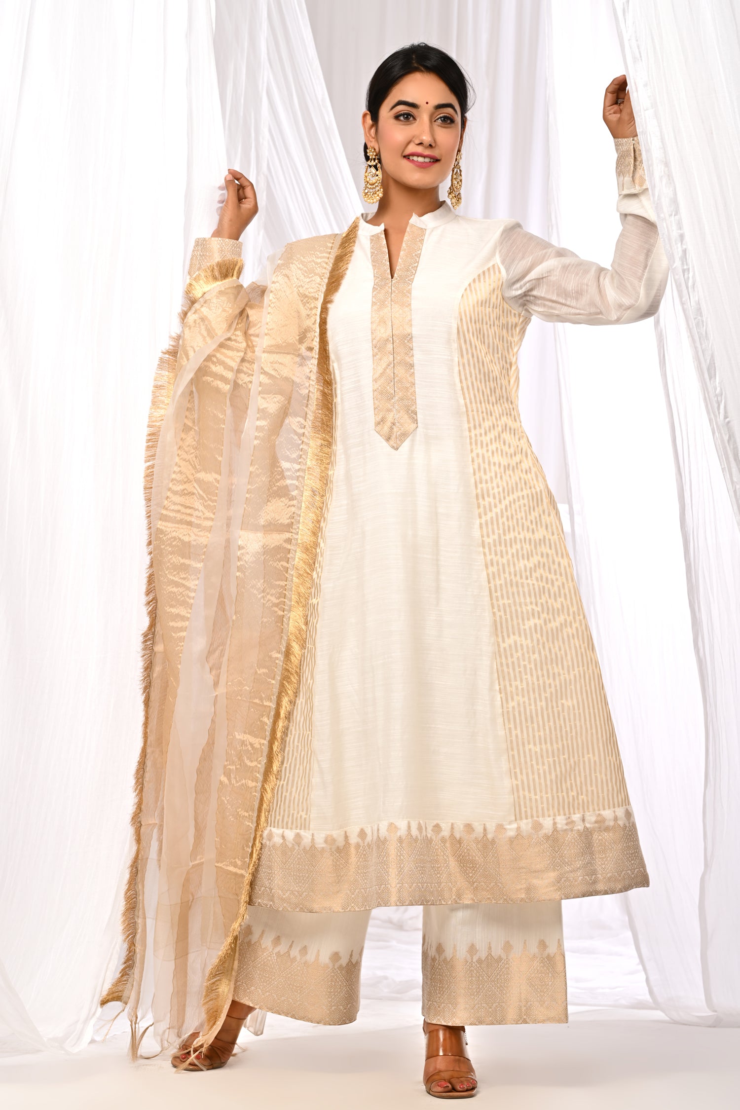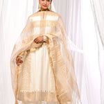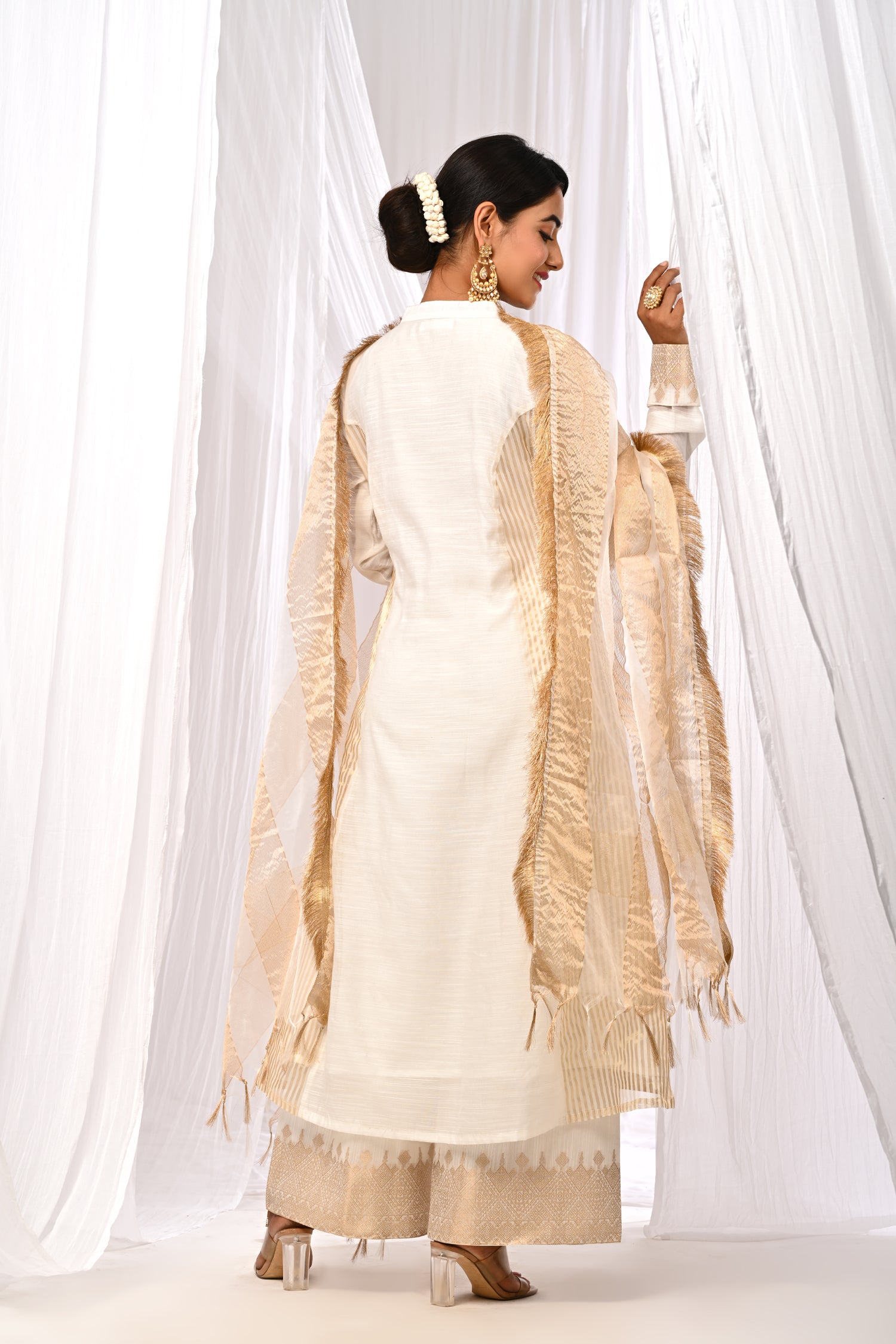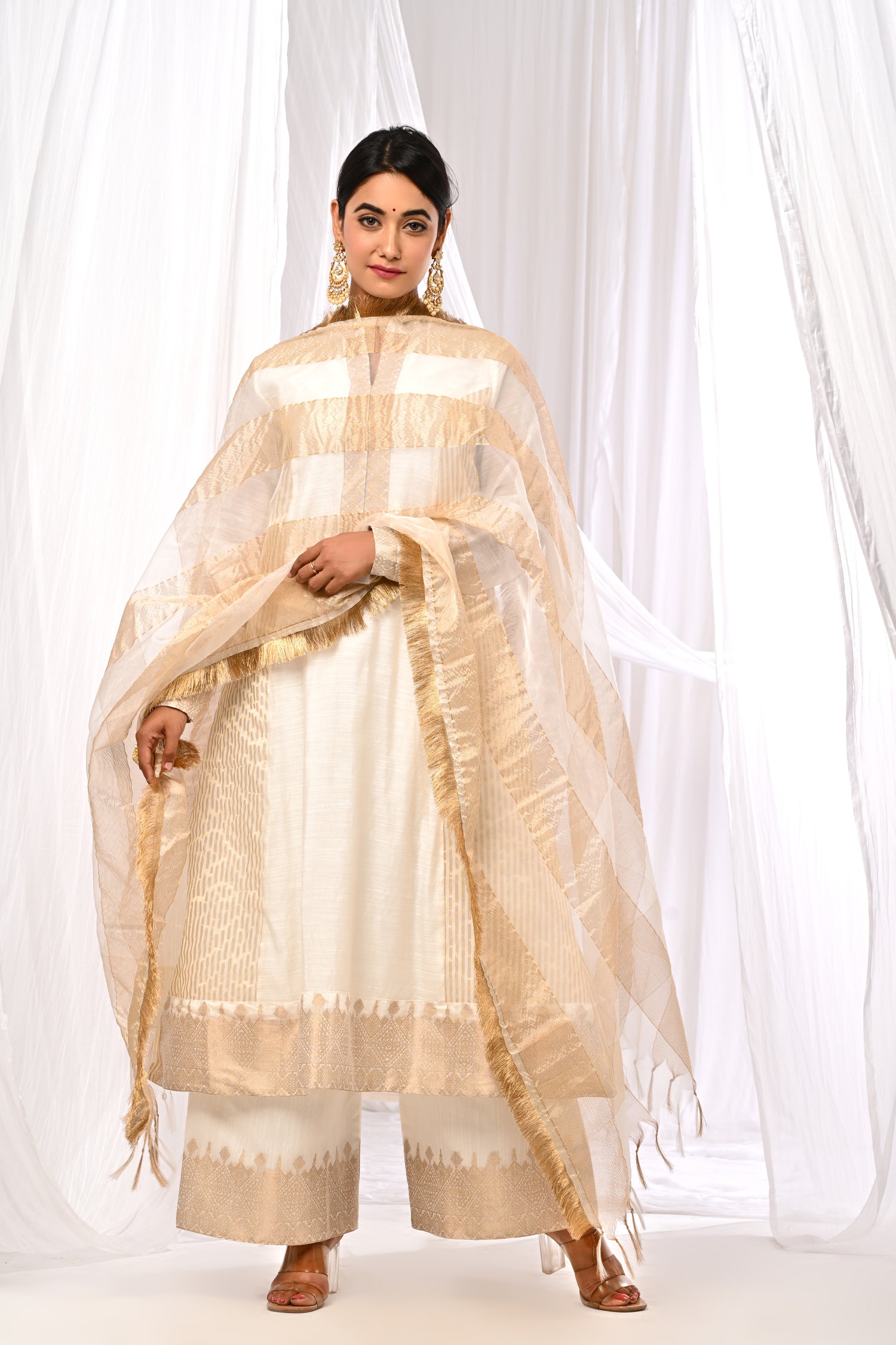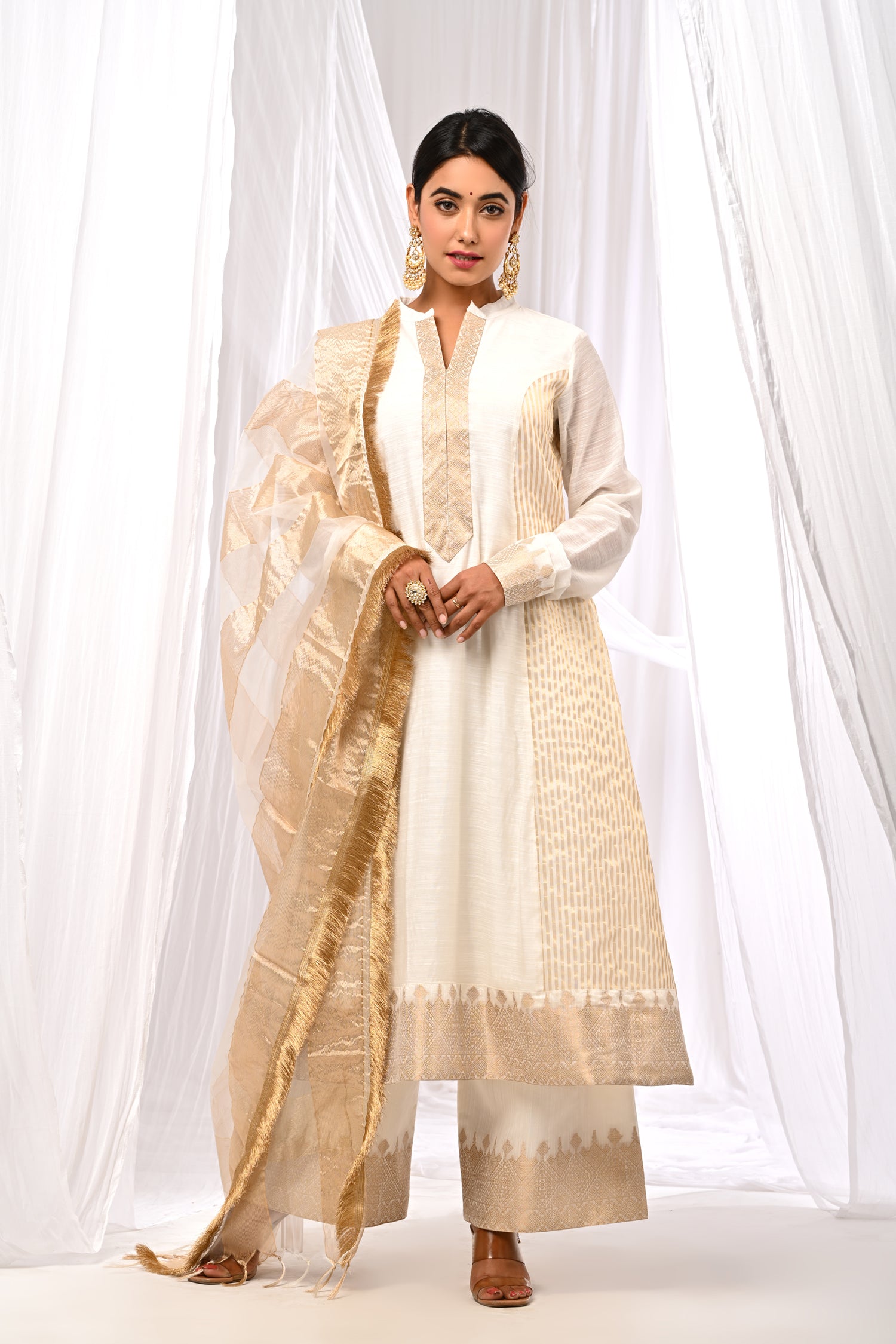 Off White And Gold Chanderi Kurta Set With Antique Zari Detailing