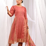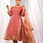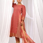 Peach Chanderi Kurta Set With Antique Zari Detailing