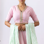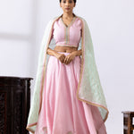 Pink Banarasi Chanderi Embroidered Lehenga