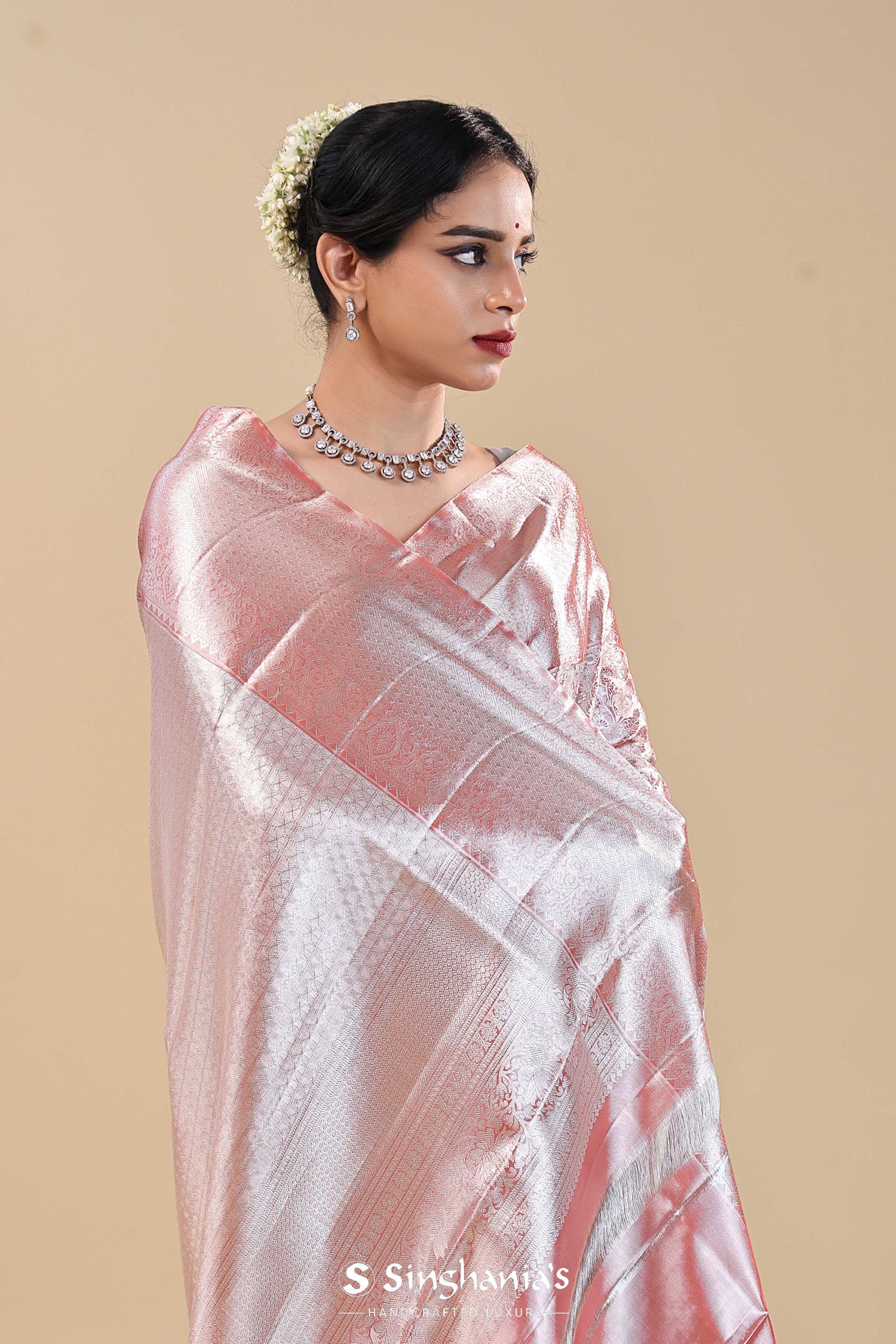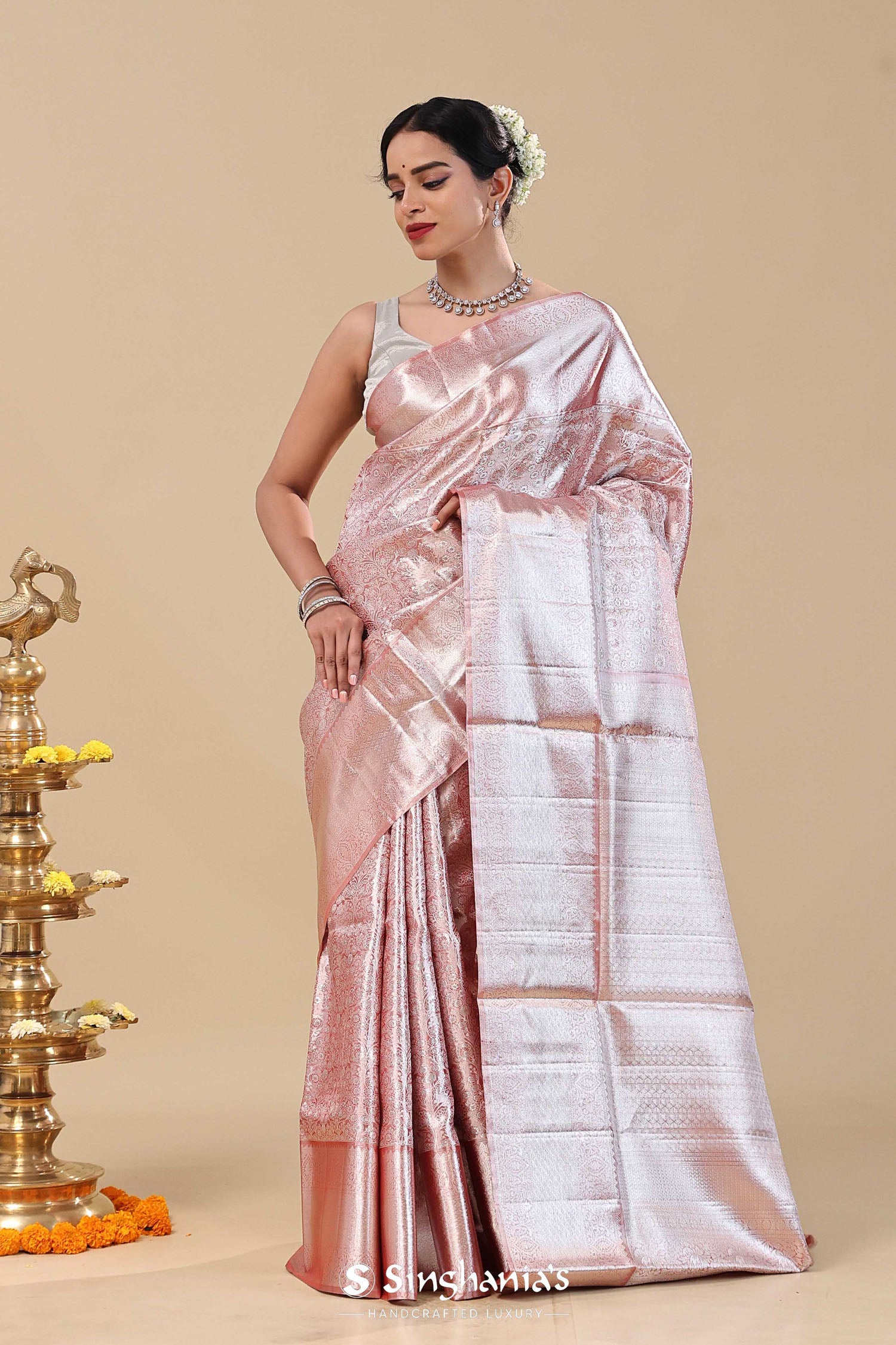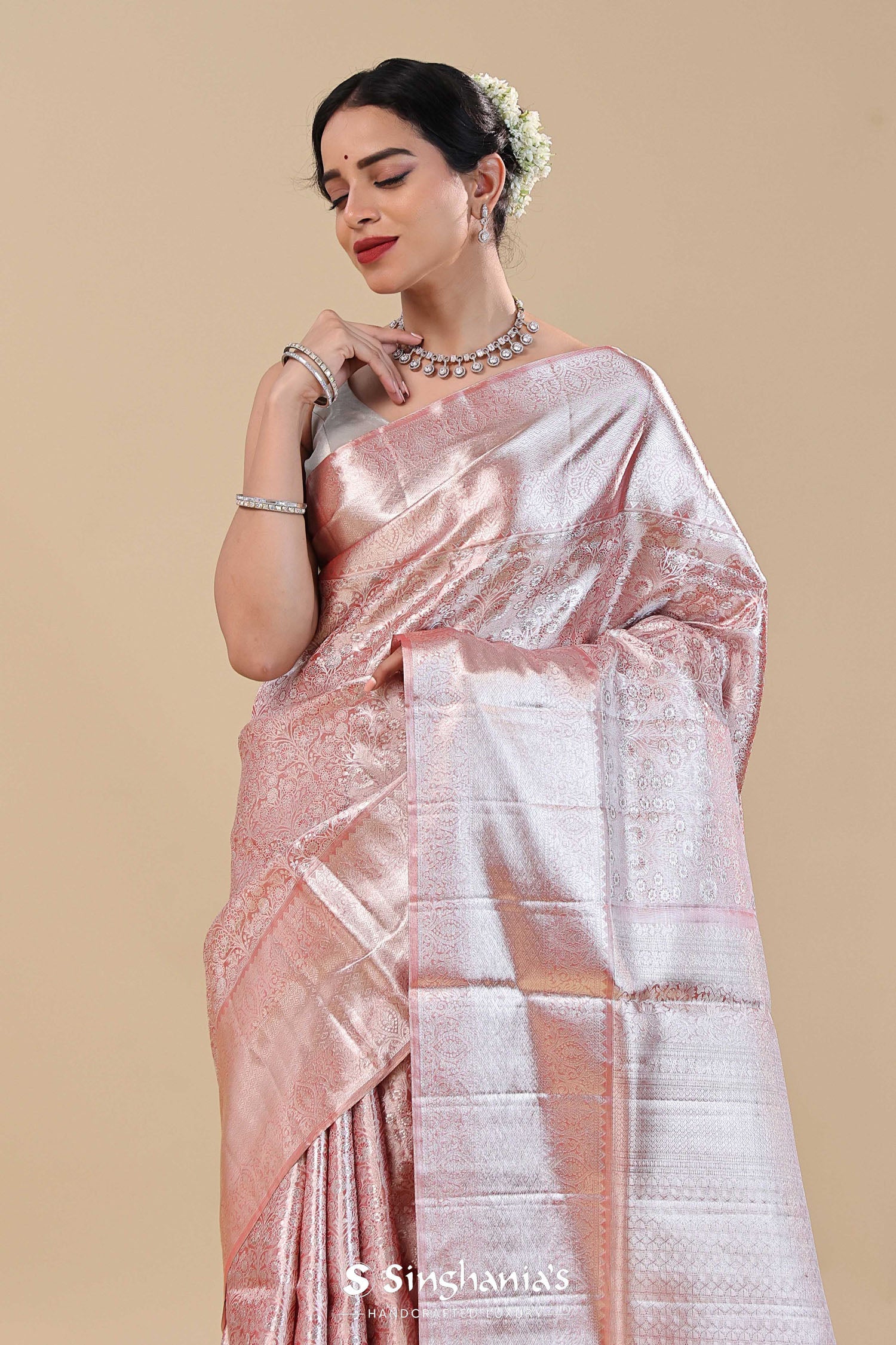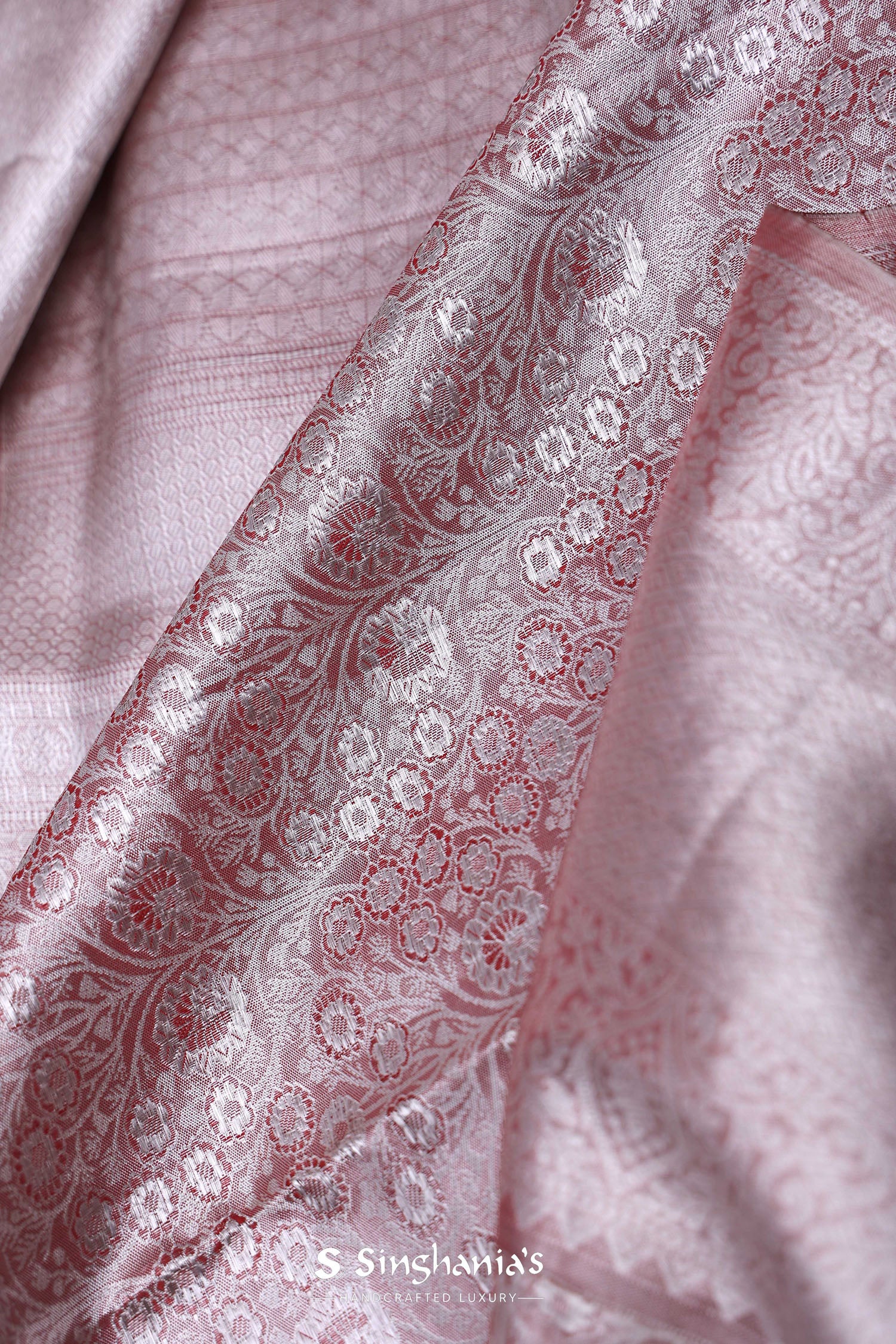Dusty Pink Kanjivaram Saree With Silver Zari