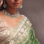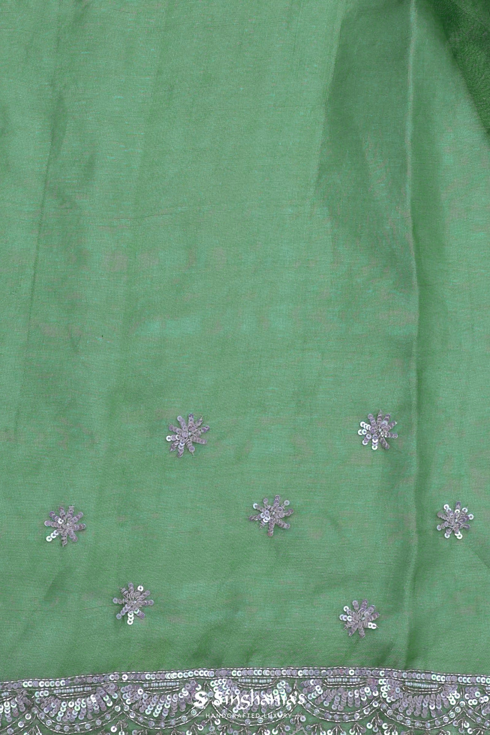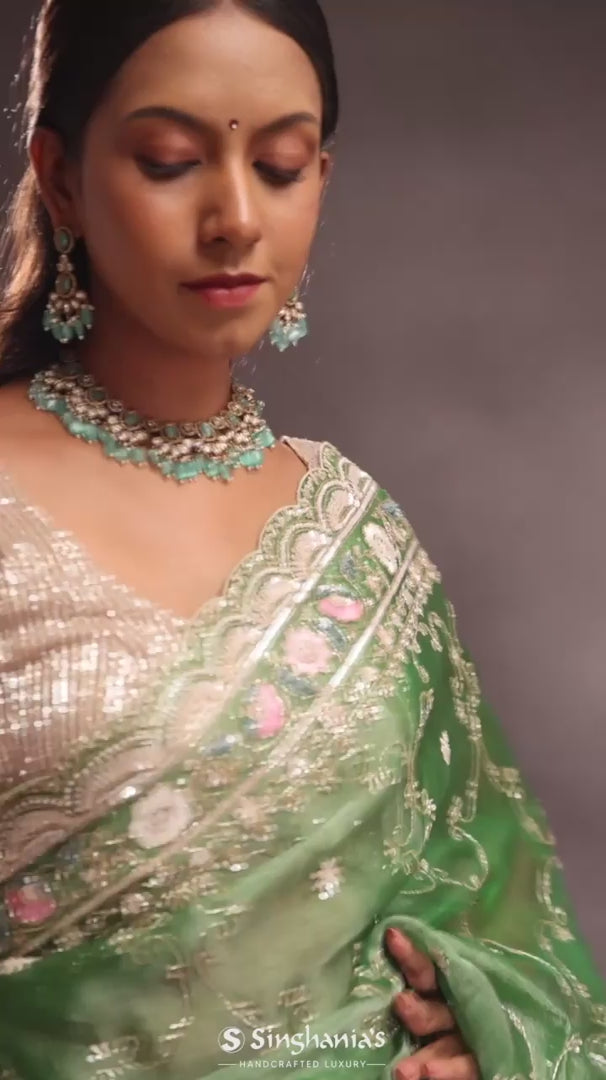 Basil Green Organza Embroidery Saree With Sequins And Pearls Work