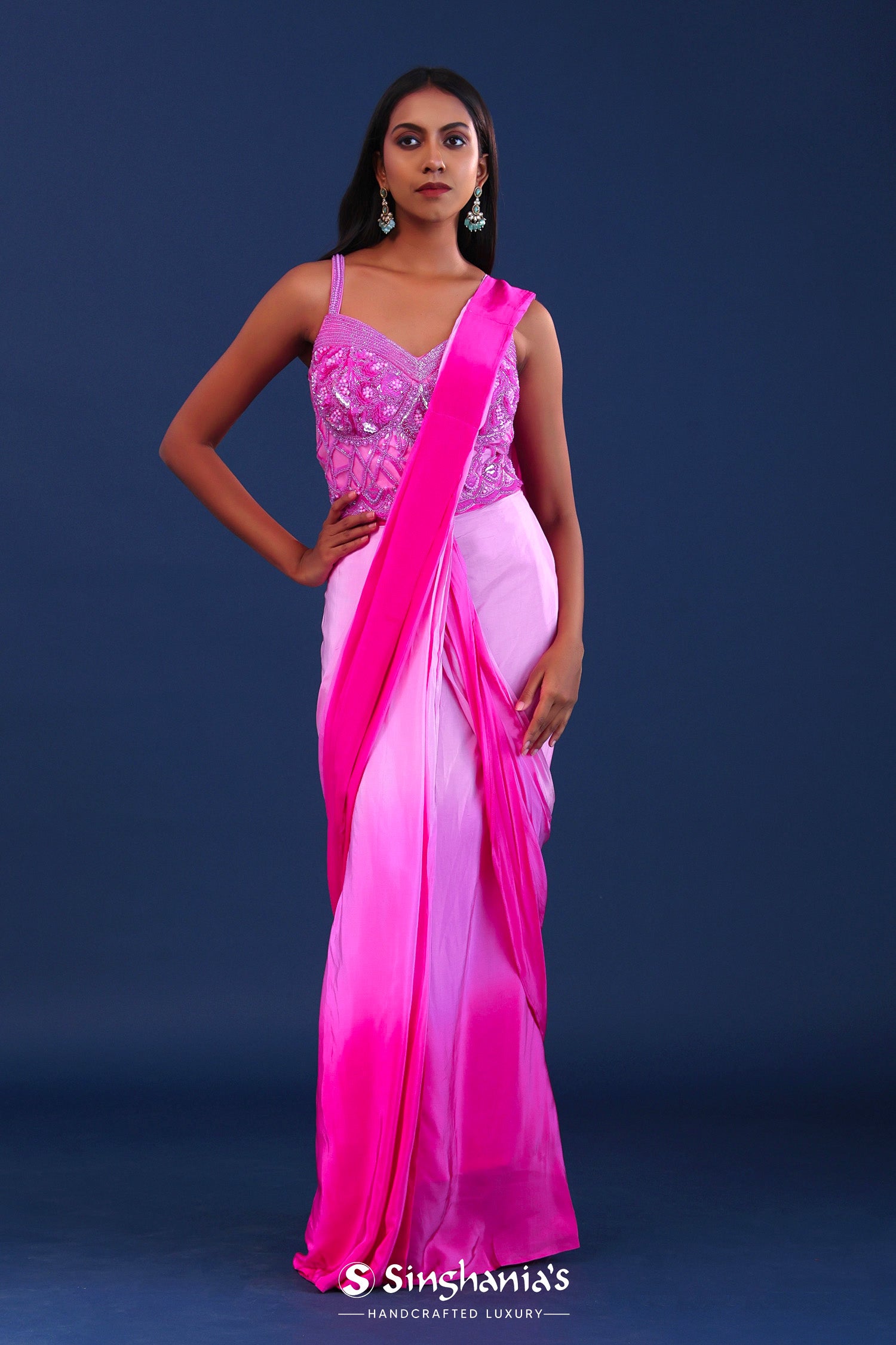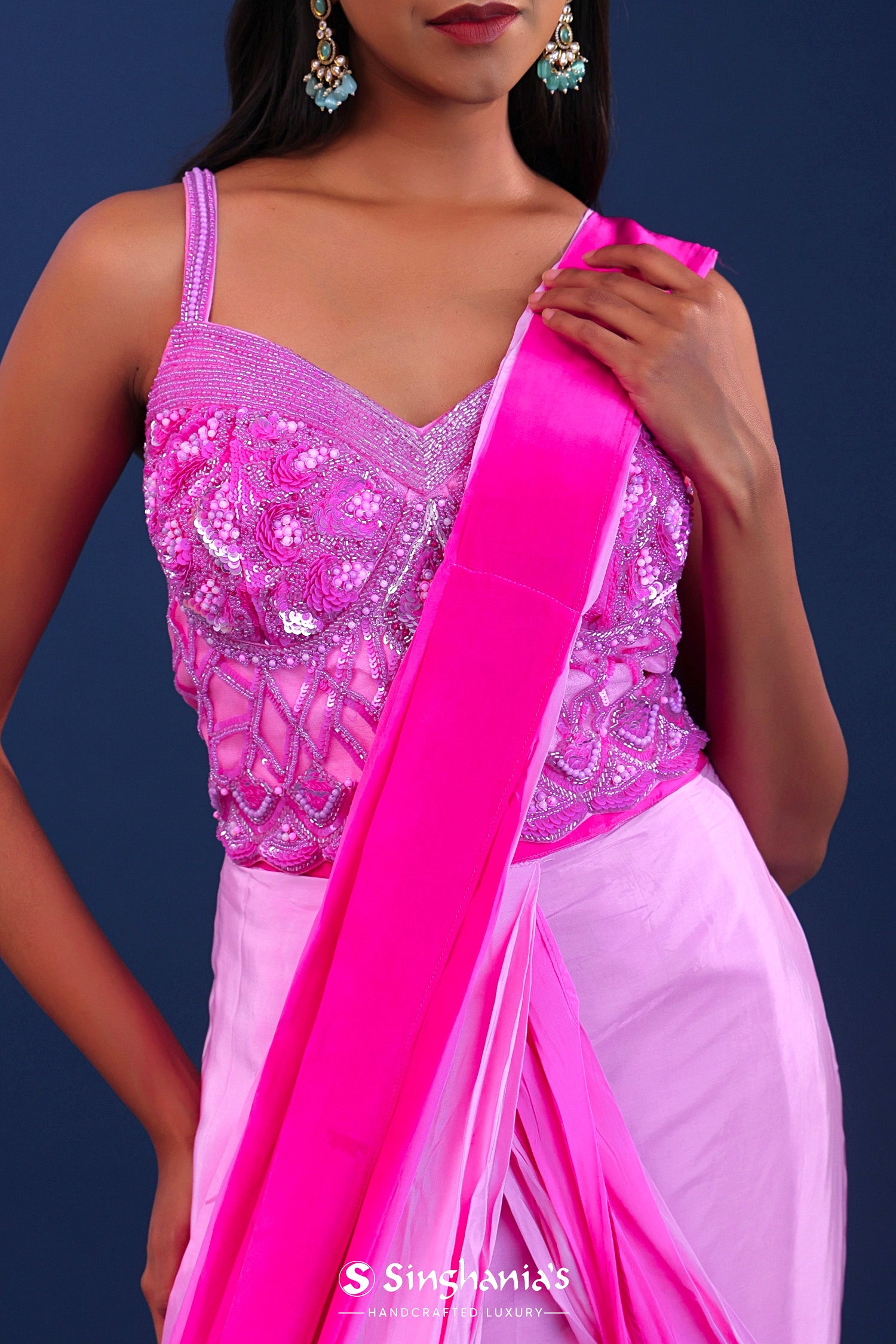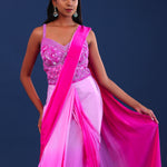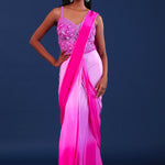 The ready to wear ombre pink crepe silk embroidered drape saree with pearl and sequin work in it for a pretty charming look with grace.