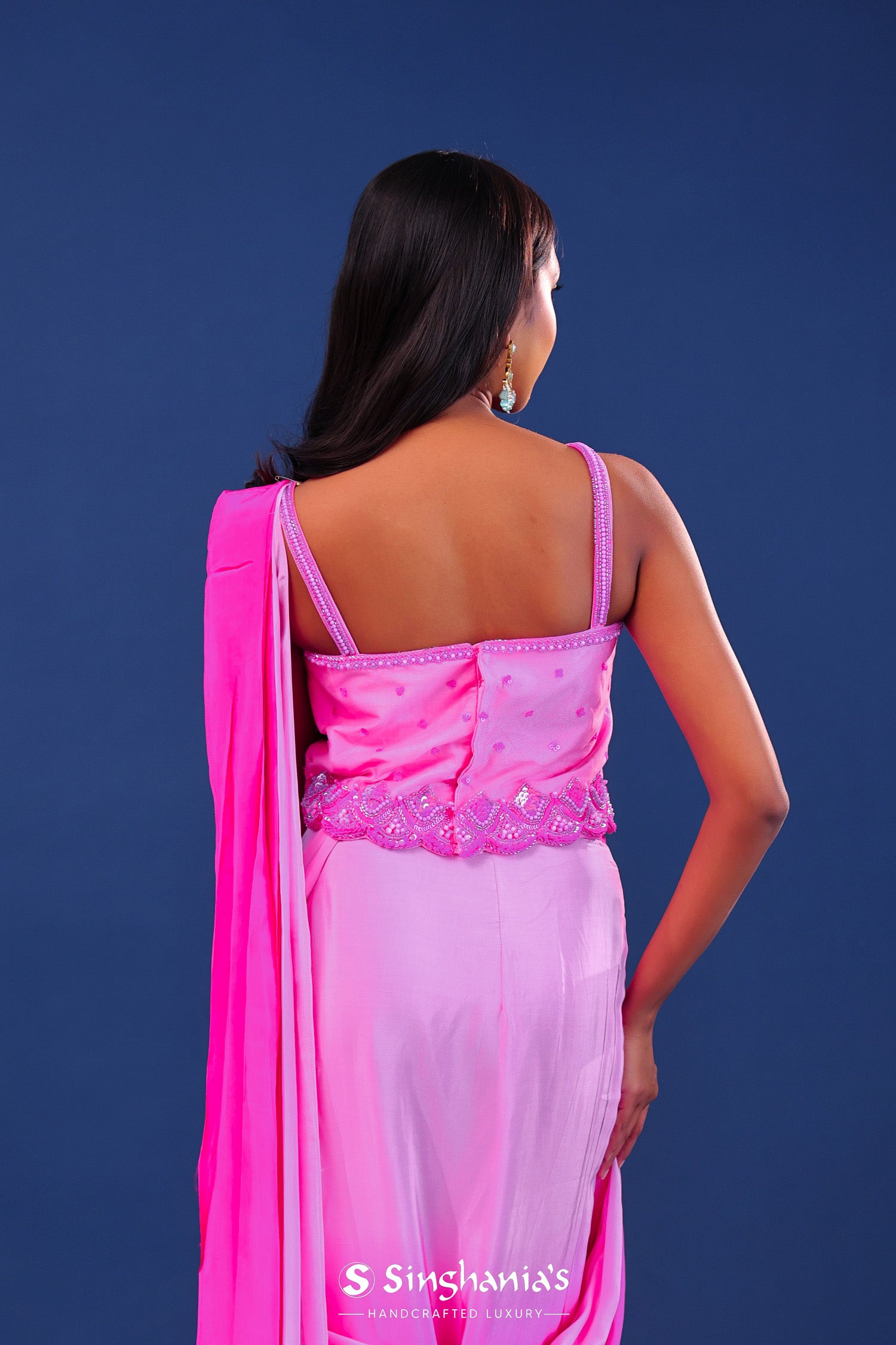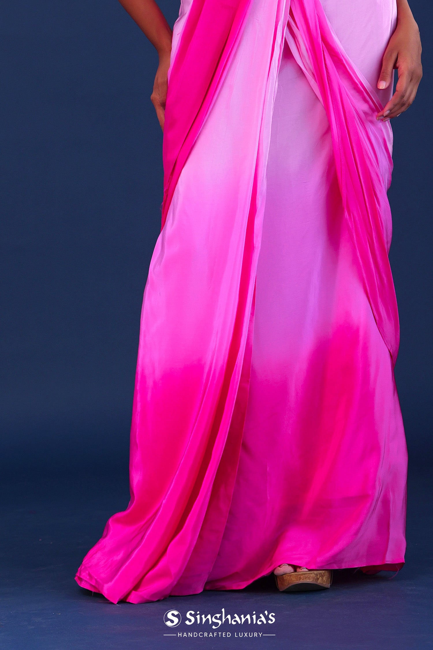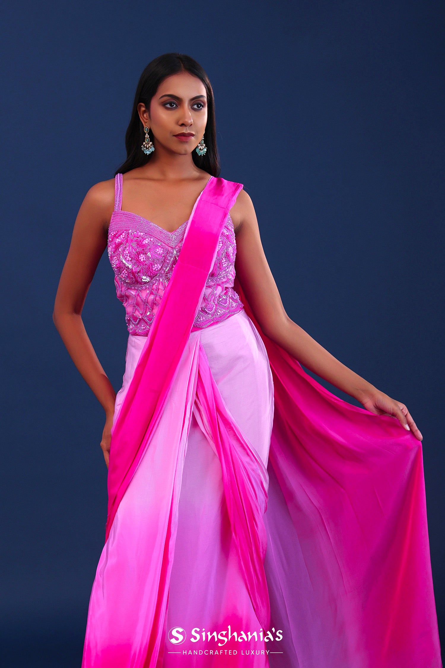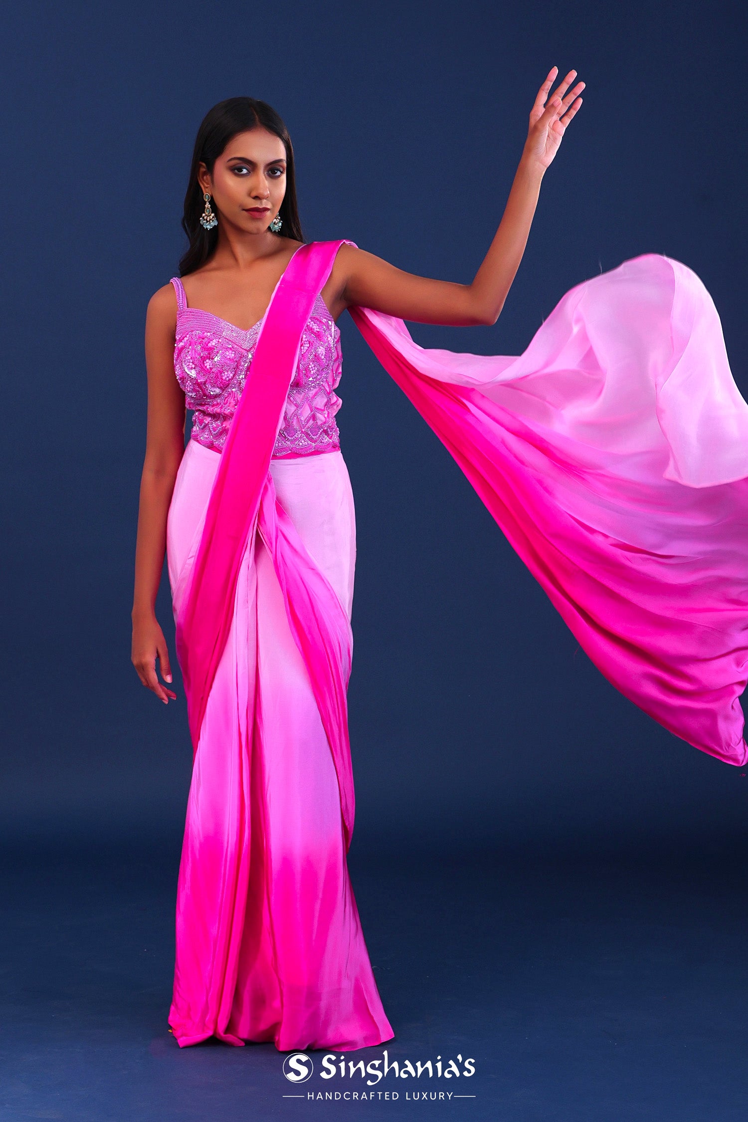 Ombre Pink Crepe Silk Embroidered Drape Saree