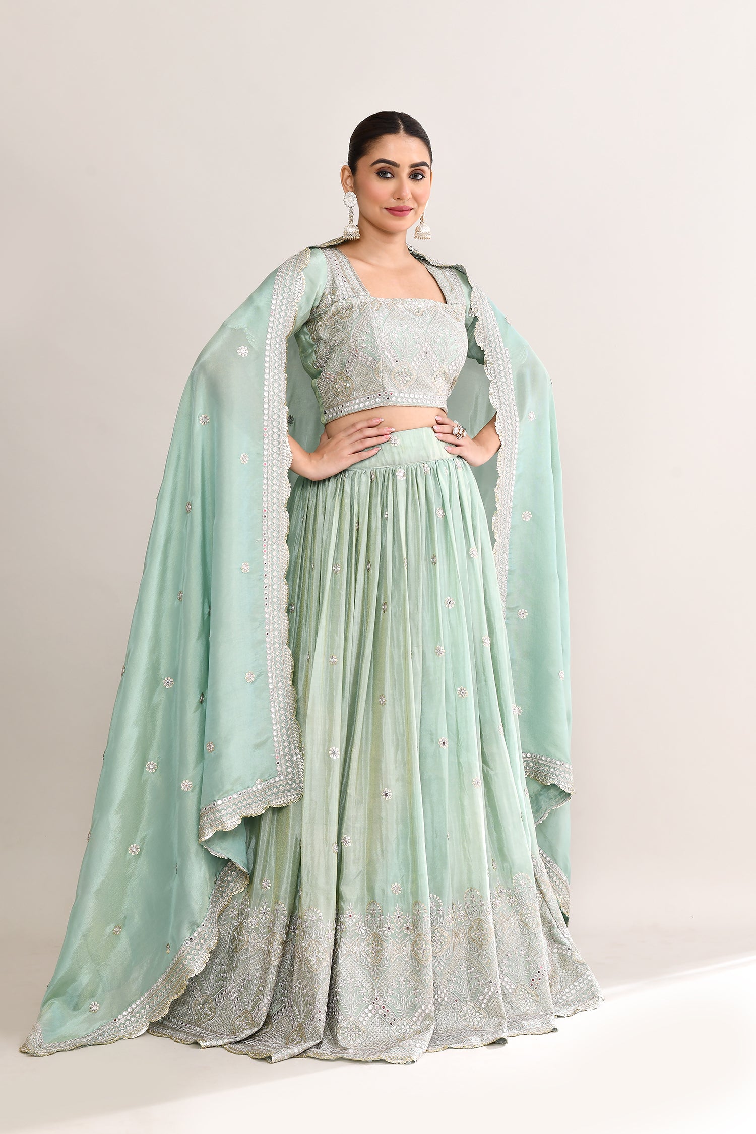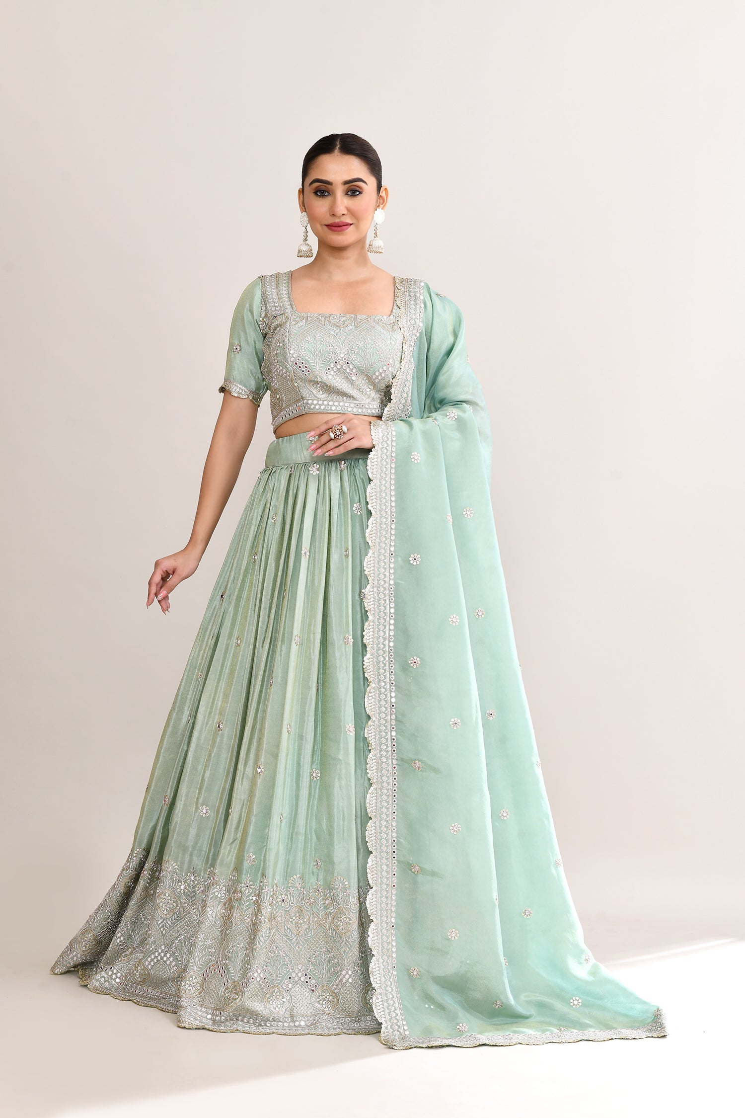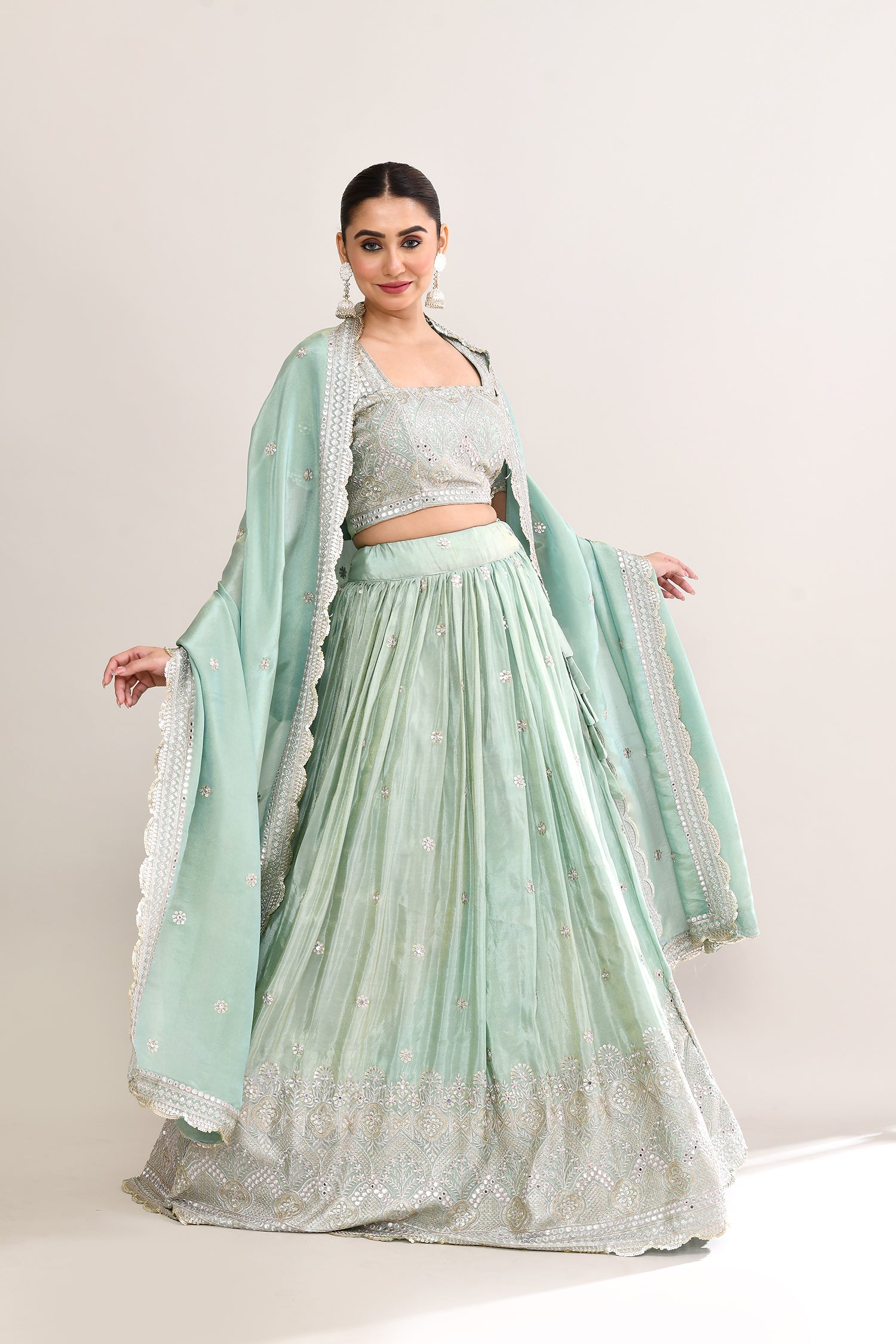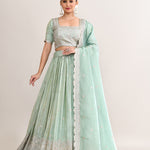 Pastel Soft Green Shimmer Embroidered Lehenga Set