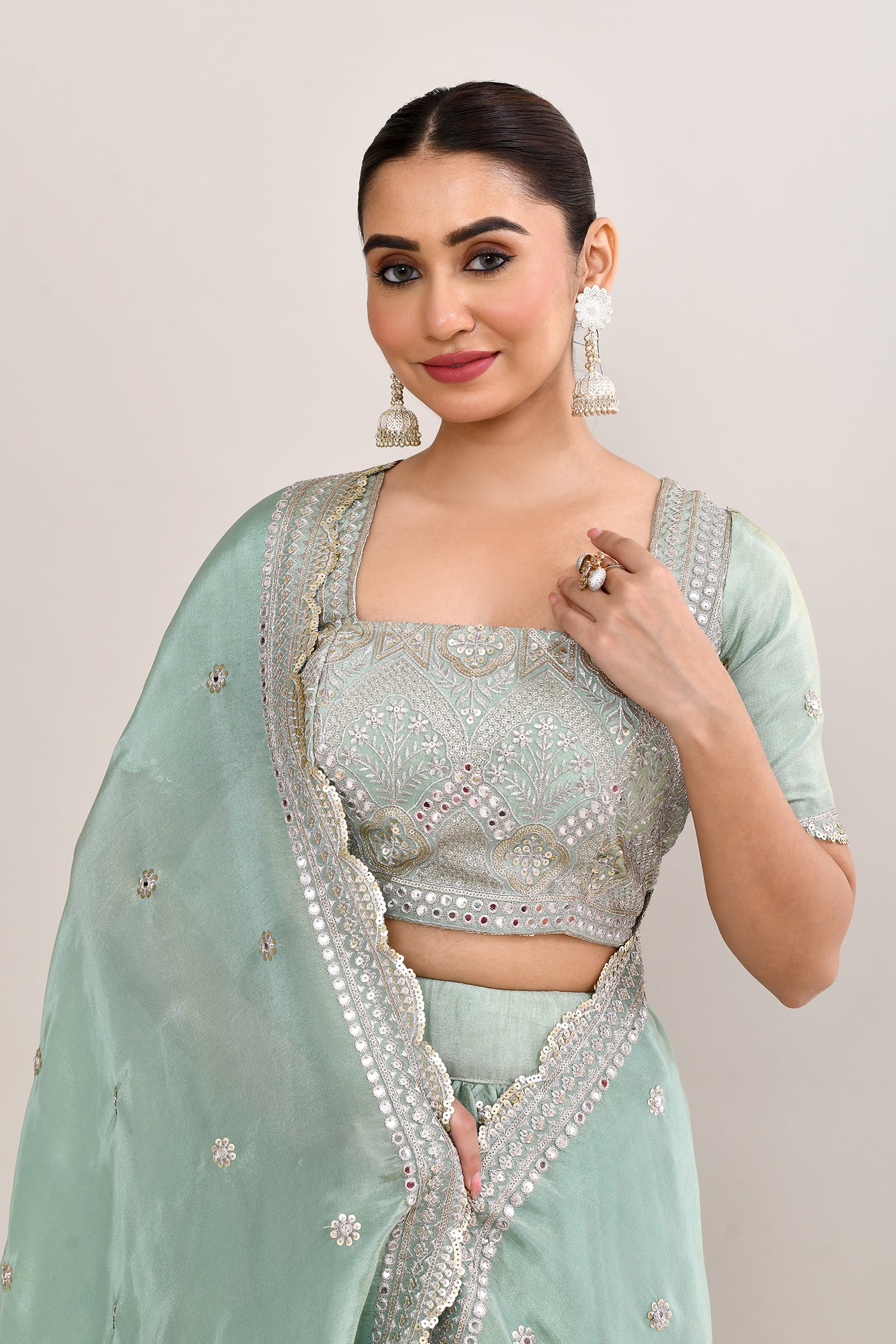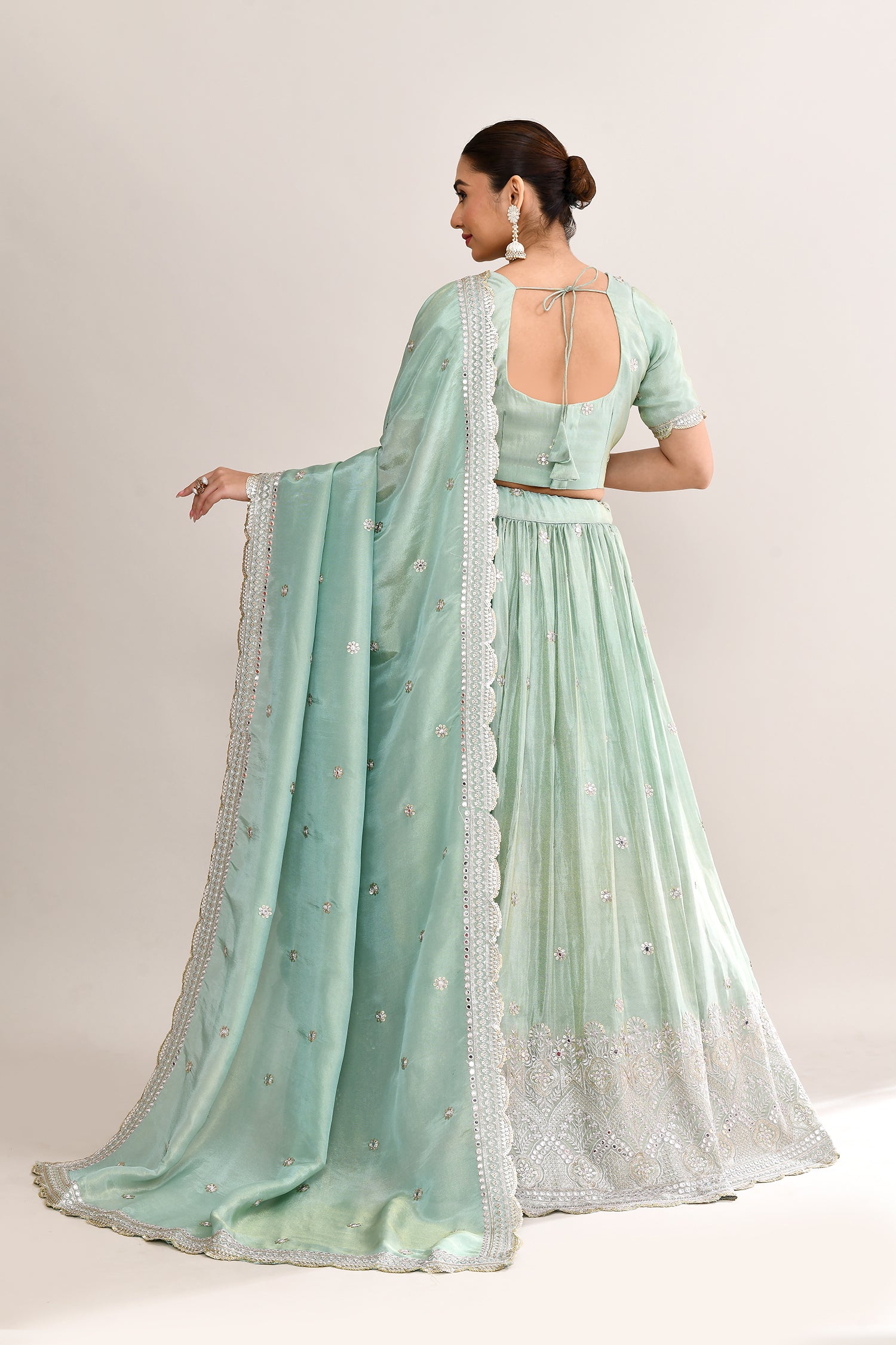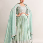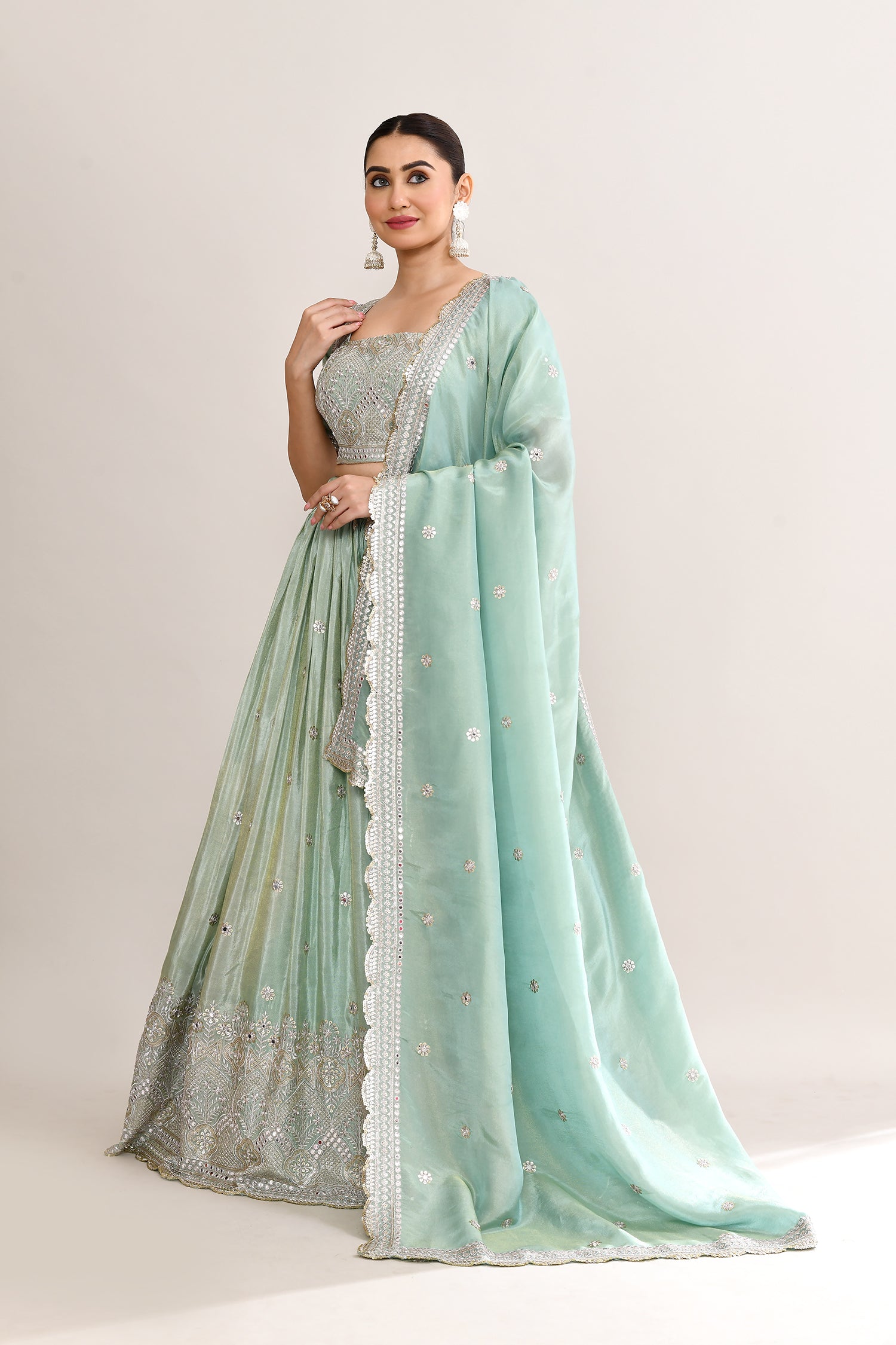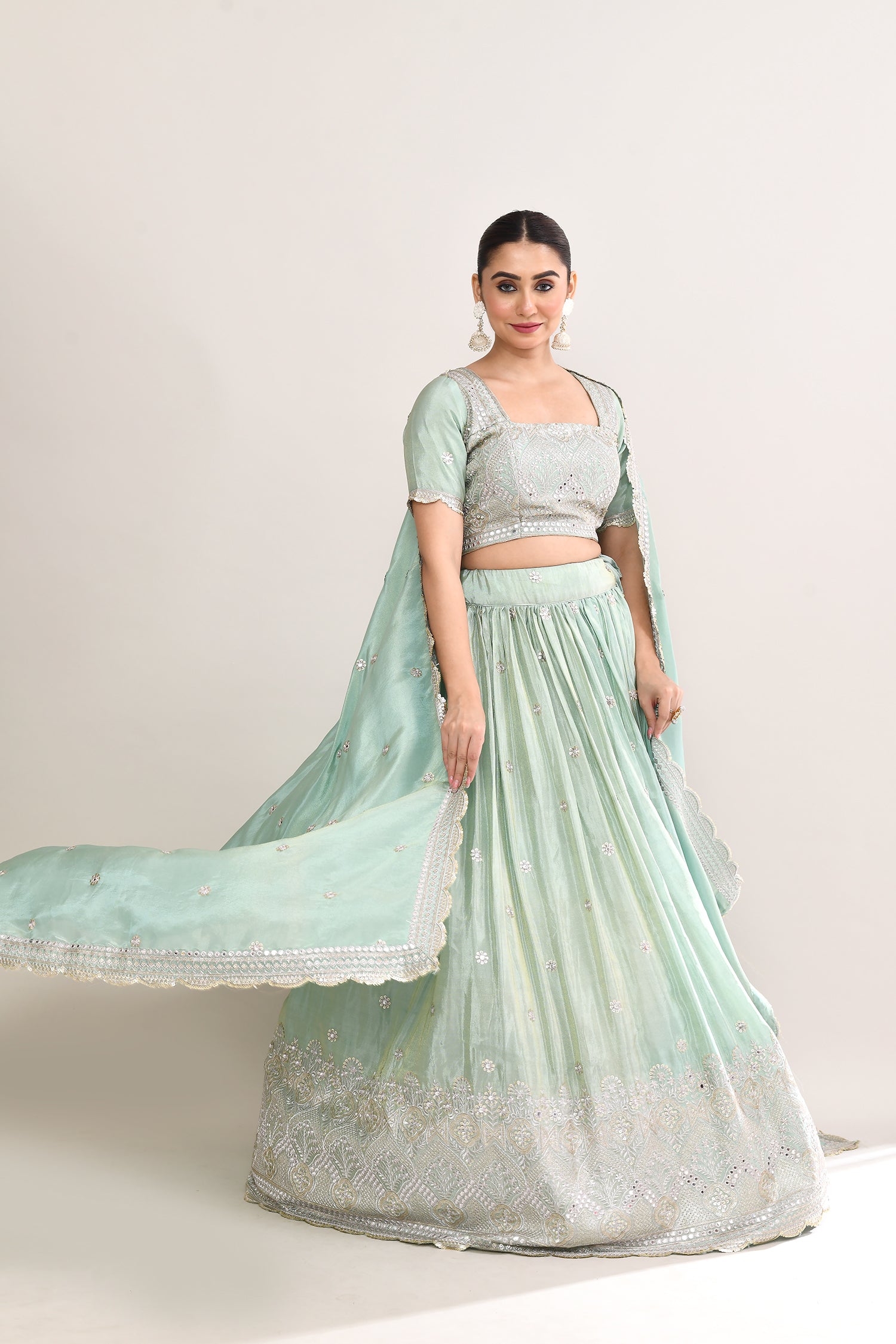 Pastel Soft Green Shimmer Embroidered Lehenga Set