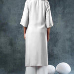 Off-White Rayon Kurta Set With Leaf Embroidery