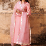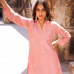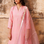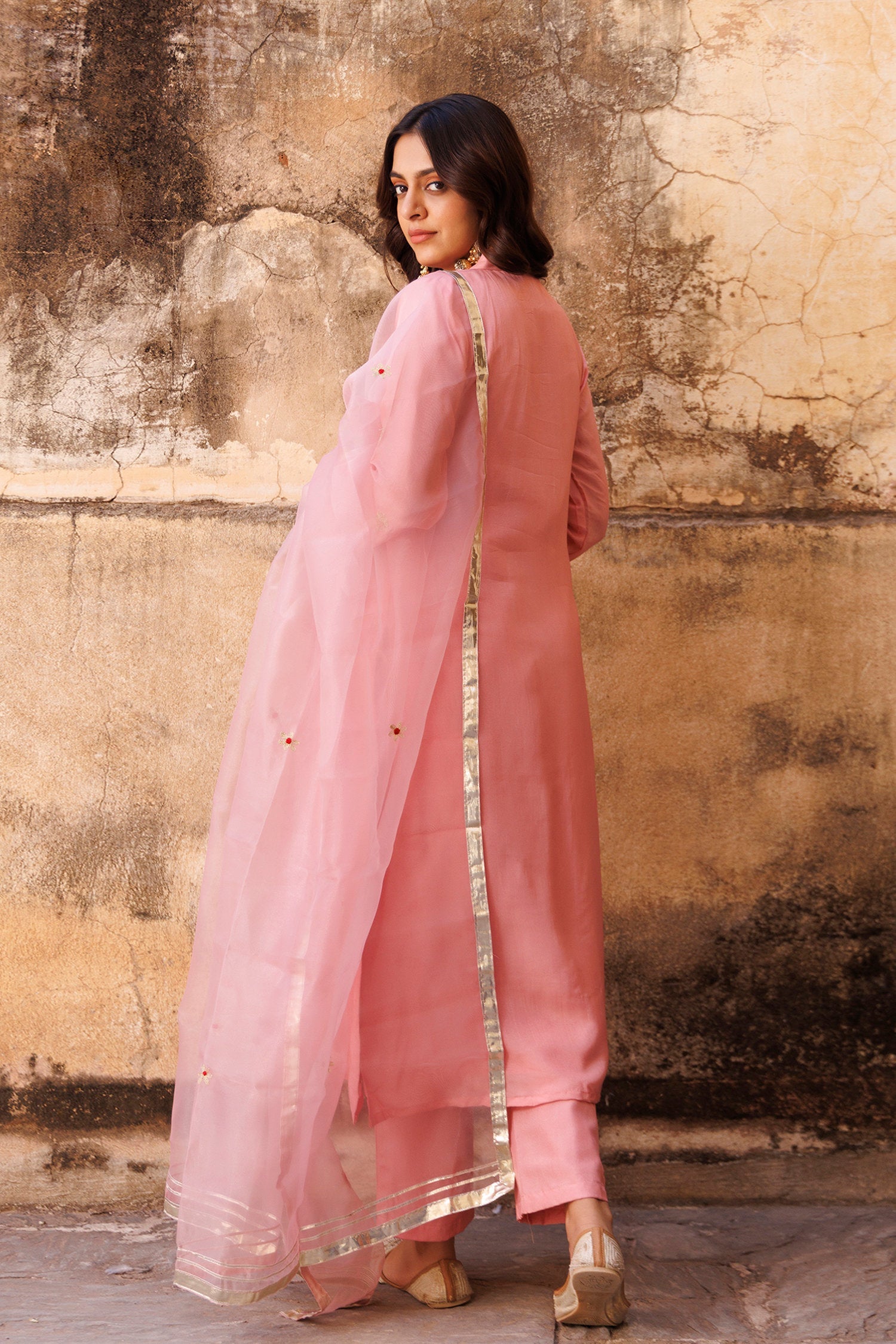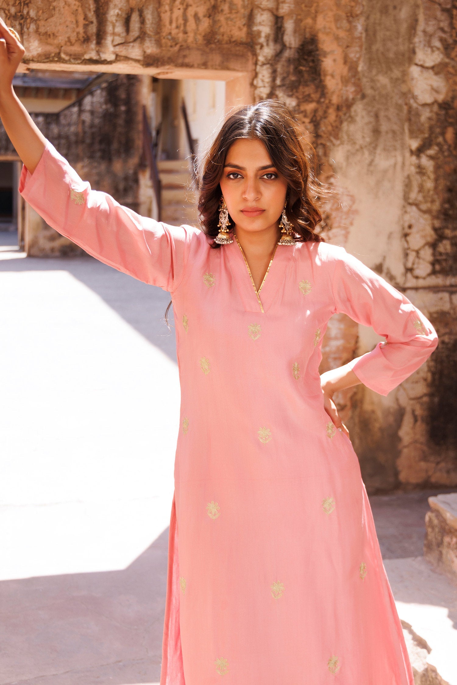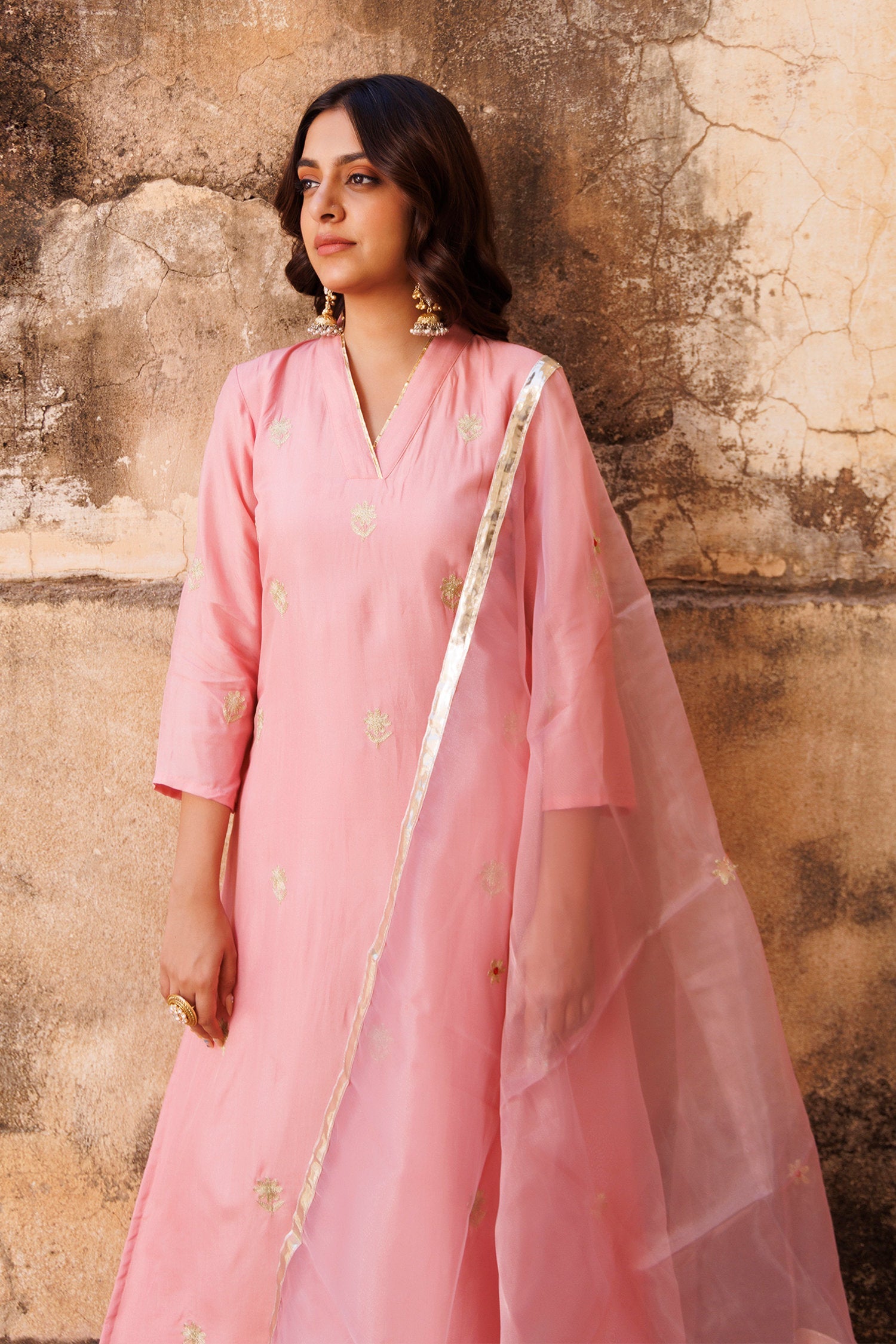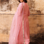Pastel Pink Uppada Silk Kurta Set With Aari Embroidery