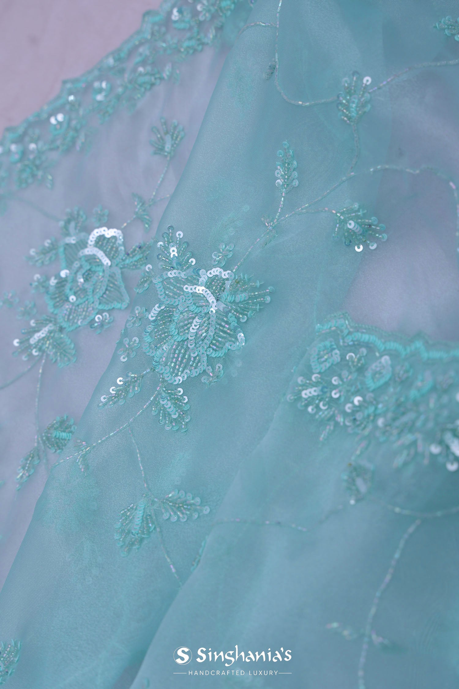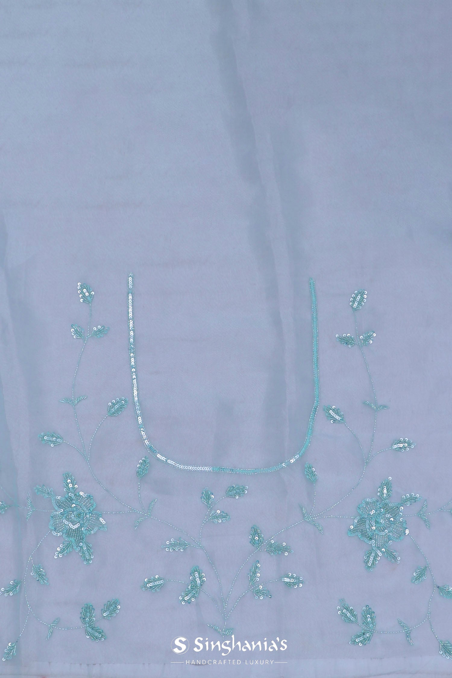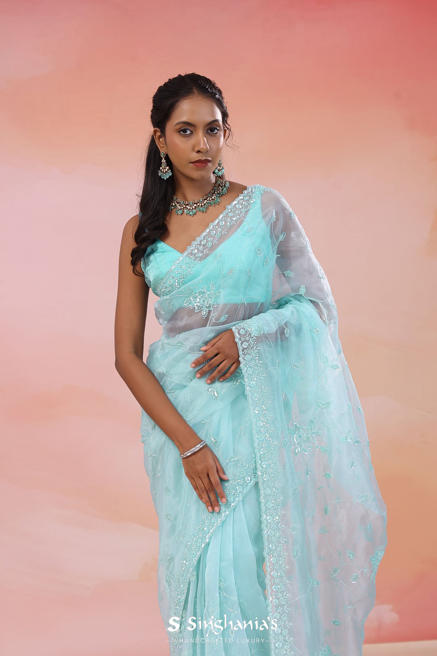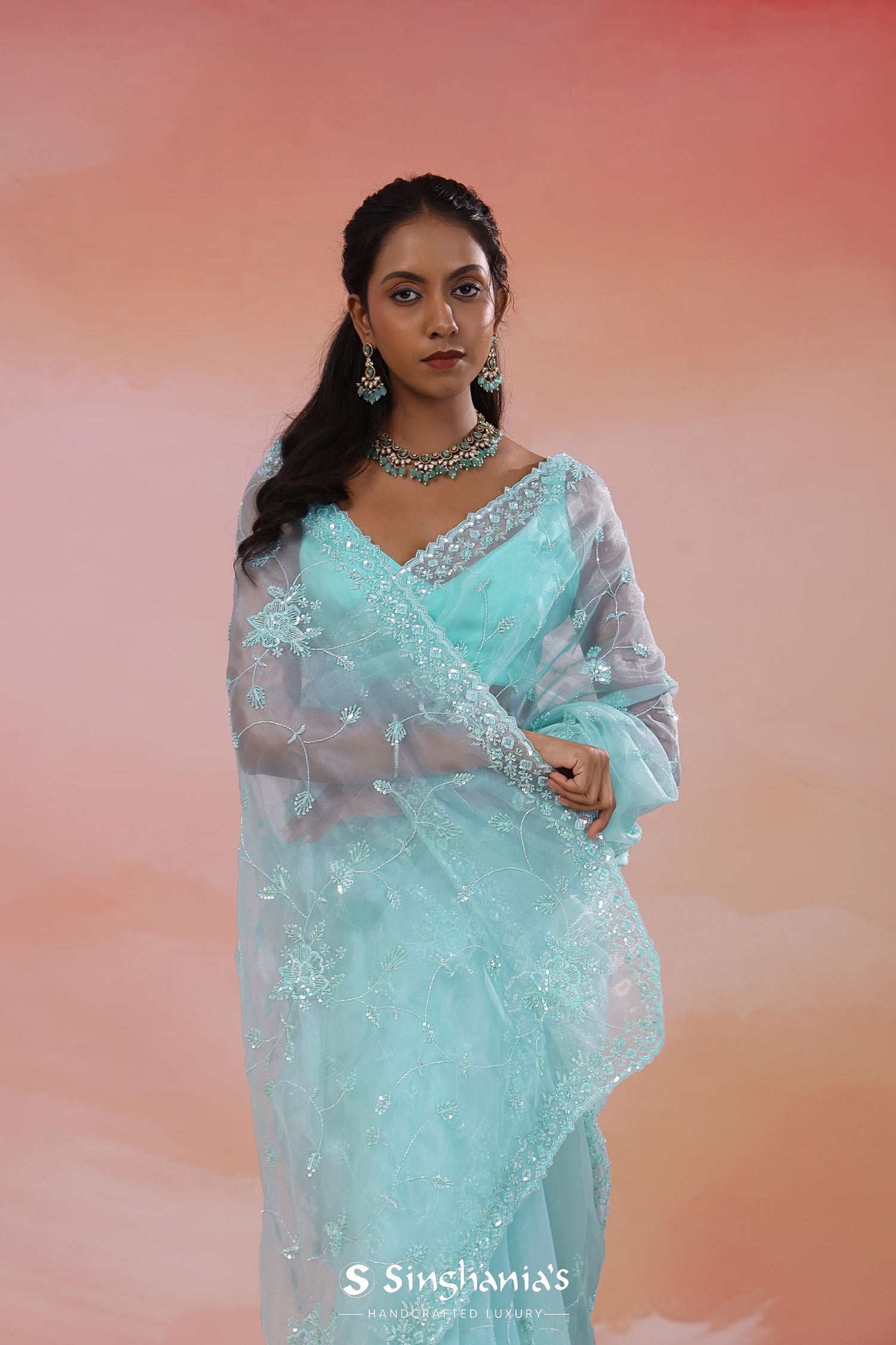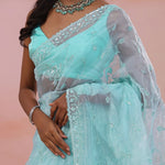 Moonstone Blue Organza Tissue Saree With Embroidery Work