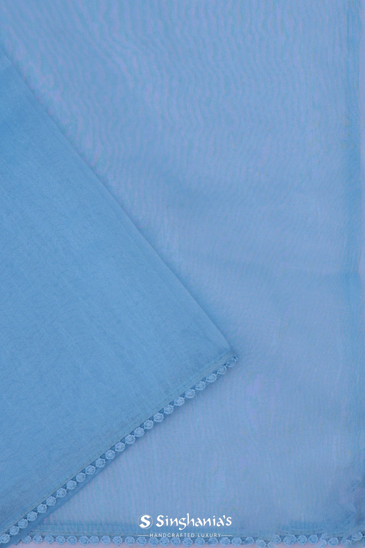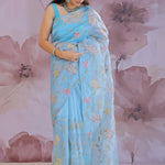 Dark Pastel Blue Organza Tissue Saree With Floral Embroidery