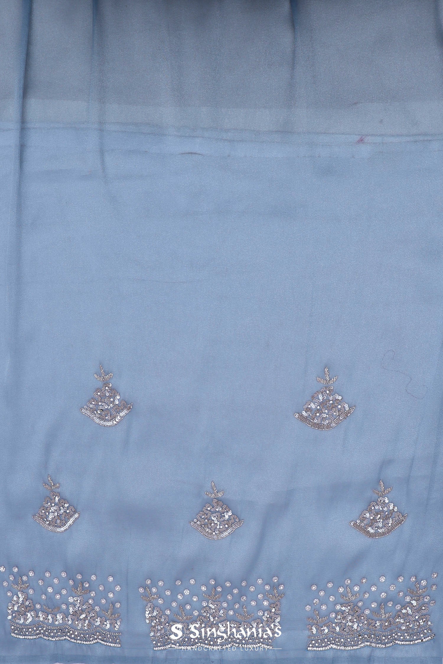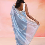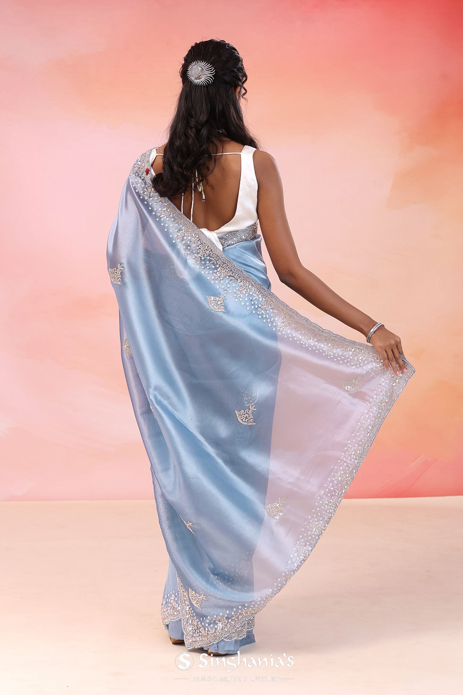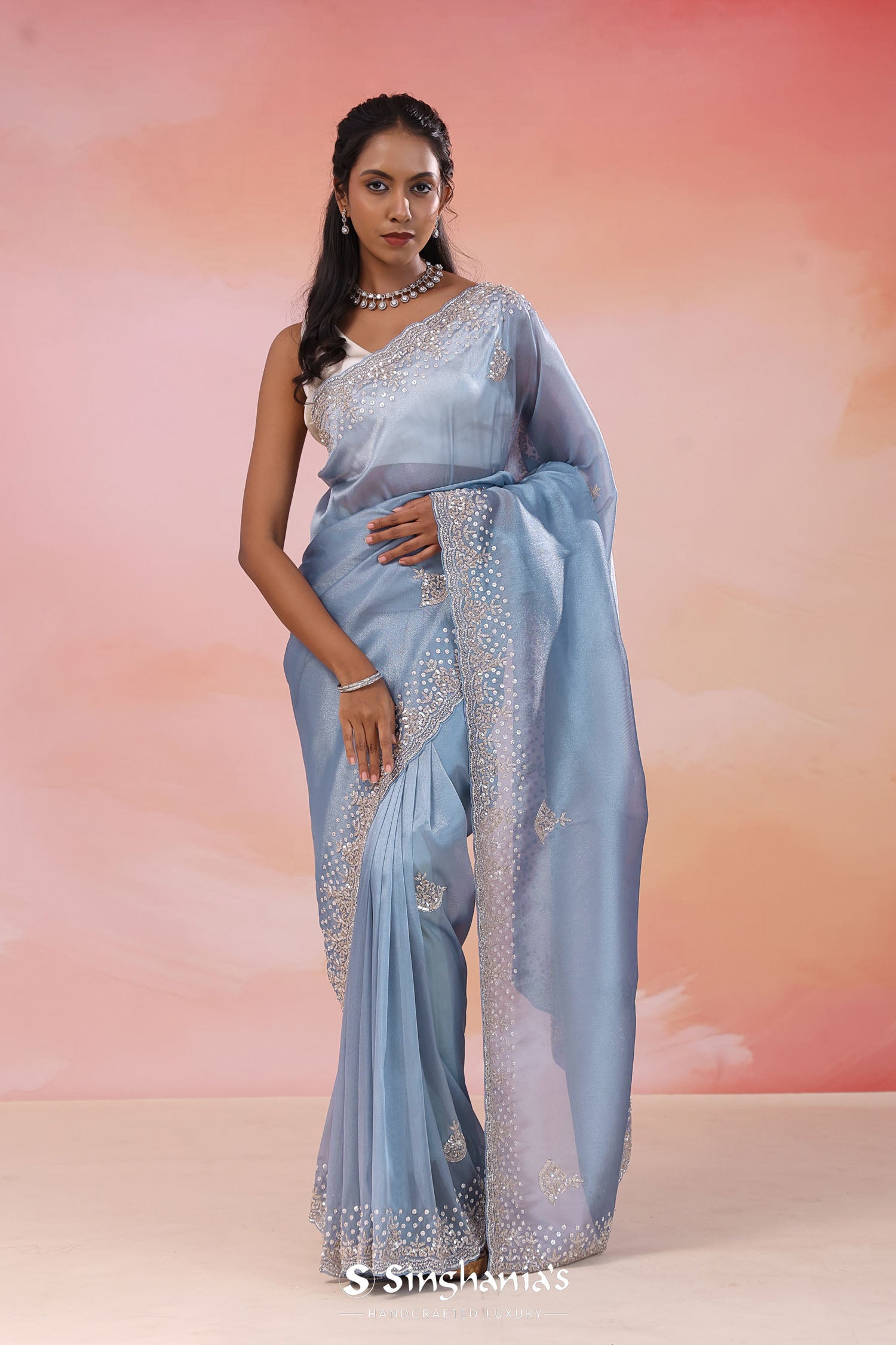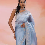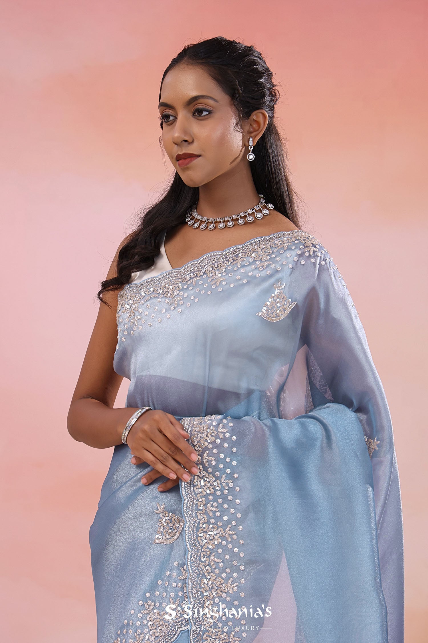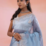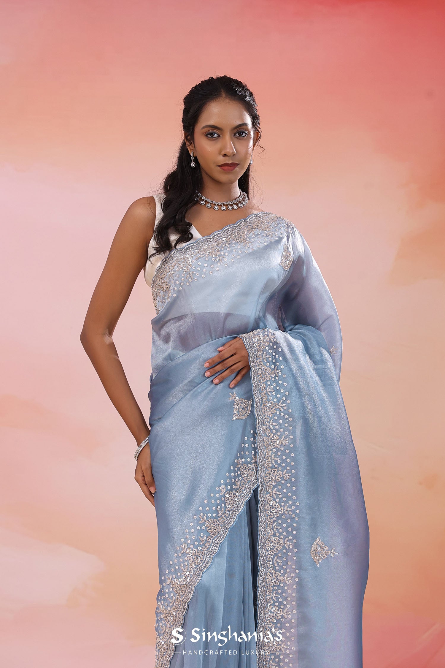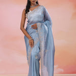 Dark Pastel Blue Organza Tissue Saree With Scallop Border