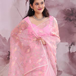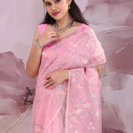 Flamingo Pink Organza Saree With Embroidery Work