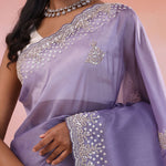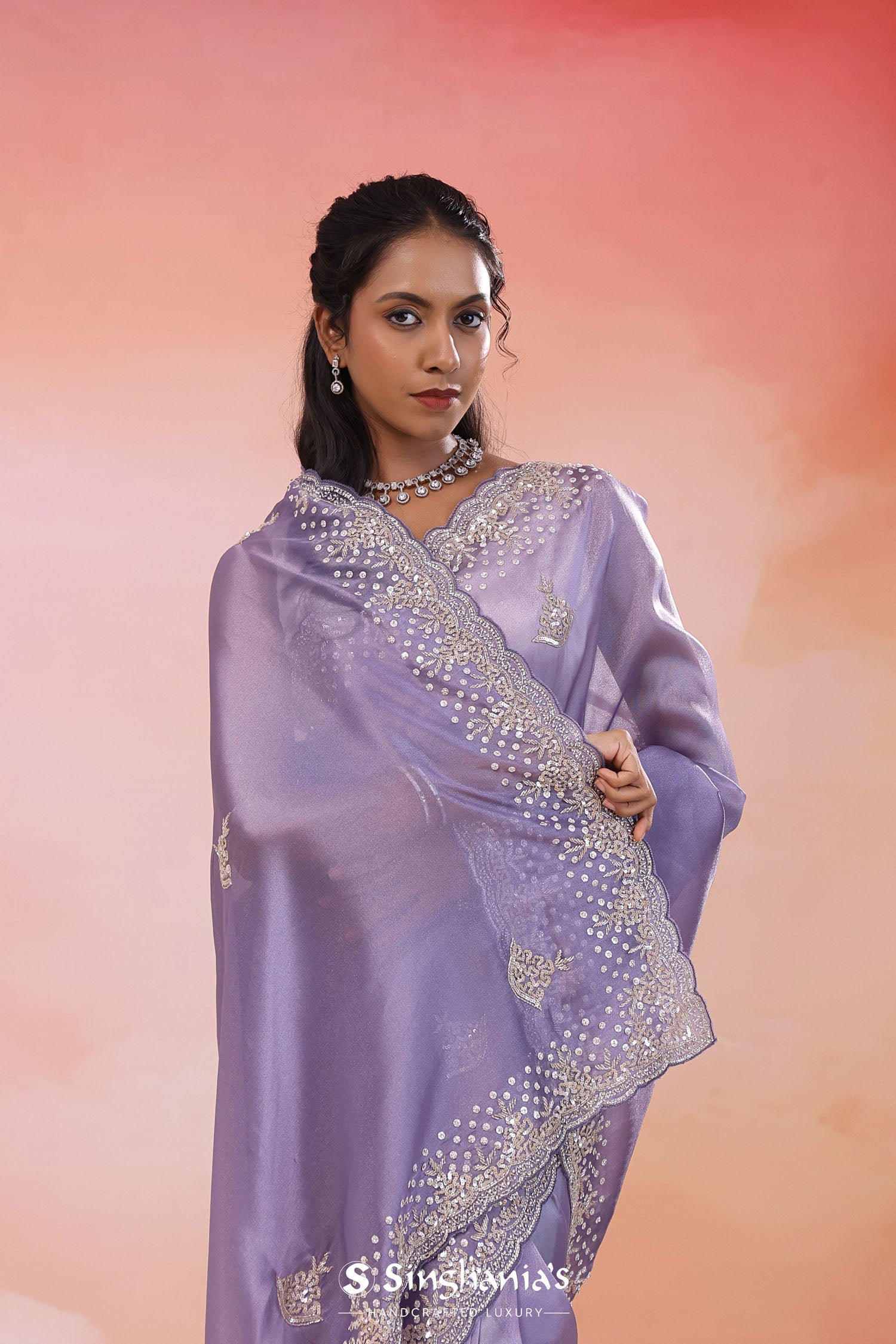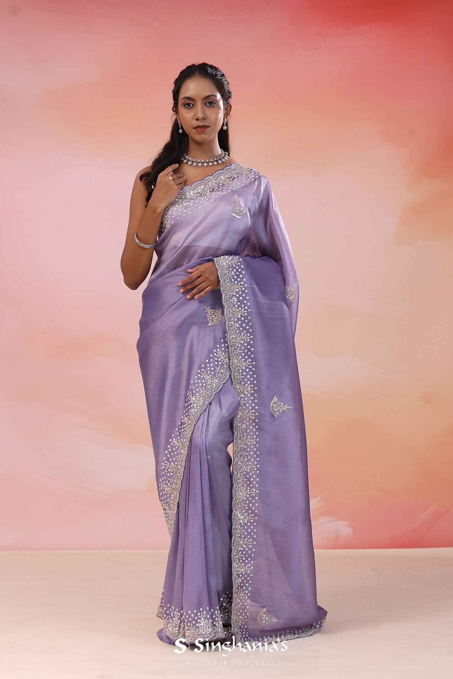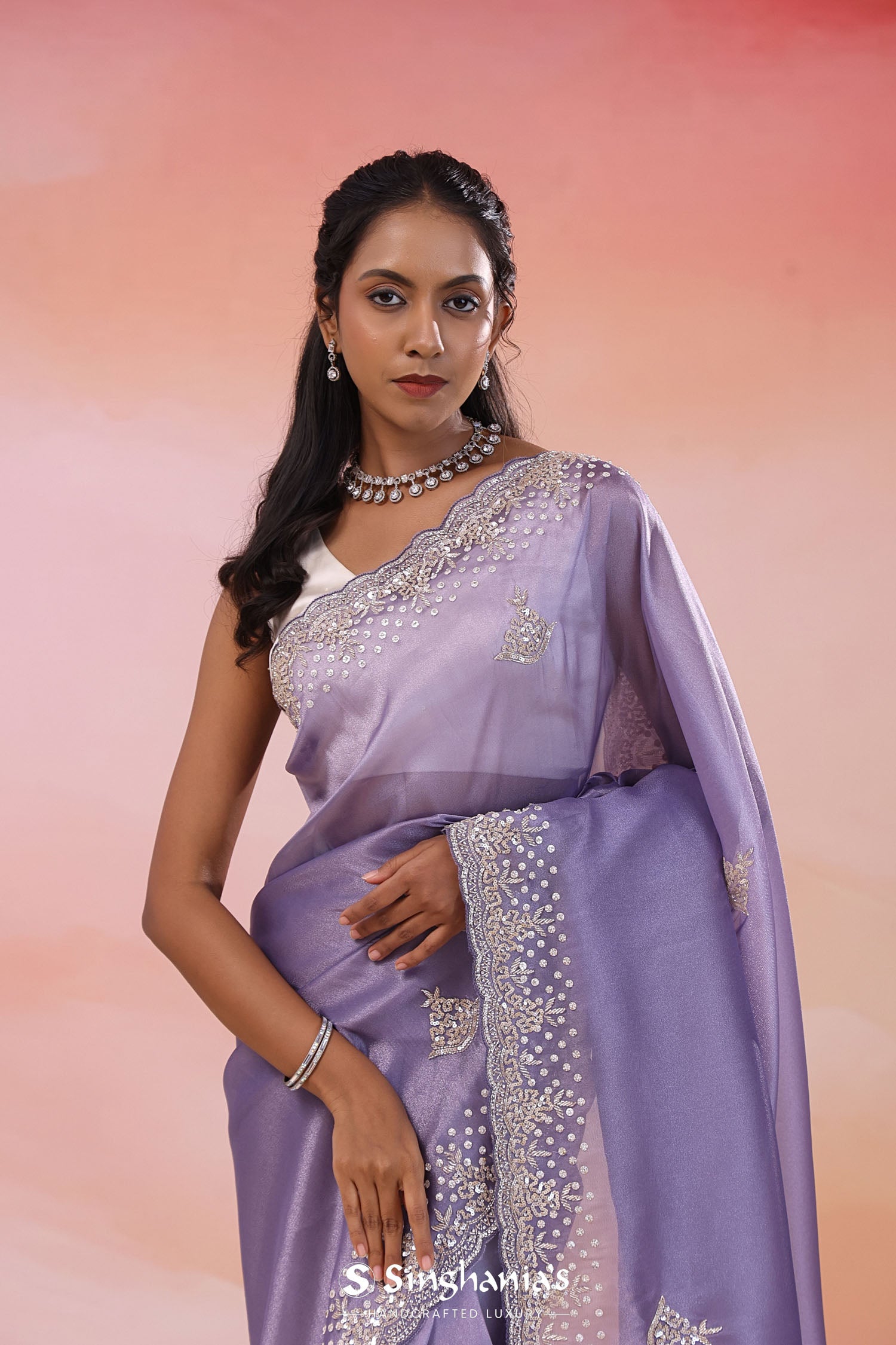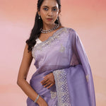 Lavender Purple Organza Tissue Saree With Scallop Border