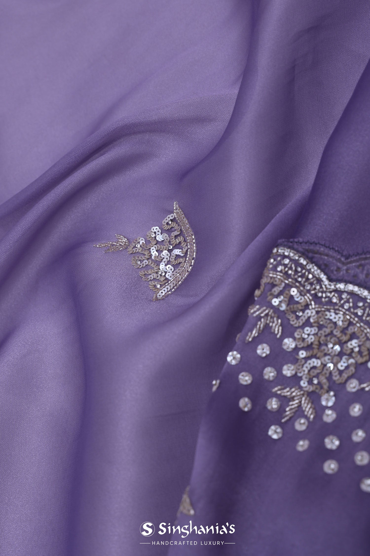 The butta's formed with sequins work scattered on the body of Lavender purple organza tissue saree complemented with fancy border and unstitched blouse