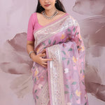 Lilac Falling Tissue Saree With Embroidery Work