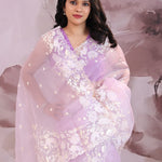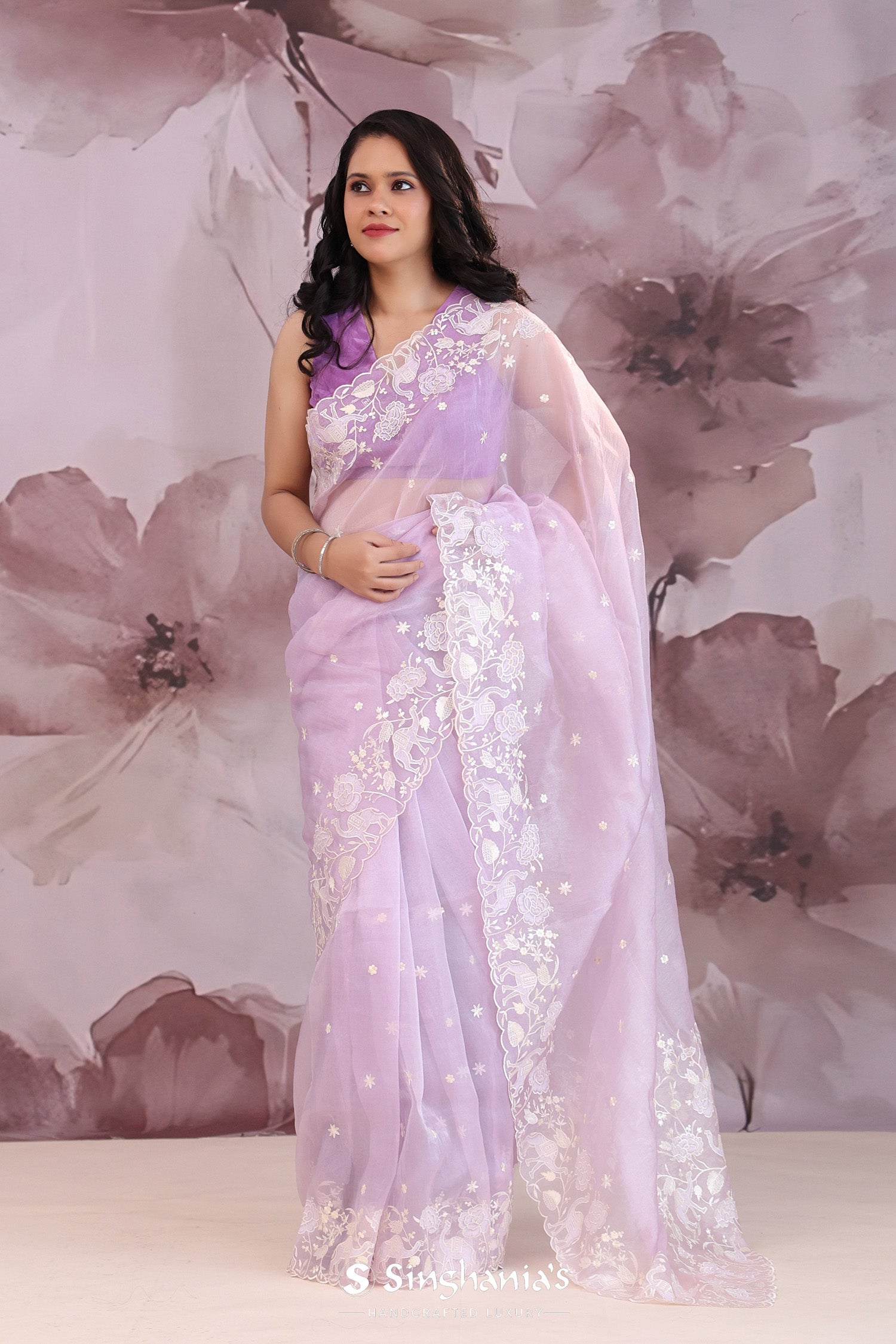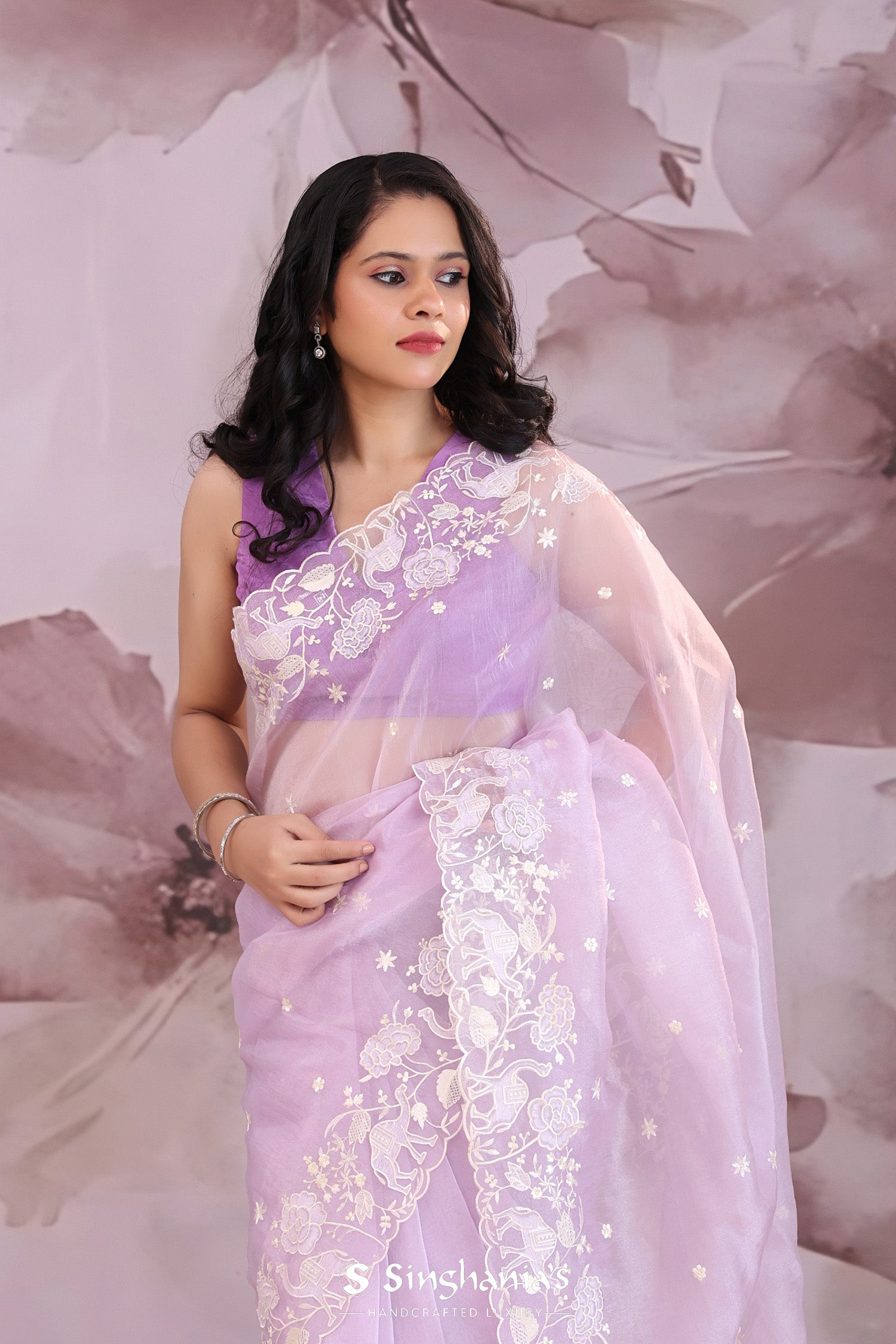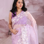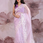 Mauve Purple Organza Tissue Saree With Scallop Border