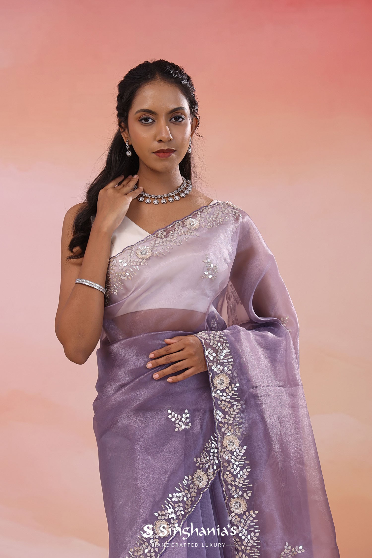 Pair with minimal jewellery and soft makeup to highlight the timeless elegance Singhaniaβs is known for.