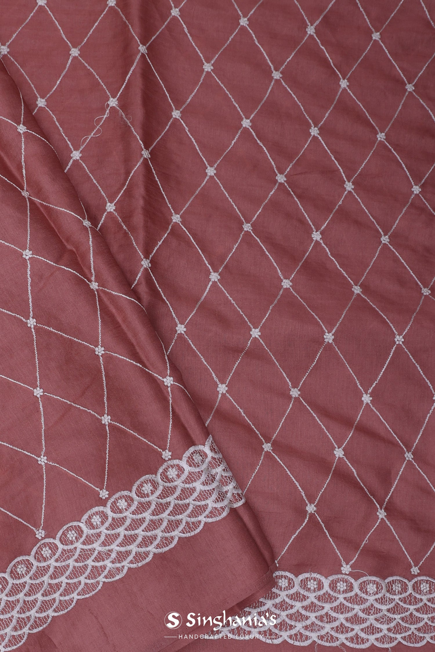 Rose Taupe Soft Silk Saree With Scallop Border