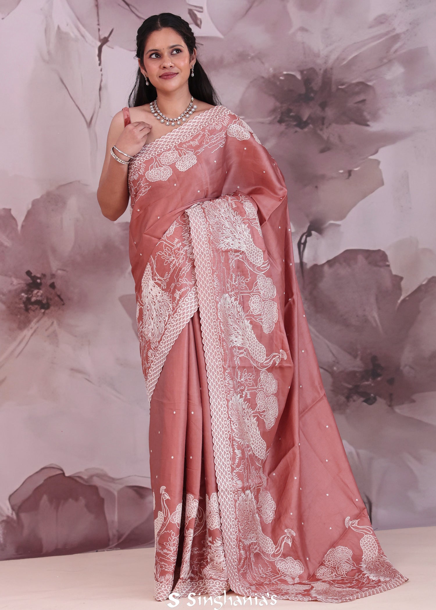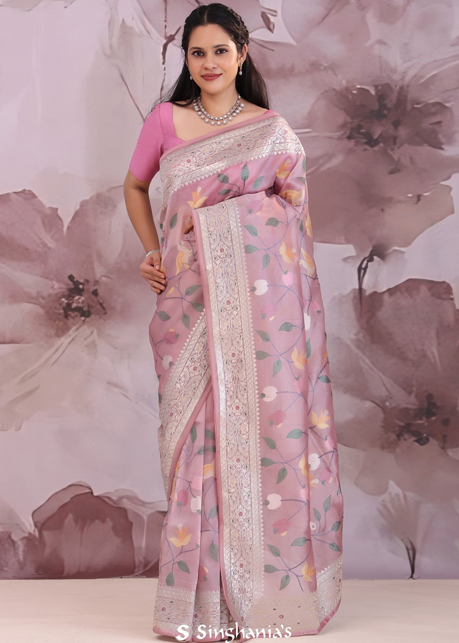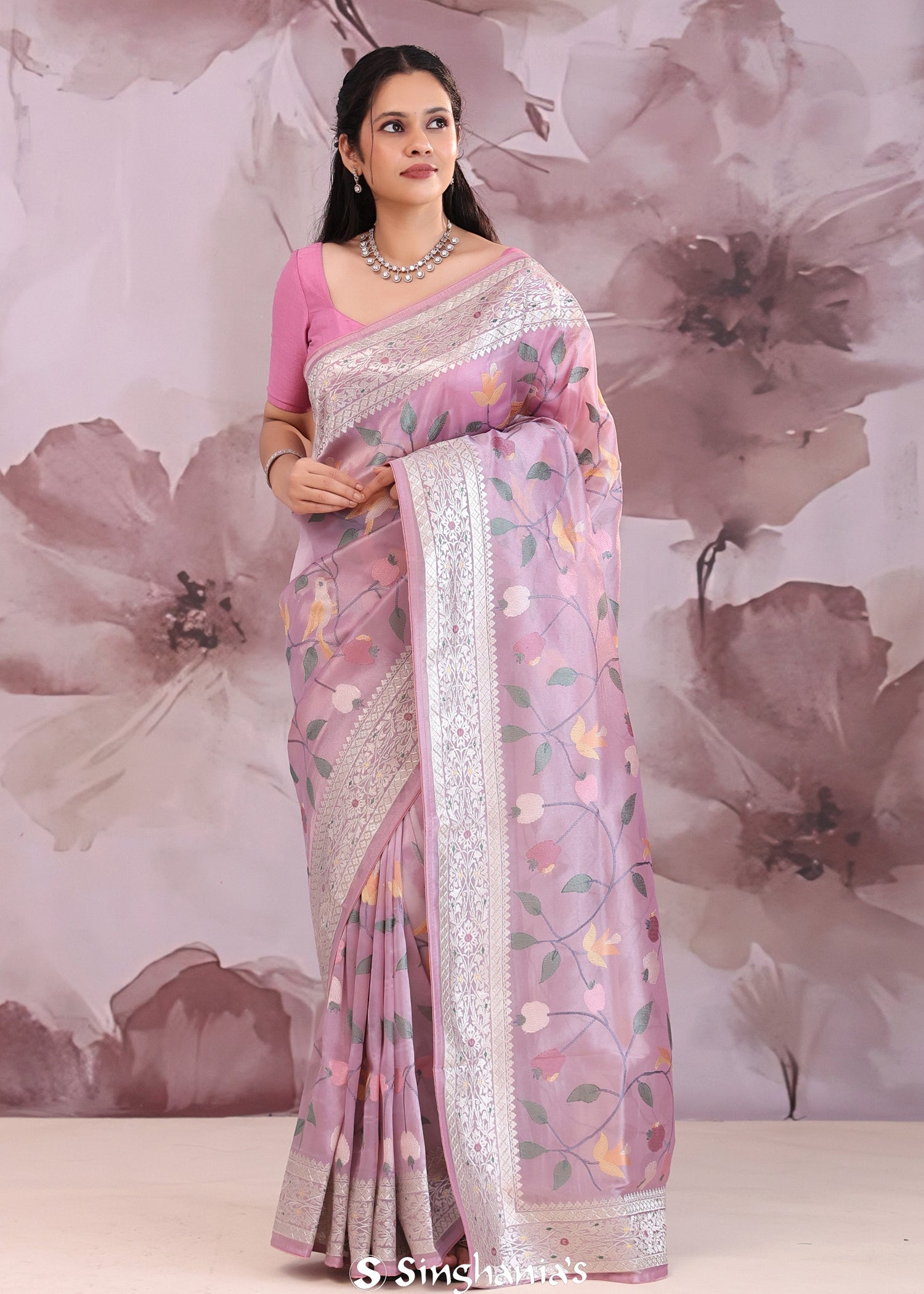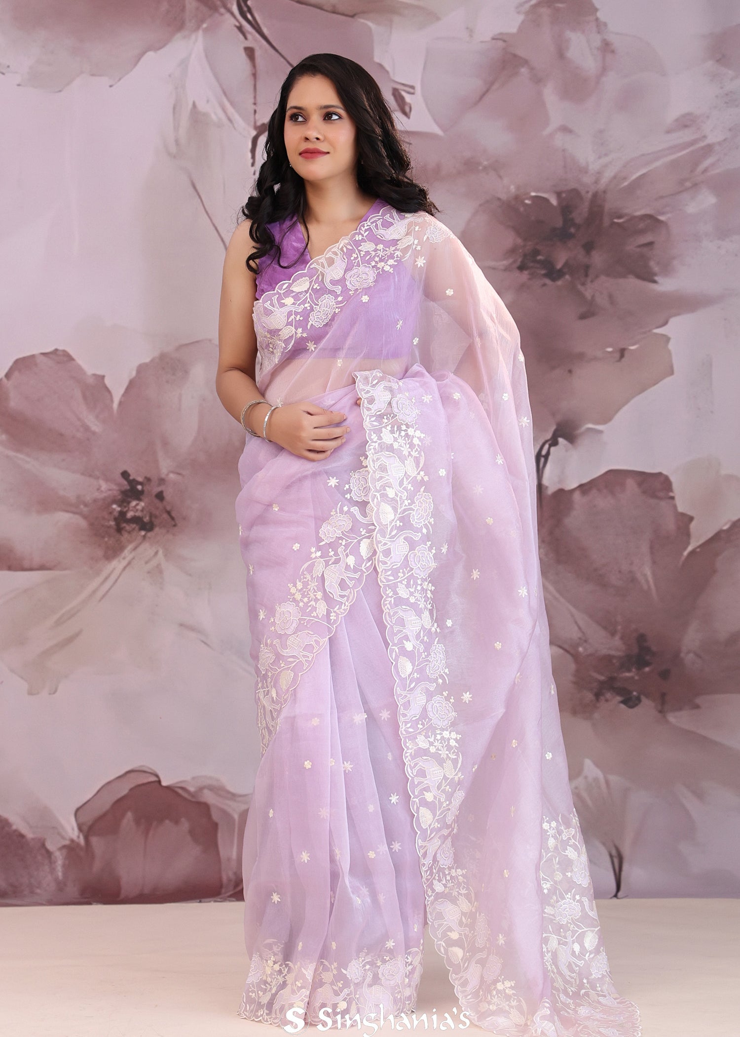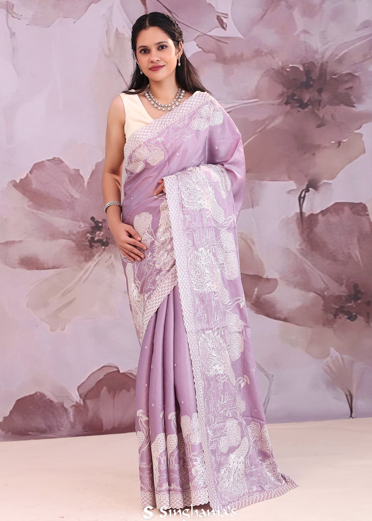 Mauve Purple Organza Tissue Saree With Scallop Border