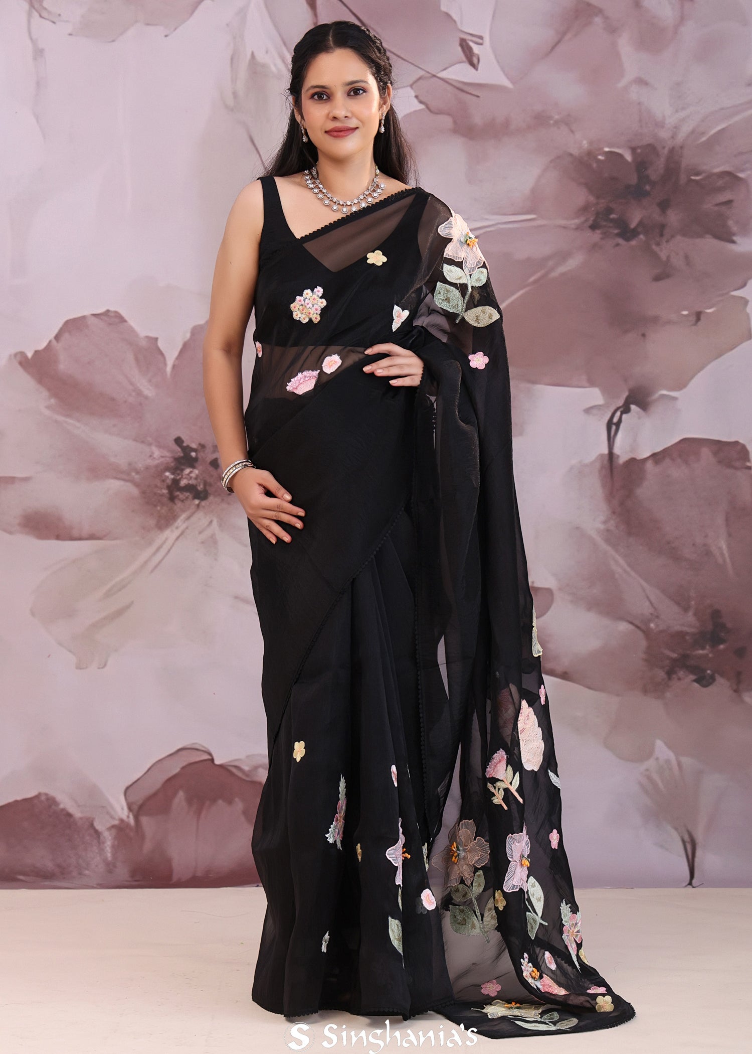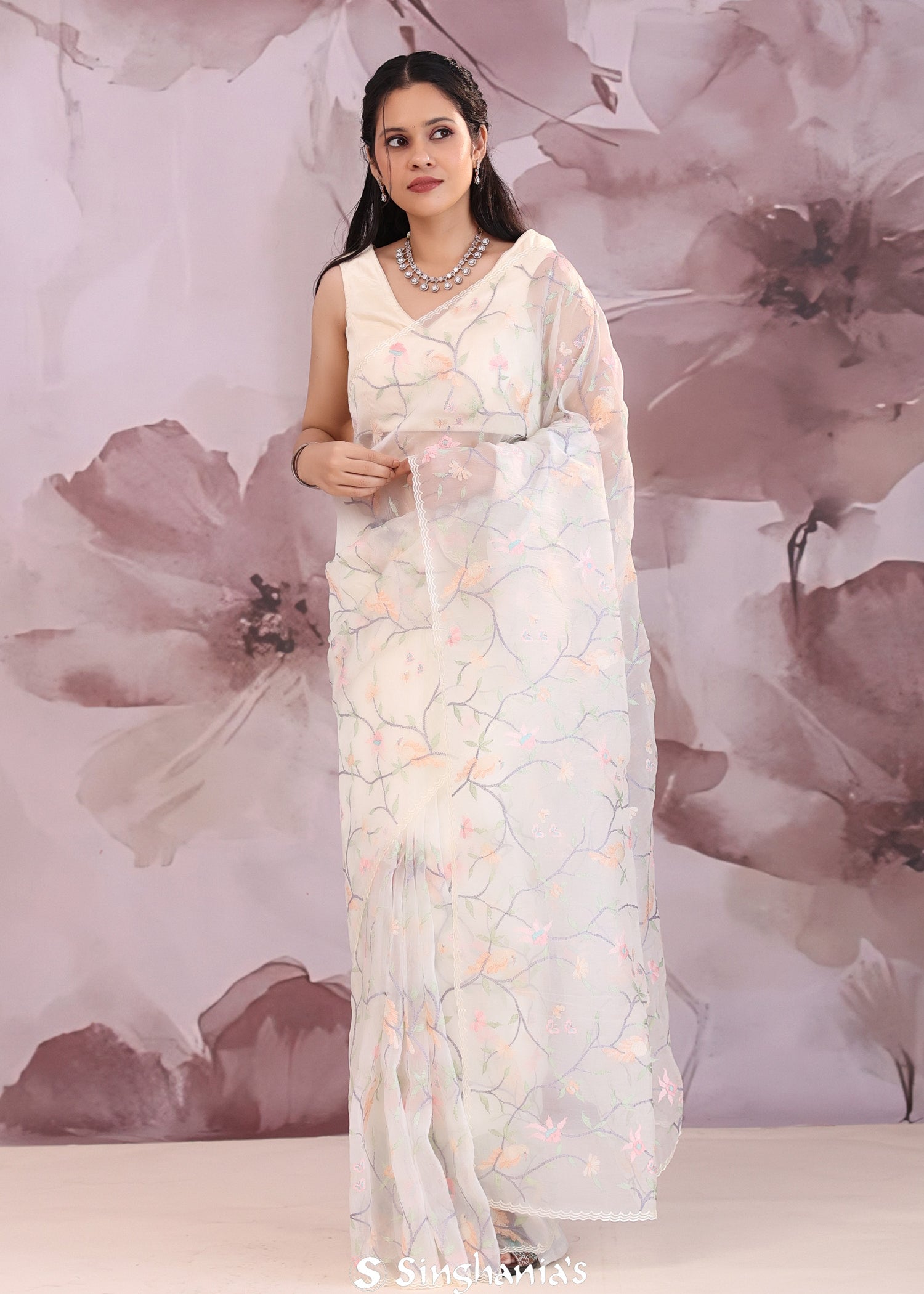 Blue Organza Soft Organza Tissue Saree With Floral Embroidery