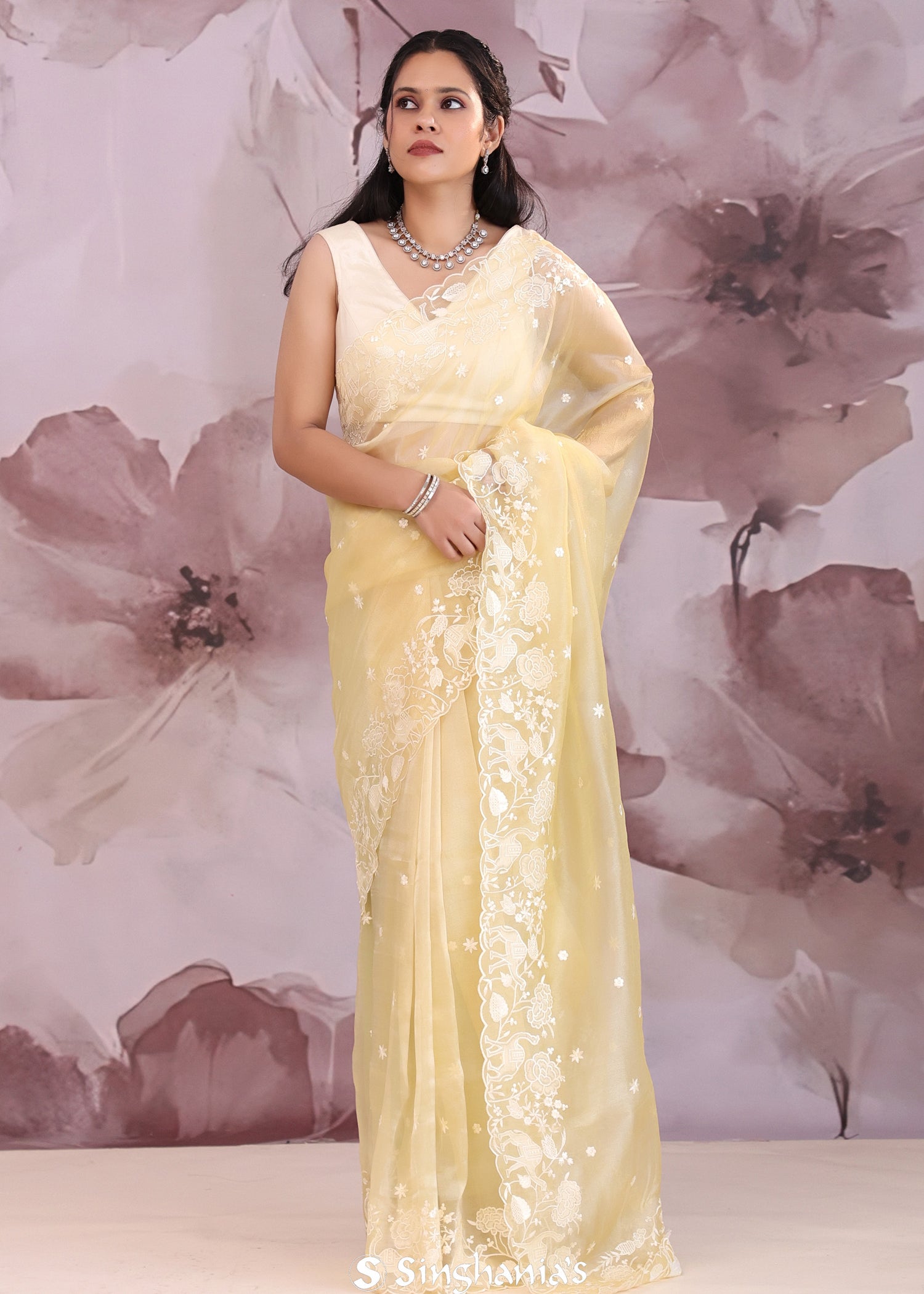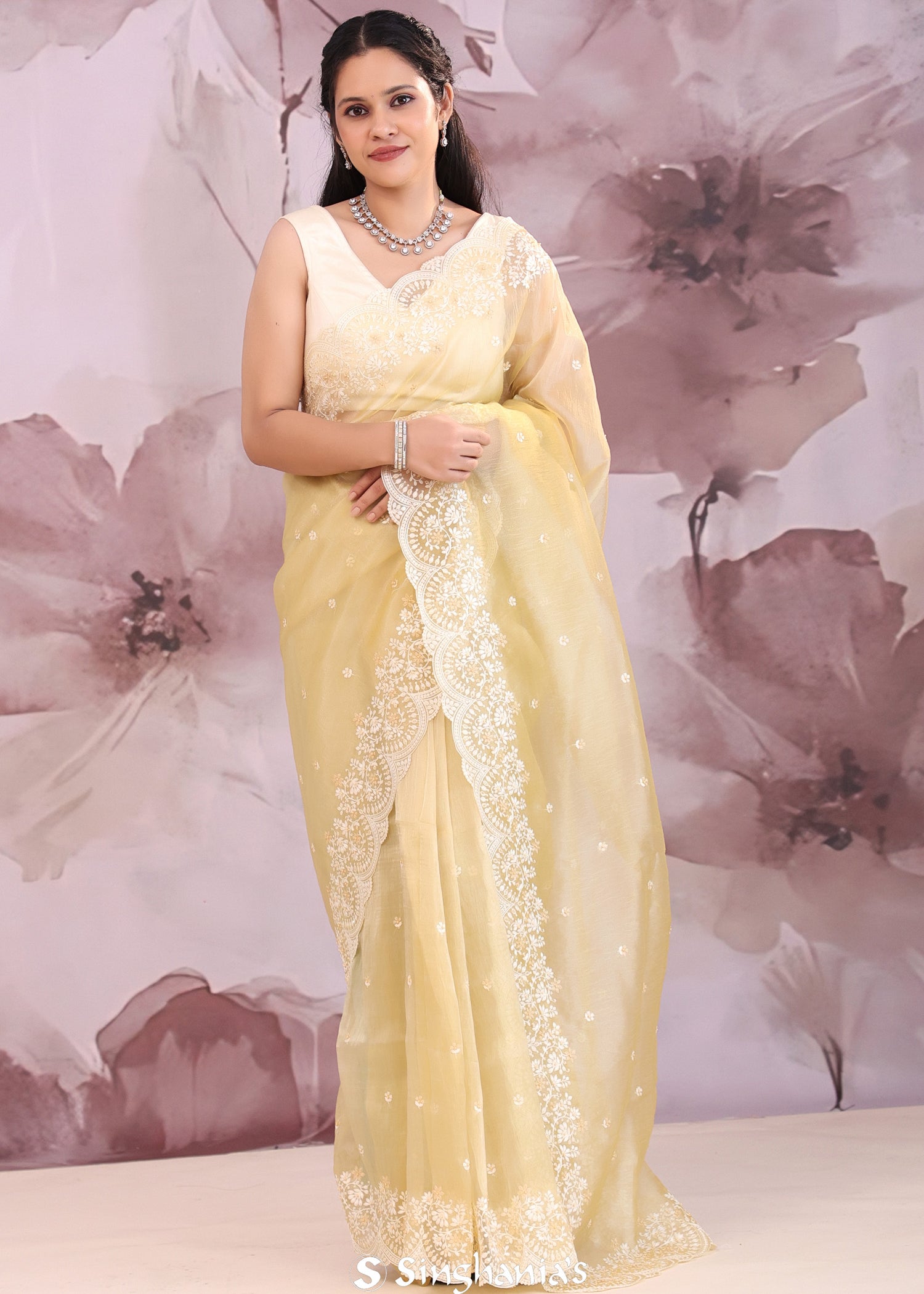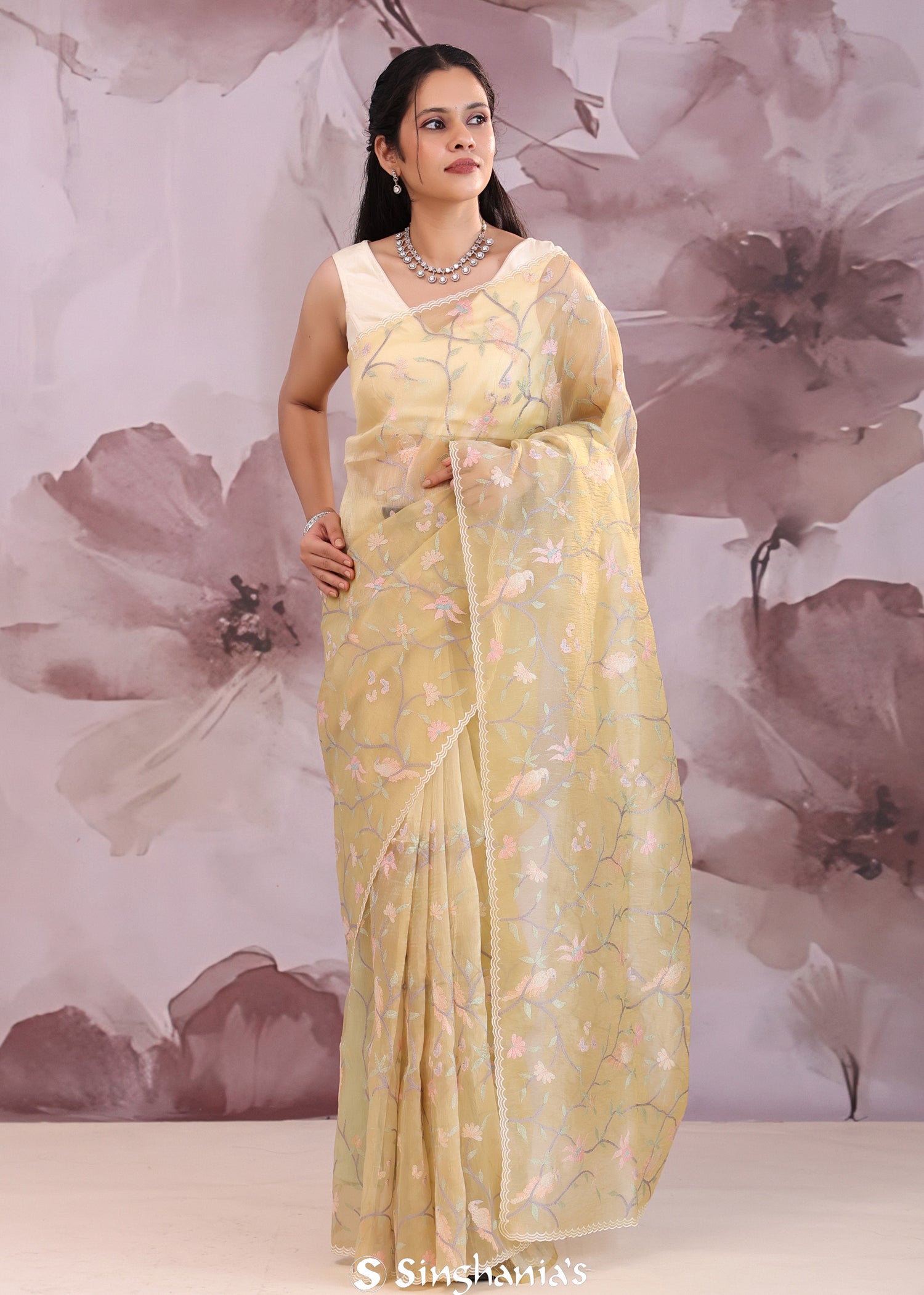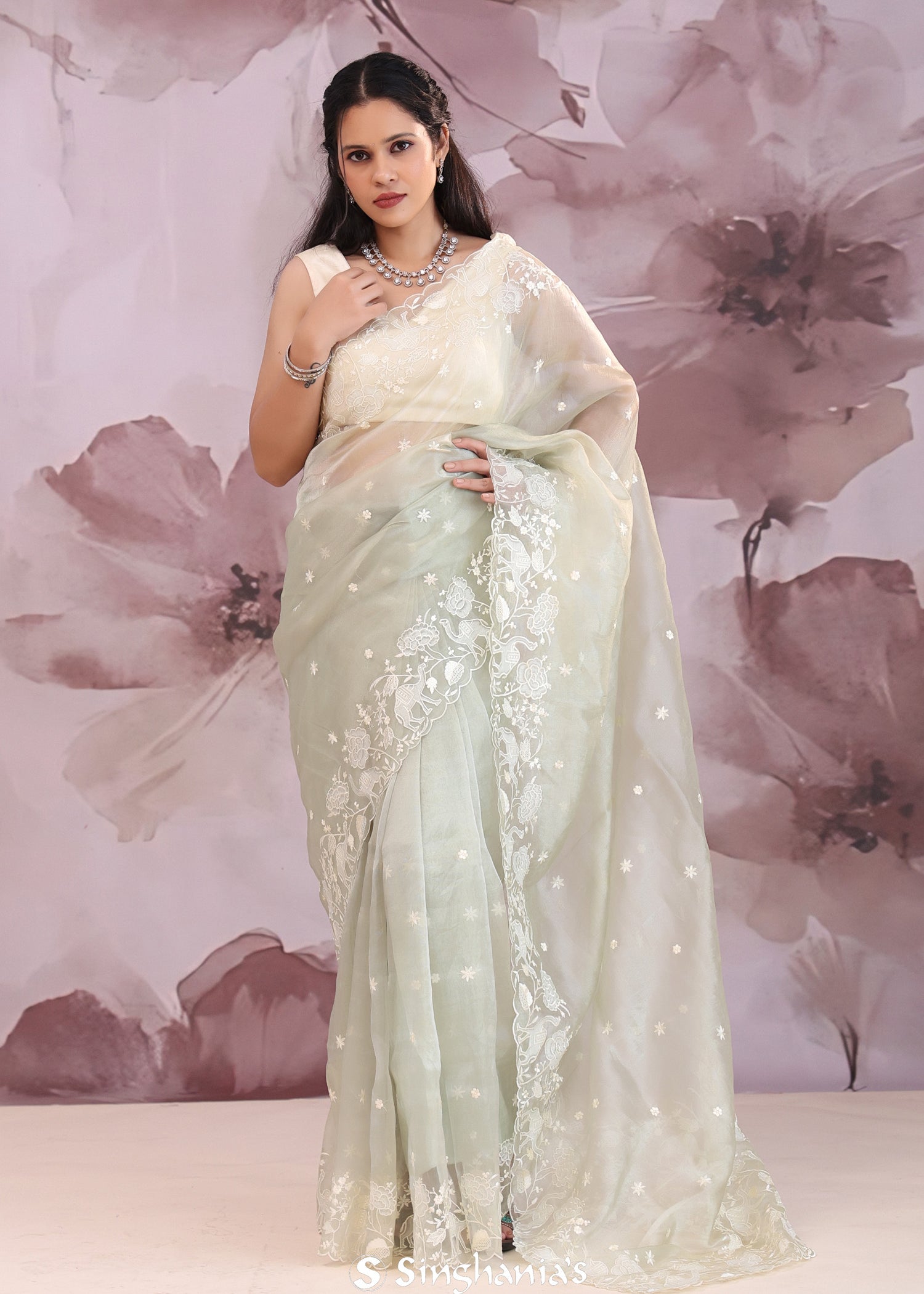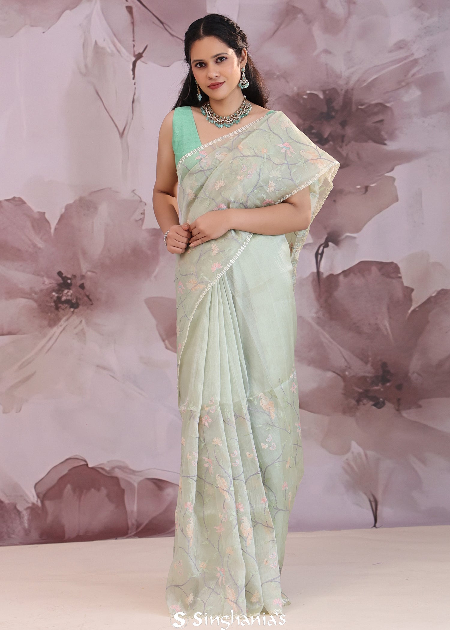 Pale Light Green Organza Tissue Saree With Scallop Border