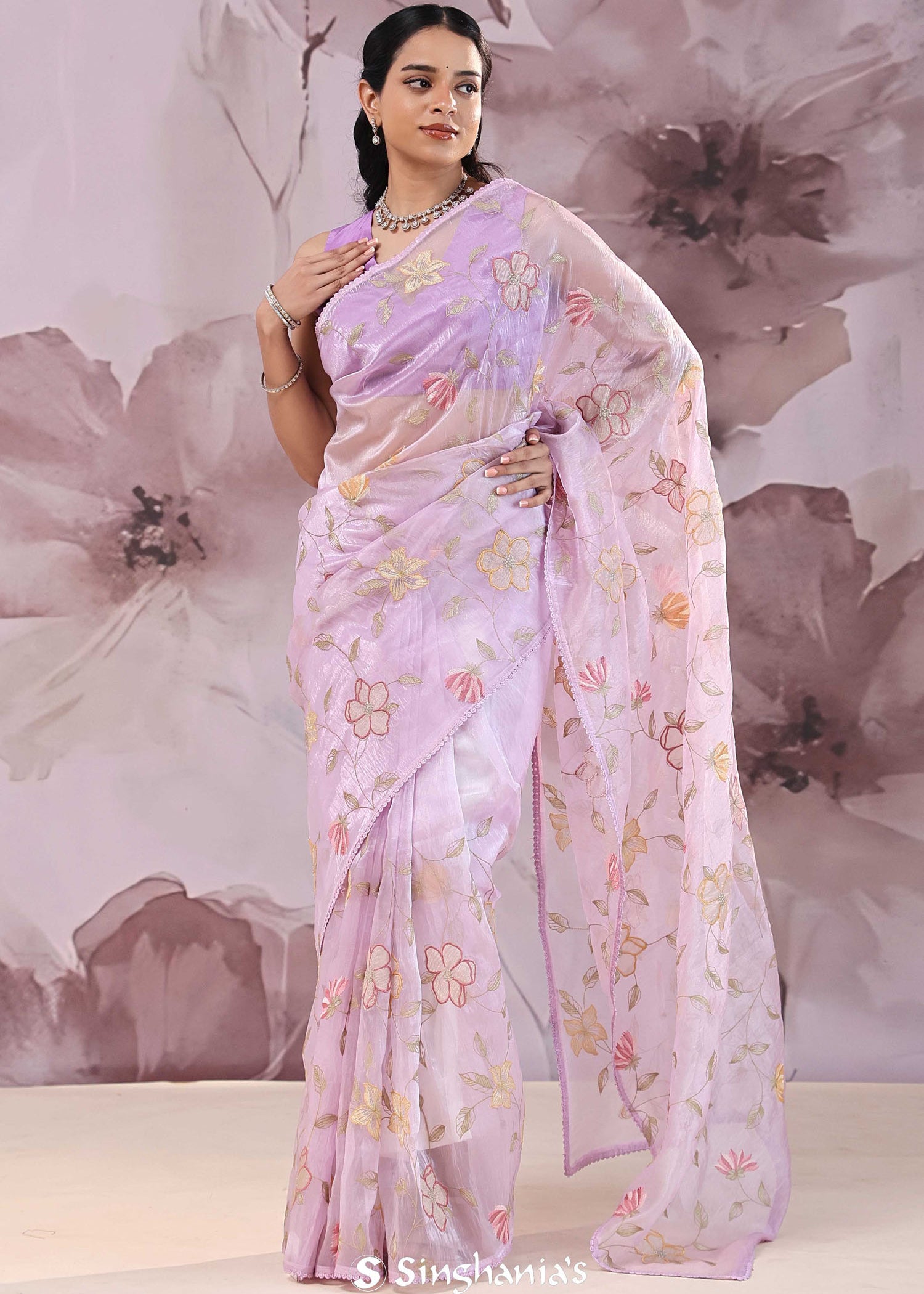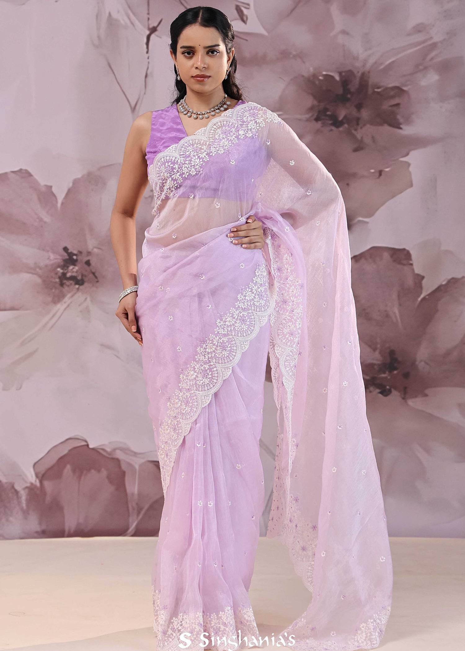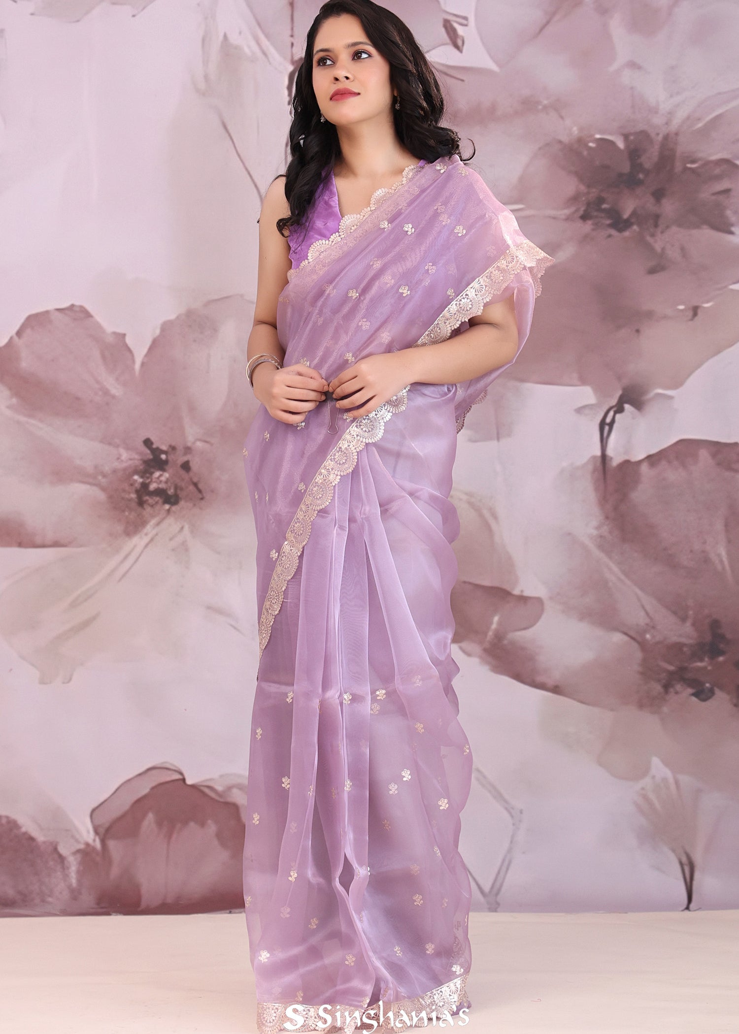 Lilac Organza Saree With Scallop Border